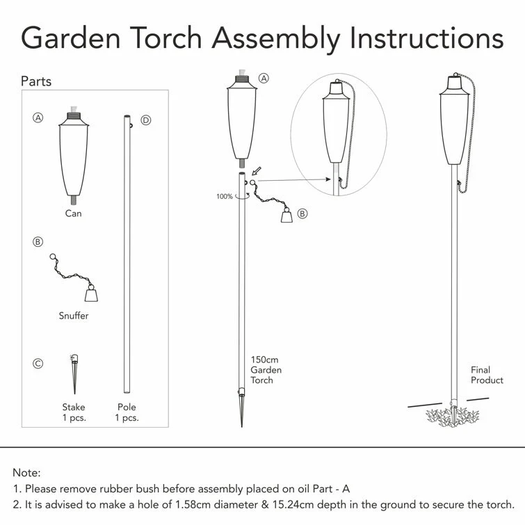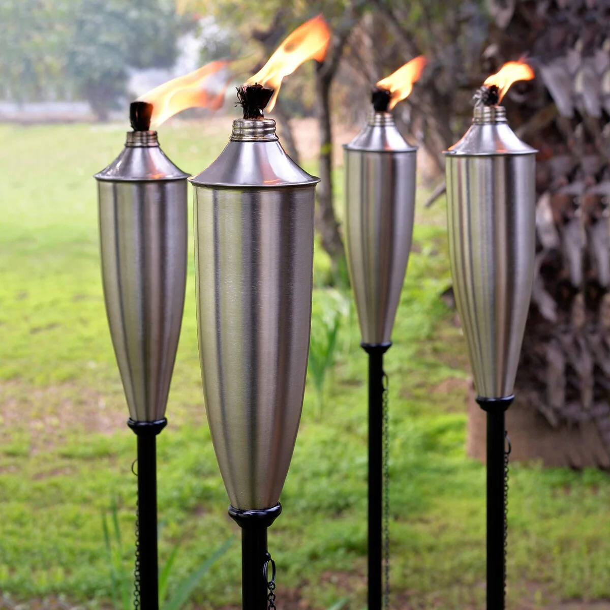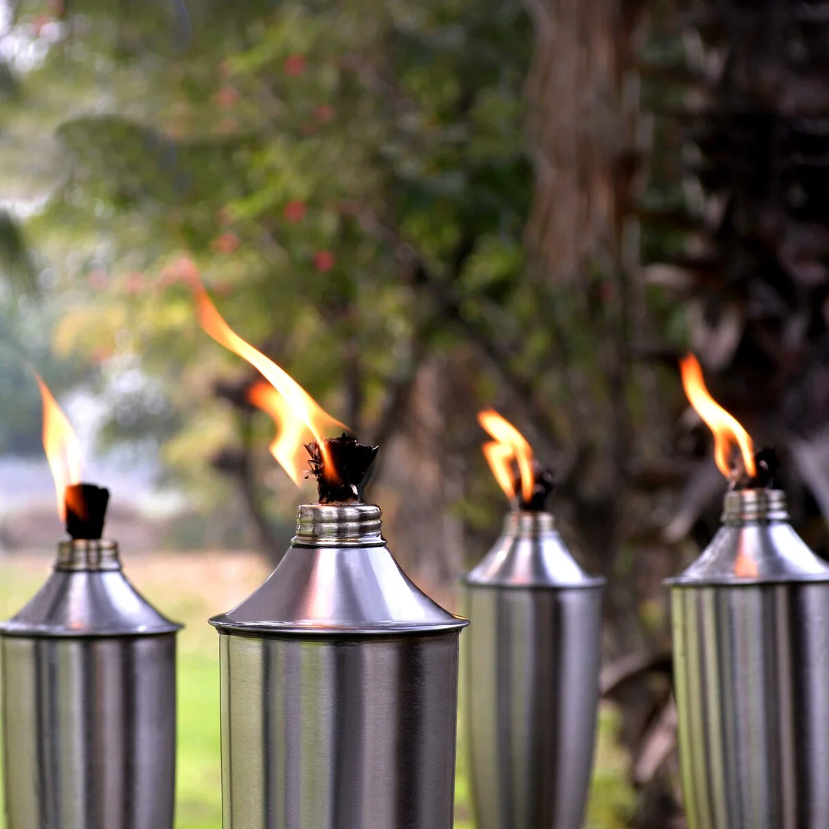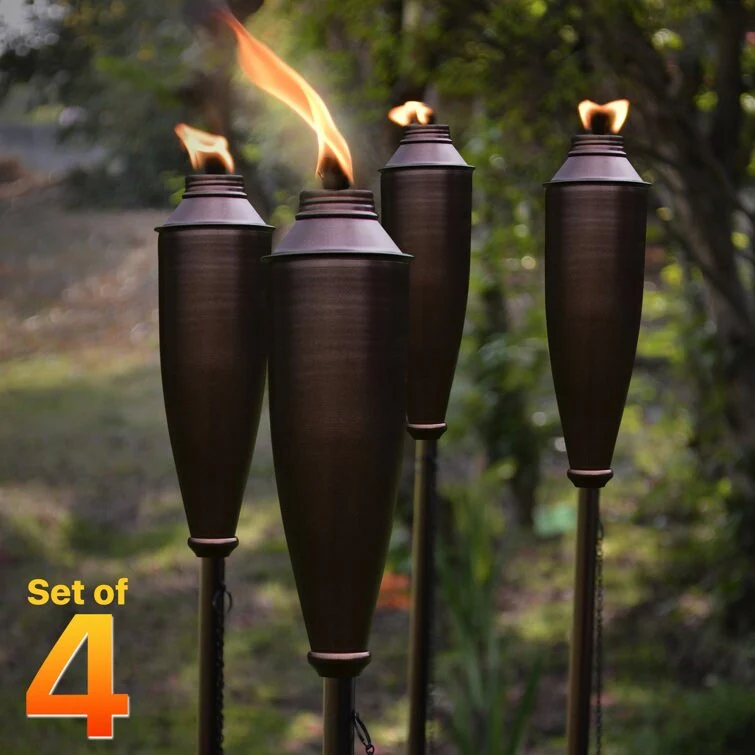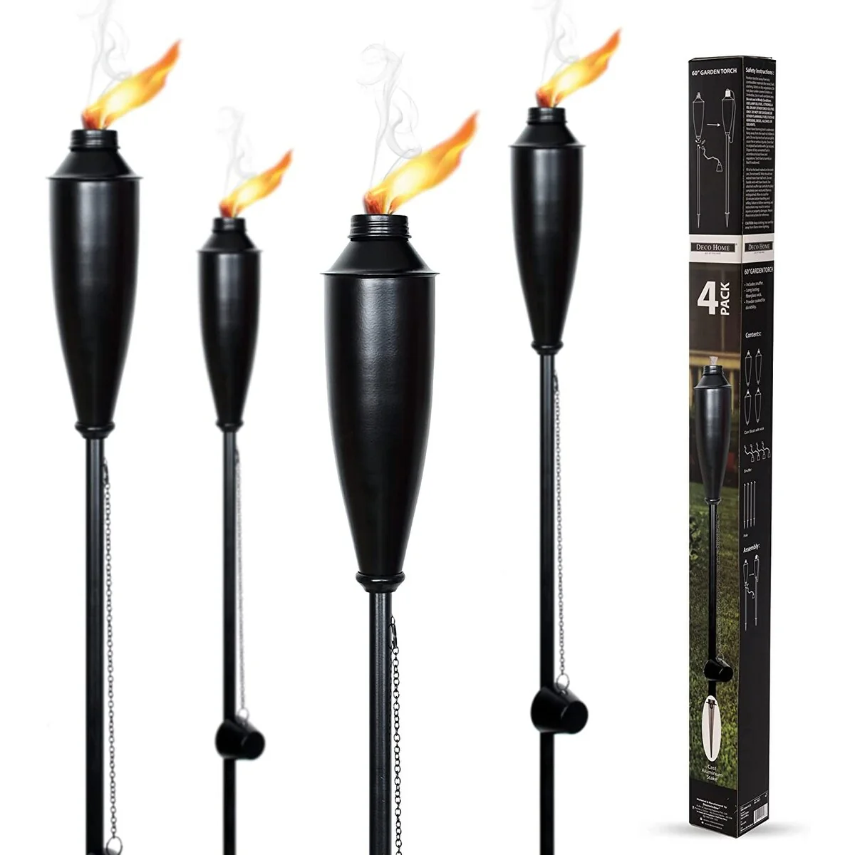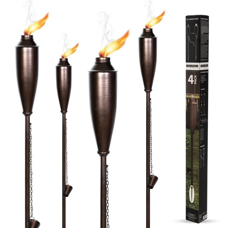 Make your urban abode into a tropical paradise. Enjoy outdoor in your balcony, patio, deck, lawn or garden in a traditional, fun and natural way. A decorative way to light your outdoors. These durable metal torches can easily be converted into a full-sized torch, a mid-sized torch. The torch comes in a set of 4: 60'' Inches. Each fill provides more than 6 hours of ambience. Best use with the torch oil Majorly used in: Our Garden Torch is the perfect choice for Outdoor lighting, Walkway Landscape Decorations and garden parties, Halloween festival decor, Home & Garden decoration, Yard, Pathway & Patio Lightning, wedding decor, barbeque party, Christmas decor, it will provide a perfect natural ambience.