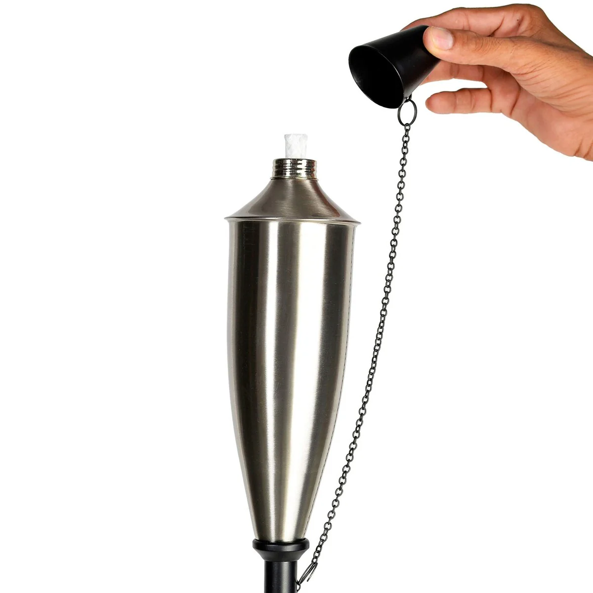 - Best Use With: Use a funnel when filling oil in torches. Use only citronella oil or torch oils designed for outdoor torches (OIL SOLD SEPARATELY). Use a snuffer to put out the flame and protect the wick after use.