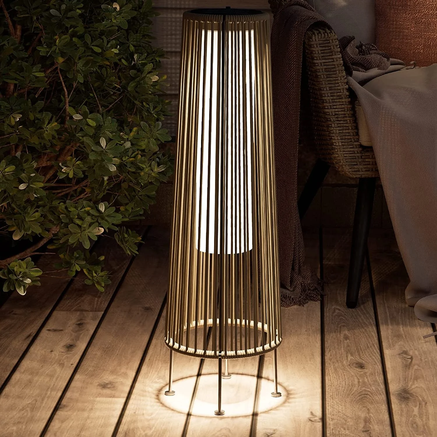 - STYLISH DESIGN: Our Gordes floor lamp showcases a modern open weave wicker pattern, providing a unique sculptural element for your outdoor living area. 25 LEDs emit 20 lumens of glowing light, creating a charming and romantic atmosphere for your patio, path, deck, or garden.
