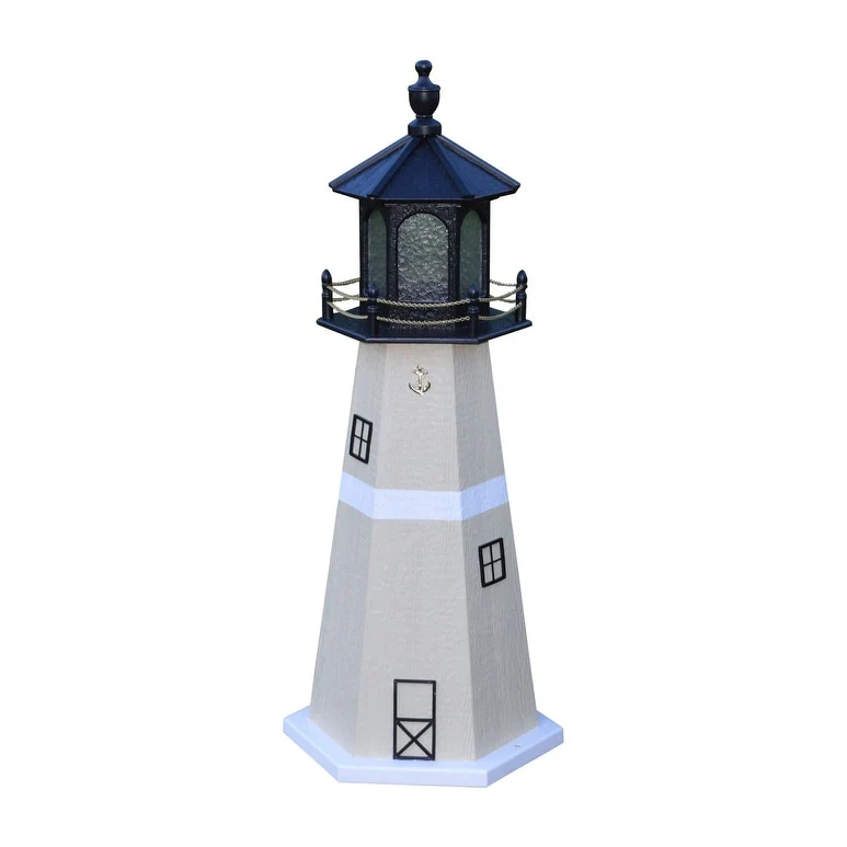 Make your home or yard stand out with our Replica Lighthouse. Handcrafted by Amish artisans using LP Smartside panels, this lighthouse resists rotting, splitting, cracking, and warping, ensuring durability and long-lasting quality. Each lighthouse comes with a 25-watt electric bulb and 12' ground stakes for easy installation. Choose from a range of sizes, from 2 to 10 feet, and add a base for an even more impressive display.