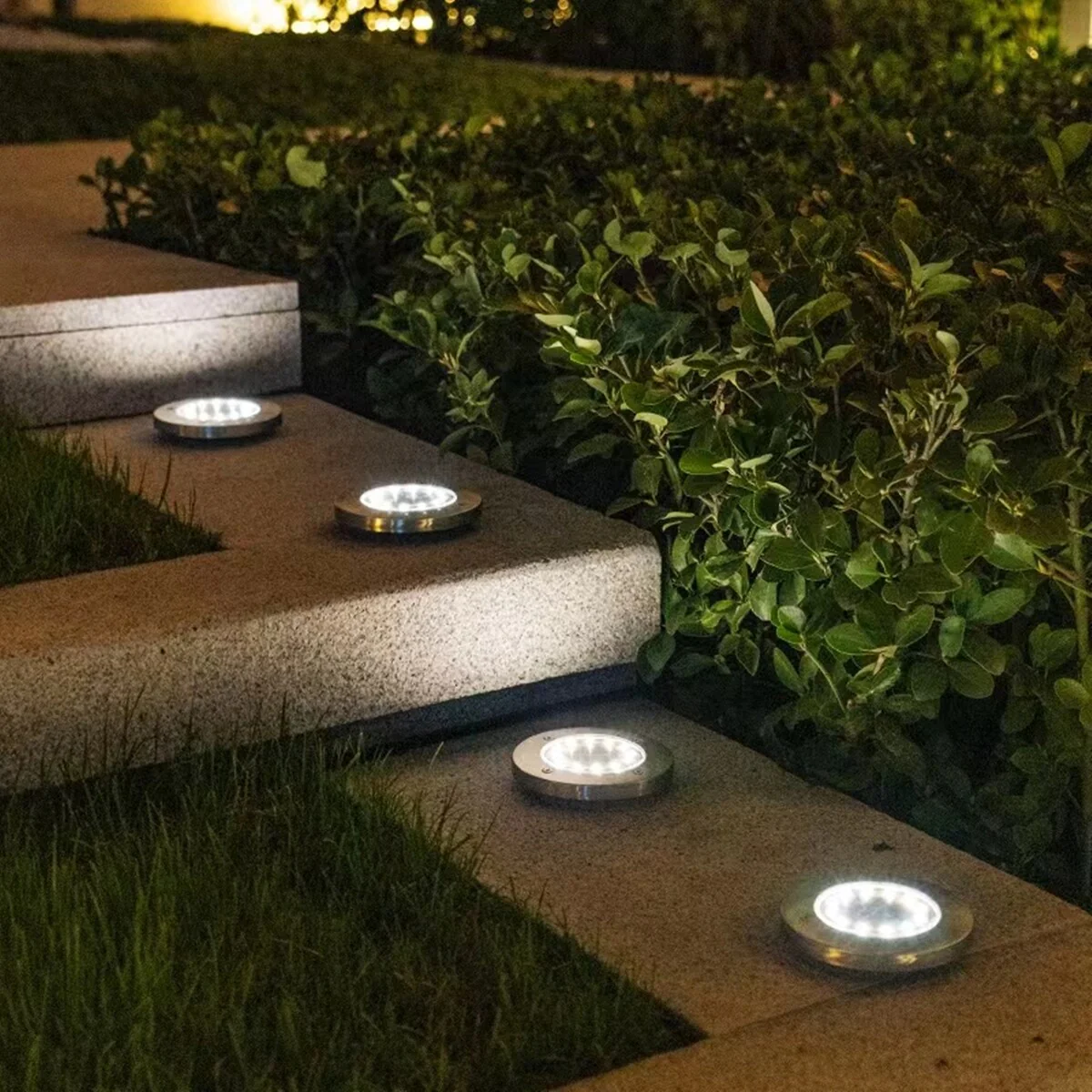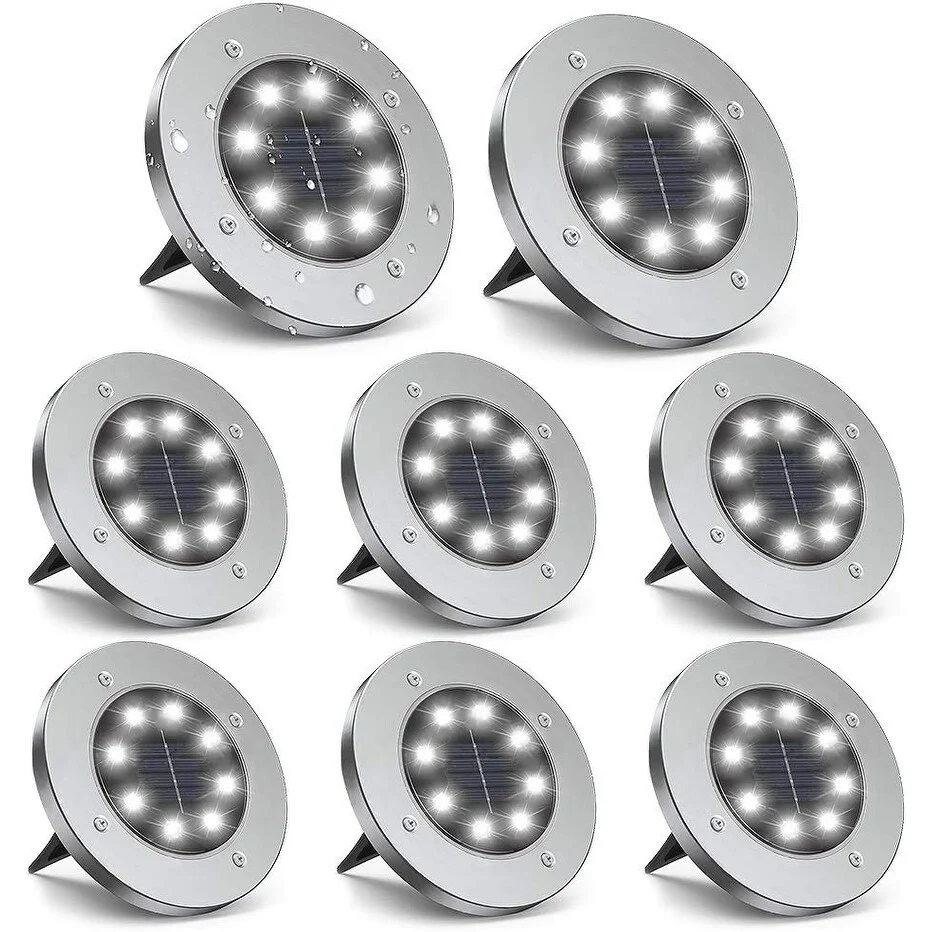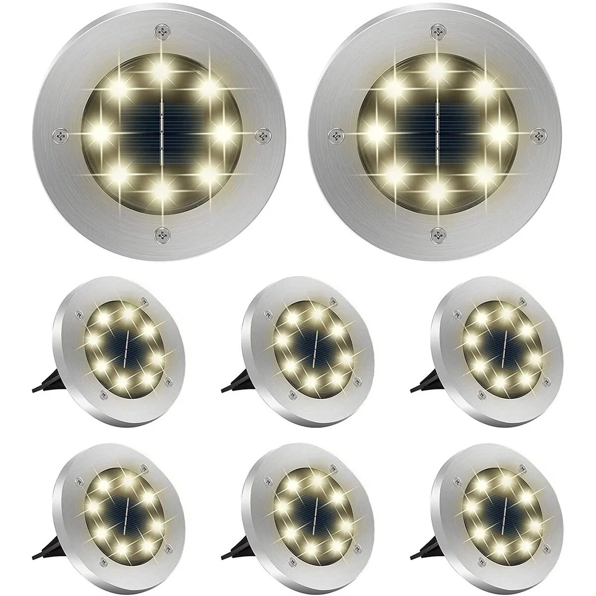 To install, simply turn on the switch under the cap and push the stake into the soil. solar disk lights outdoor automatically turn on in darkness and turn off in daytime or bright areas, adding the perfect amount of light to your courtyard, garden, sidewalk, patio, corridor, or pathway. Tips: a. If the light does not work at the first time you use, please turn on the light and then put it under the sun for 6-12 hours. The light should work again after recharge it. b. The spikes of the lights are inverted in the tube. Please pull them out before the first time used.
