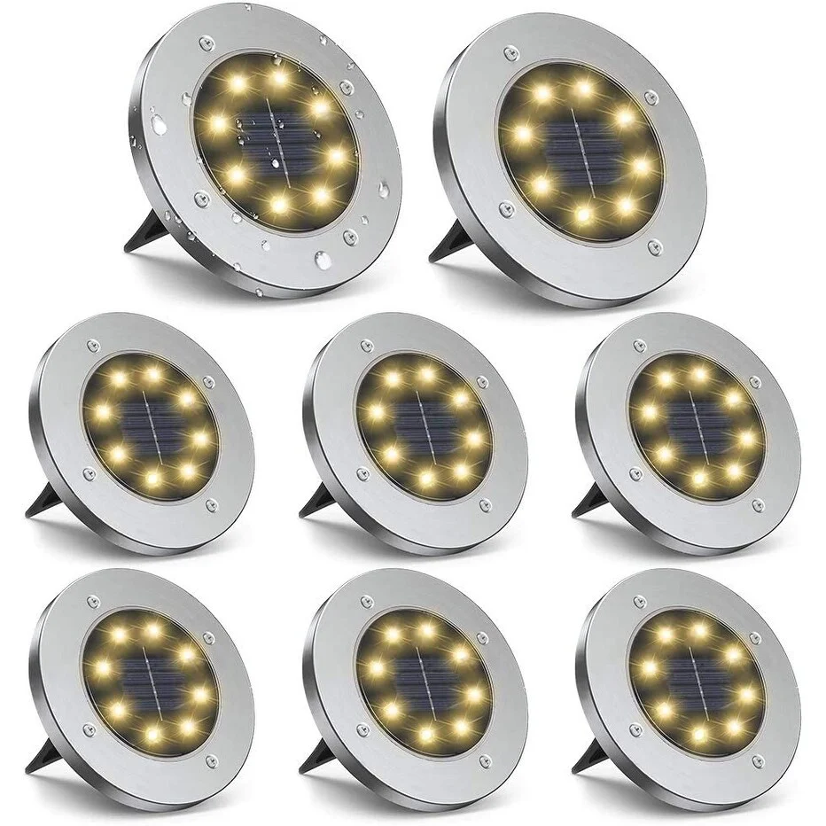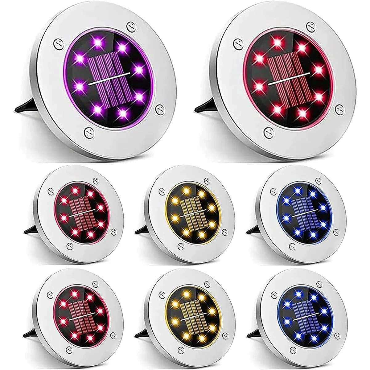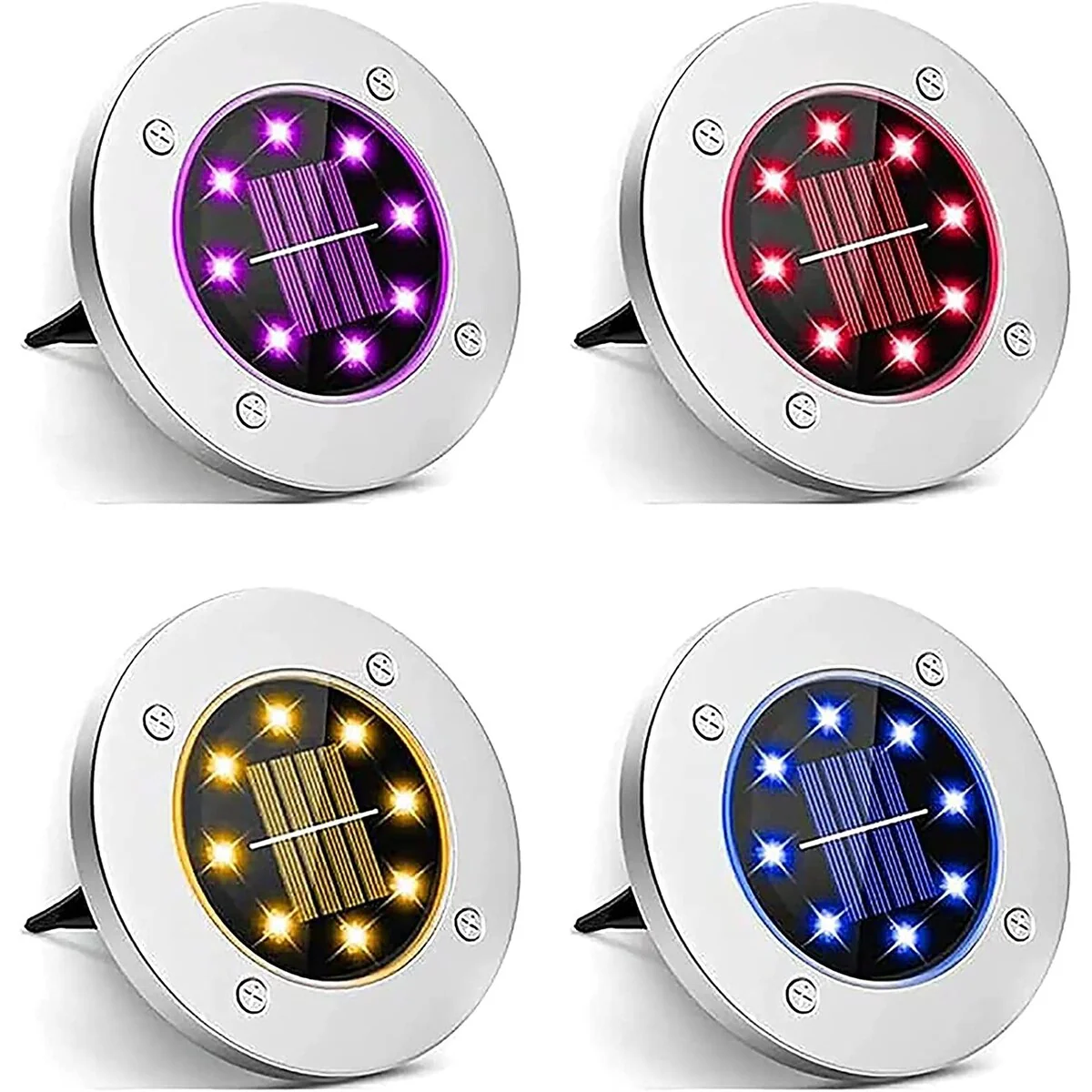 To install, simply turn on the switch under the cap and push the stake into the soil. solar disk lights outdoor automatically turn on in darkness and turn off in daytime or bright areas, adding the perfect amount of light to your courtyard, garden, sidewalk, patio, corridor, or pathway. Tips: a. If the light does not work at the first time you use, please turn on the light and then put it under the sun for 6-12 hours. The light should work again after recharge it. b. The spikes of the lights are inverted in the tube. Please pull them out before the first time used.