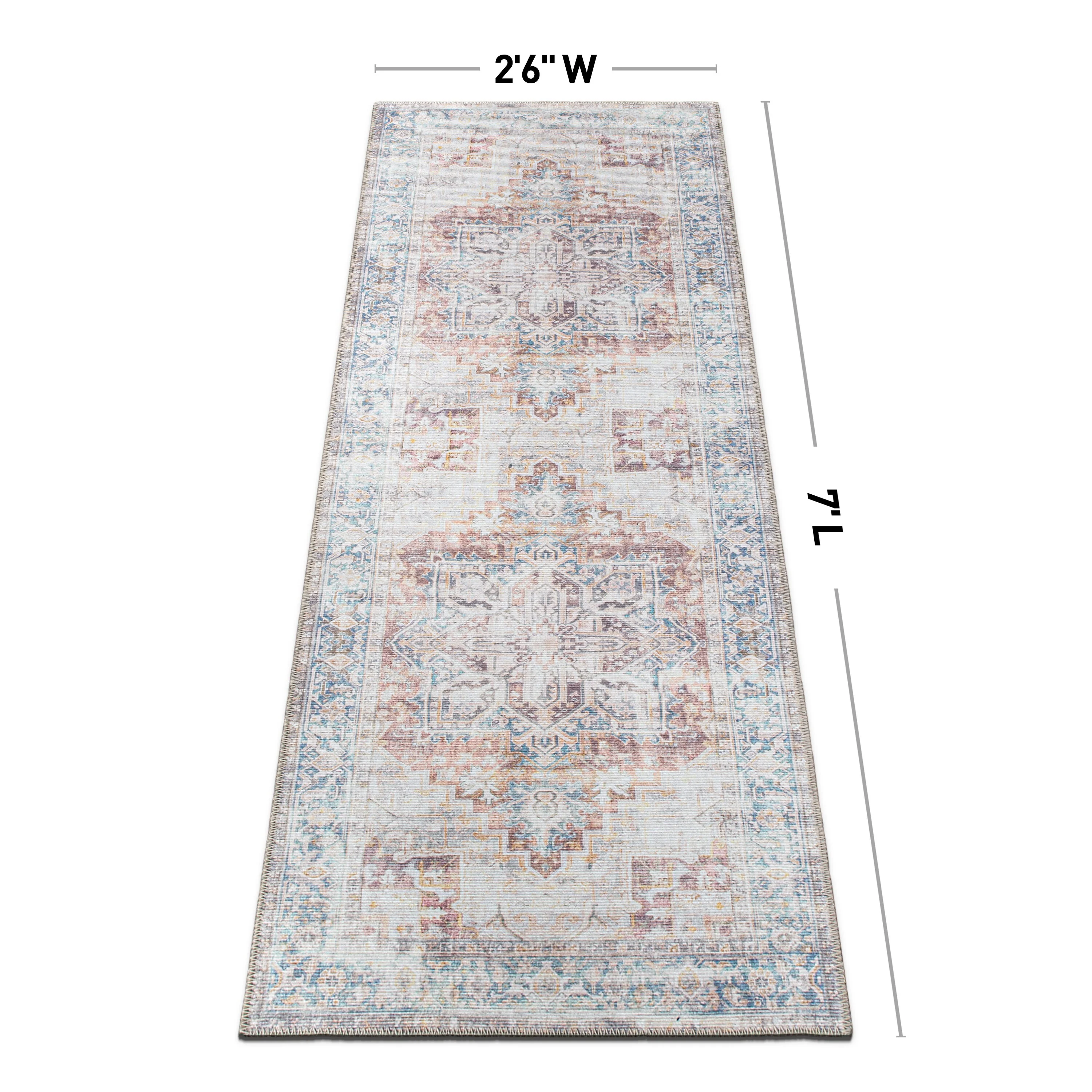 Introduce a touch of vintage charm and bohemian style to your living space with this machine washable area rug featuring a medallion design. The rug's bold colors and various size options make it a versatile addition to any room. Crafted from premium recycled materials that are OEKO-TEX certified for sustainability, this flat-woven rug is easy to maintain and environmentally friendly.
