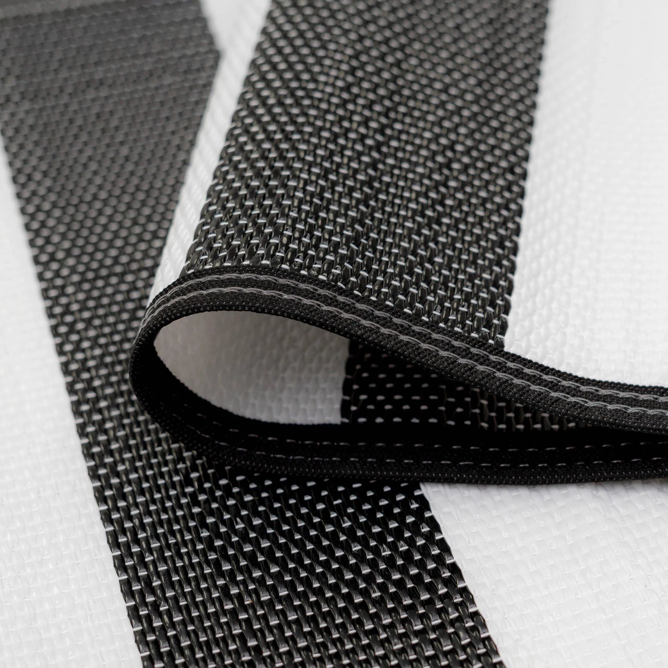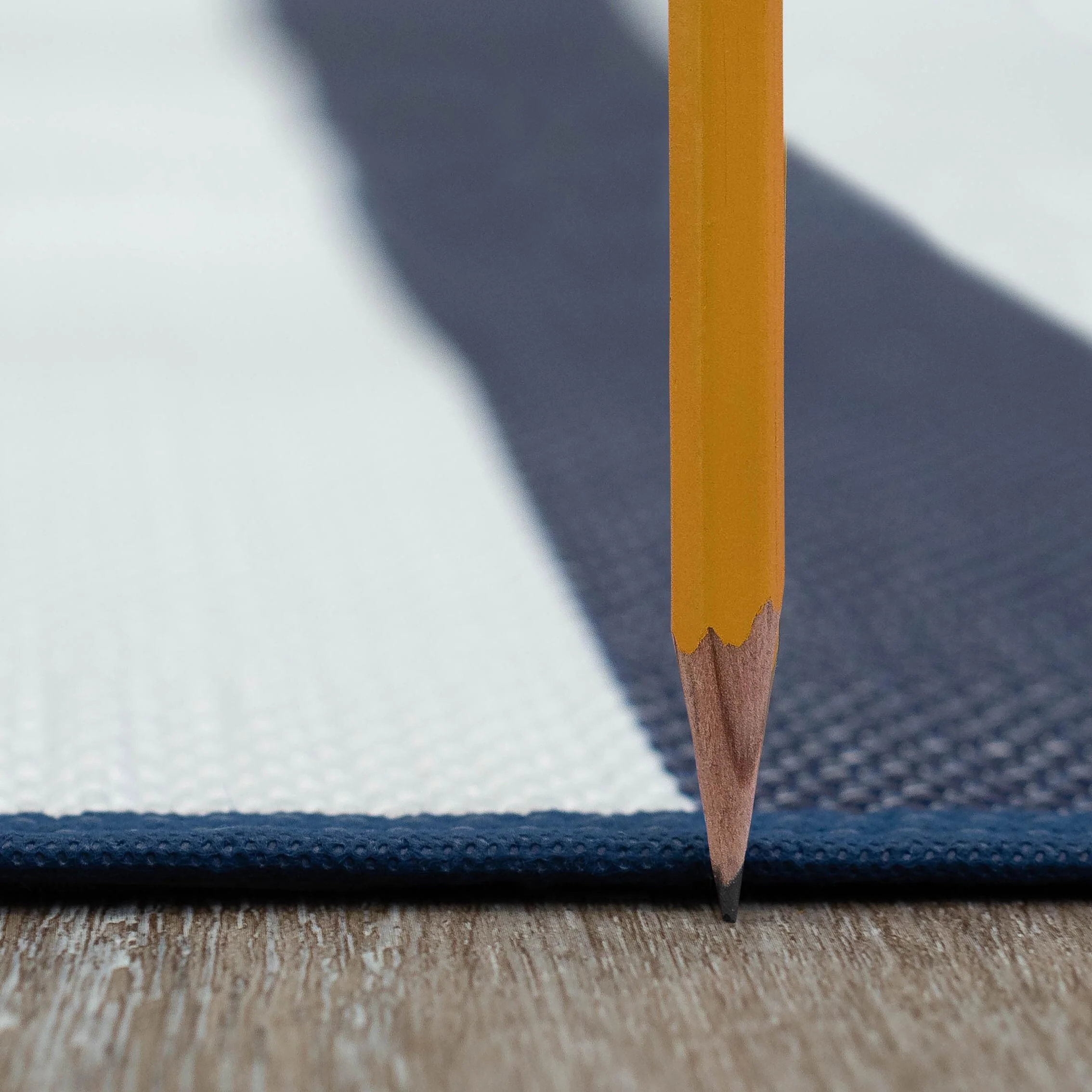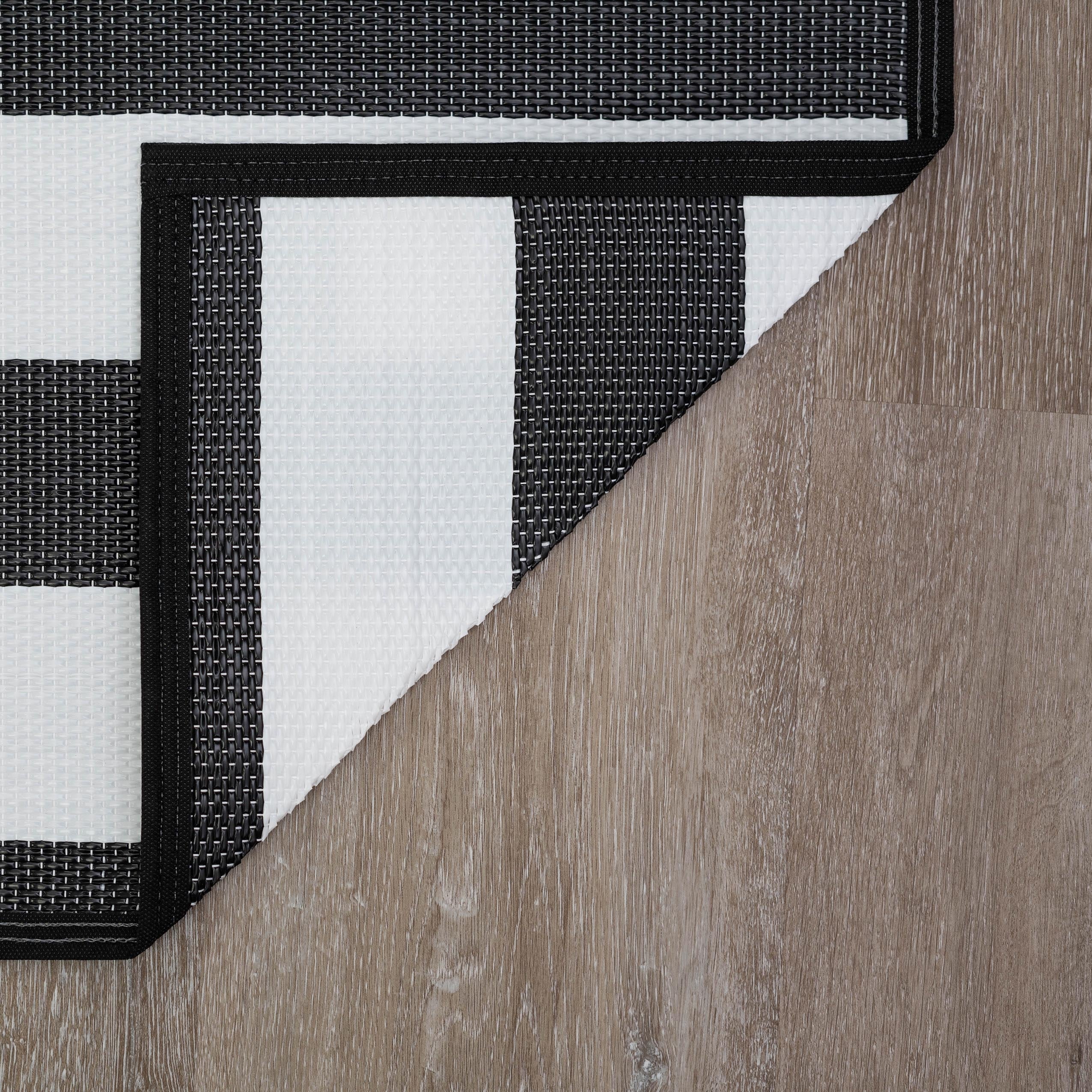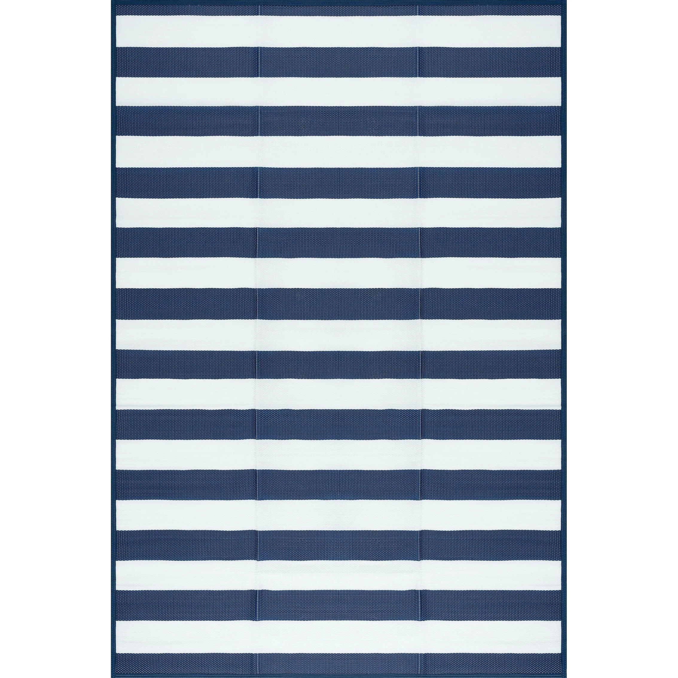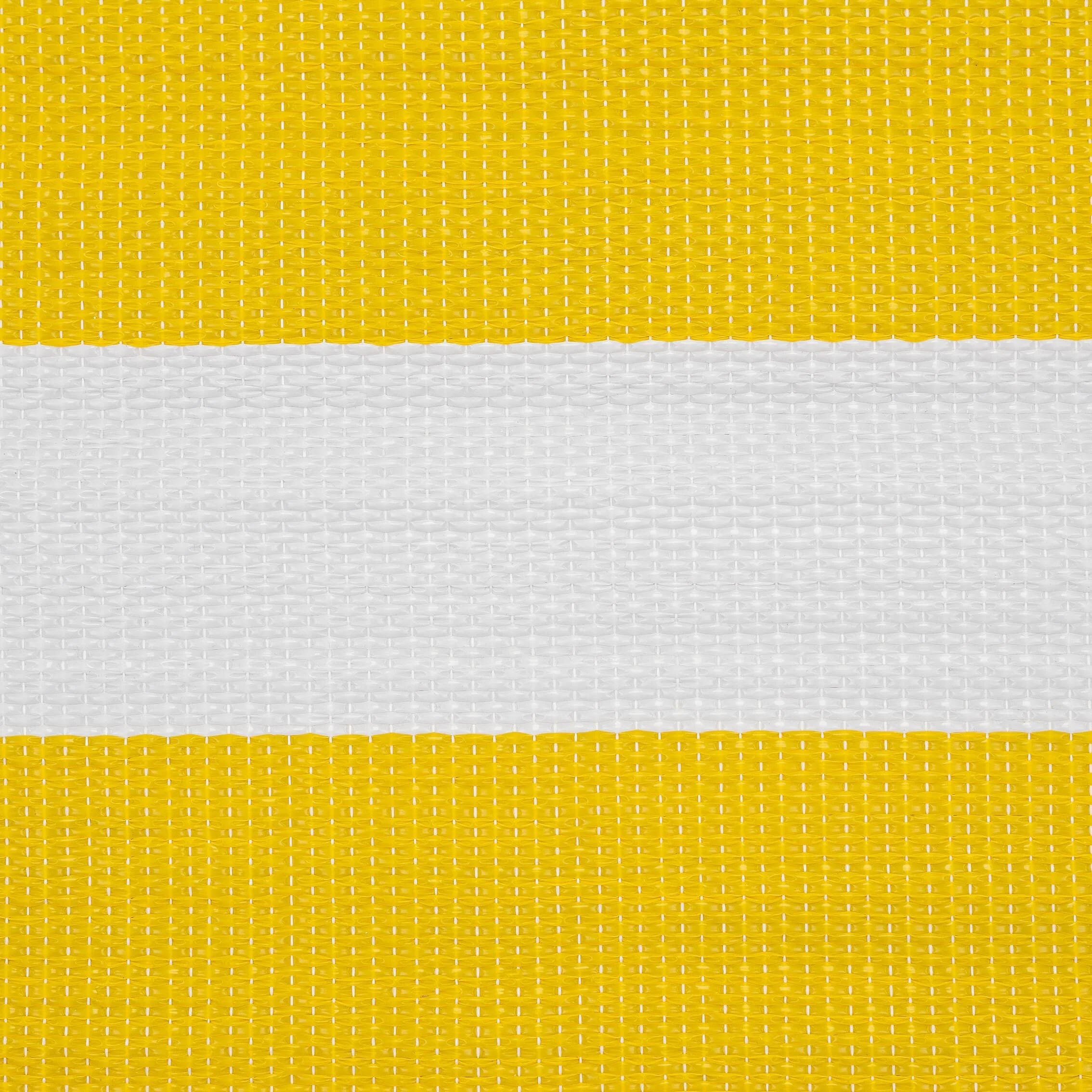 This multi-use foldable, waterproof outdoor rug is perfect for any adventure. Use this portable, reversible area rug mat for playroom, exercise, poolside, camping, or picnic. In a colorful cabana awning stripe pattern. Natural stain-resistance and no additional treatments make it kid and pet friendly. Vacuum or shake to remove debris. Spot clean or clean outside with water; spray with garden hose to rinse. Allow to dry thoroughly.