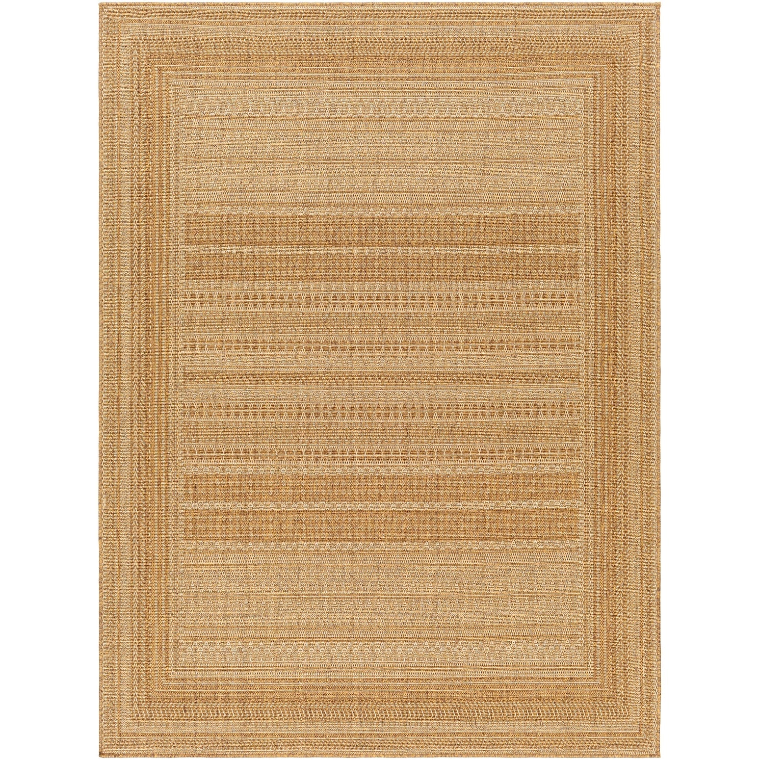 This outdoor-safe rug from the Pismo Beach collection offers design versatility for indoor or outdoor spaces with its neutral palette and casual stripe pattern with border. A high-performance accent, this piece complements a range of styles, including traditional, coastal, farmhouse, and global aesthetics. Machine woven in Turkey of 100% Polypropylene with no pile, this rug is suitable for high-traffic areas such as patios, entryways, hallways, dining areas, and living rooms. Easy to clean and durable, this rug is perfect for homes with small children or pets and can easily transition for use inside or outside the home. Spot clean only, or rinse with a garden hose. The use of an outdoor rug pad is recommended.
