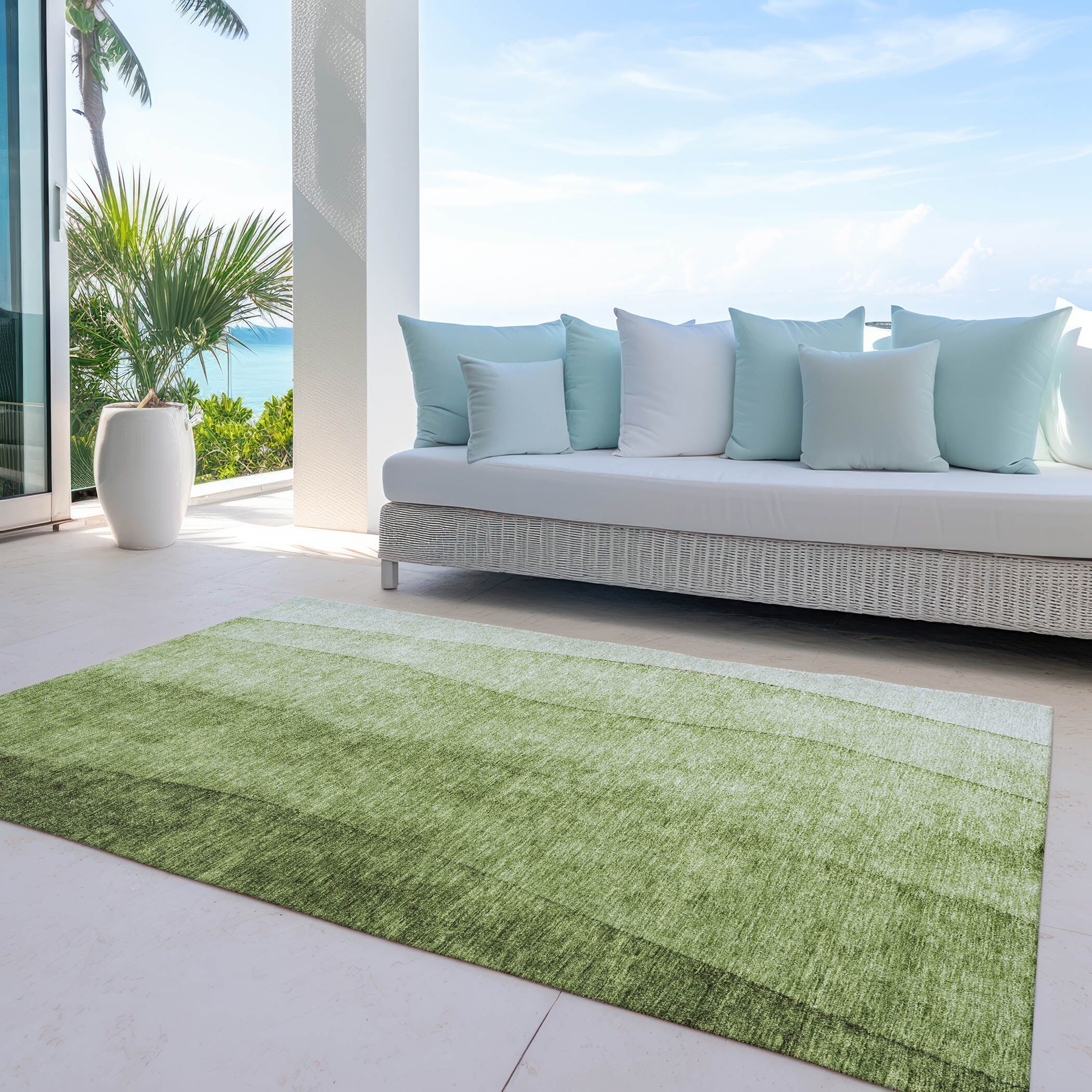 Step into a world of color with our area rug that features a mesmerizing ombre effect. This transitional design masterpiece seamlessly blends with any room's d茅cor. UV-stabilized for indoor and outdoor placement, it offers endless versatility. The rug's ultra-thin design comes with a built-in non-skid backing, saving you from the hassle of buying a separate rug pad. The ultra thin profile allows for fast drying after rainfall or outdoor cleaning. Plus, it's machine-washable and highly compatible with family and pet environments. Larger rug sizes may not fit into a residential washing machine. They may be washed in a commercial size washing machine or hosed-off outside with mild soap and water. Air-dry, do not machine dry. All rugs exposed to long periods of intense and direct sunlight can experience loss of color over time. Our rugs perform best in covered outdoor areas and uncovered areas with lower hours of direct sunlight.