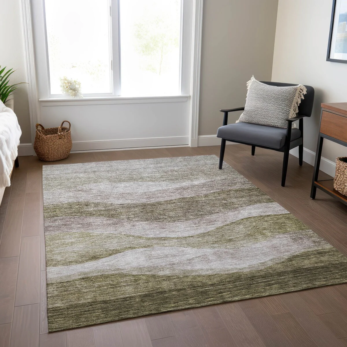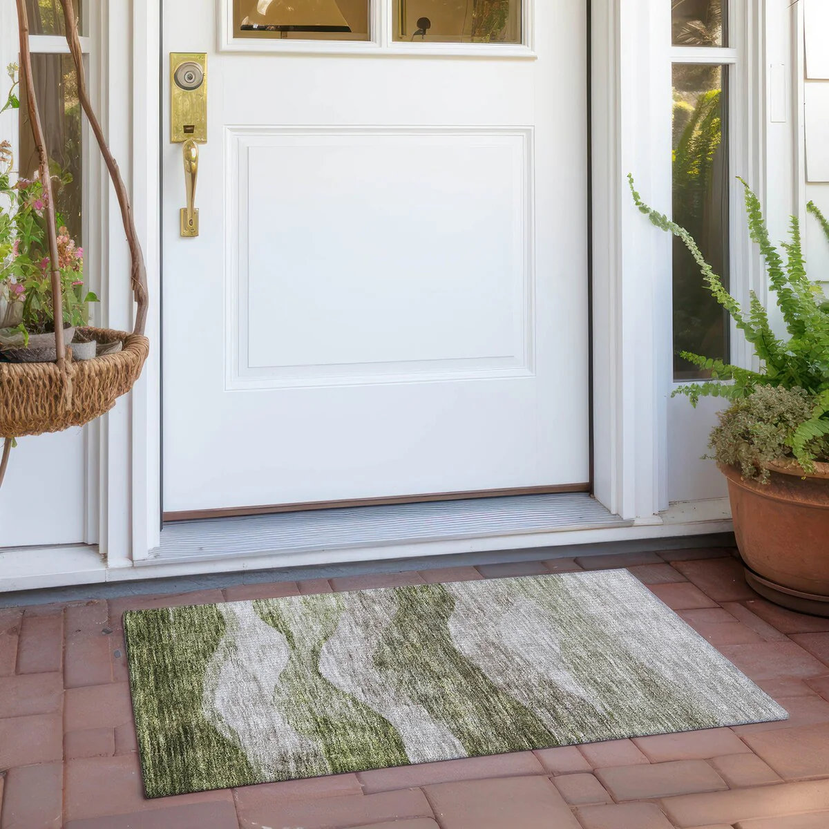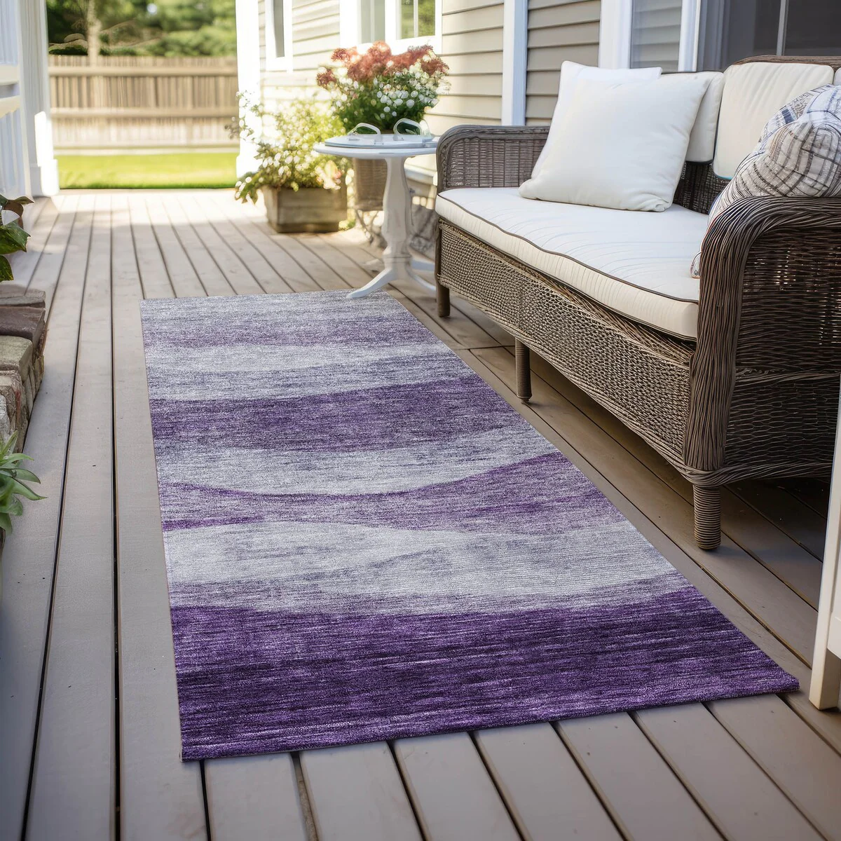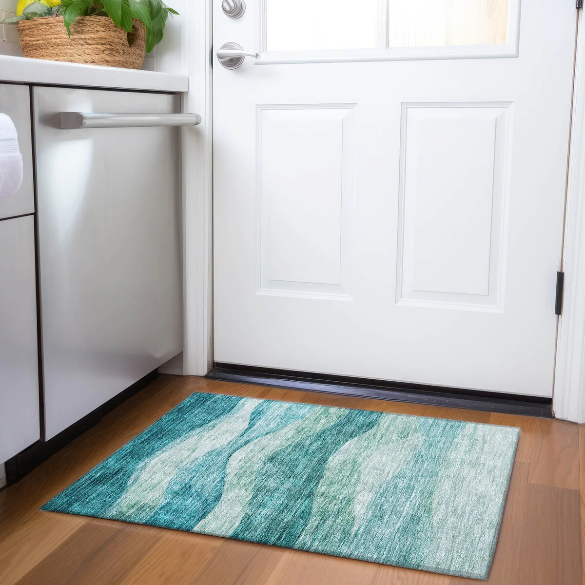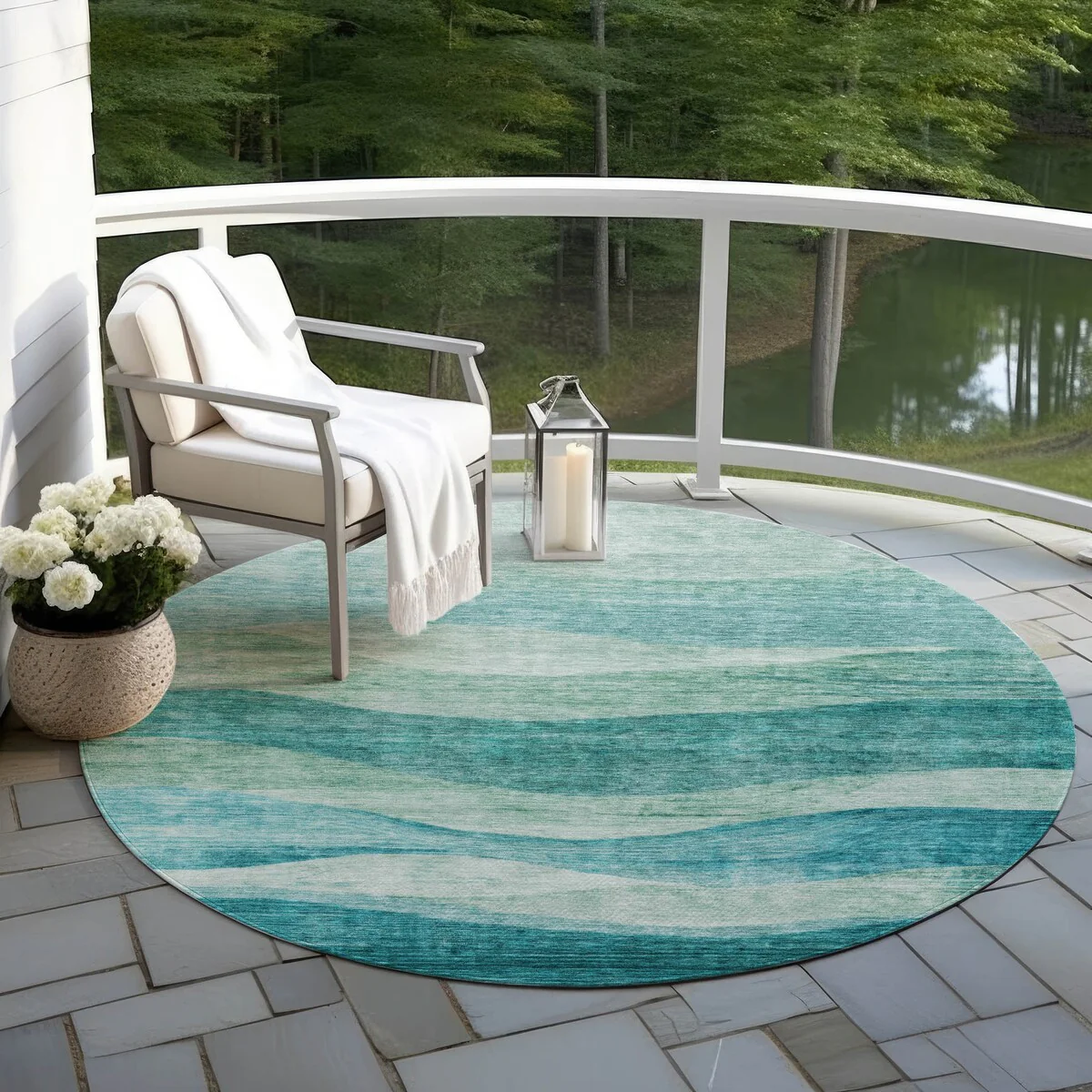 Indulge in the flowing beauty of our area rug, where waves with a gradient color theme and transitional swirls create a serene atmosphere in any room. UV stabilized to withstand the rigors of both indoor and outdoor use, its ultra-thin design makes it an unobtrusive yet stylish addition to any area. Plus, its machine-washable construction makes it a practical choice for families with pets, effortlessly melding elegance with everyday usability. All rugs exposed to long periods of intense and direct sunlight can experience loss of color over time. Our rugs perform best in covered outdoor areas and uncovered areas with lower hours of direct sunlight. The ultra thin profile allows for fast drying after rainfall or outdoor cleaning. Larger rug sizes may not fit into a residential washing machine. They may be washed in a commercial size washing machine or hosed-off outside with mild soap and water. Air-dry, do not machine dry. While each rug already has a non-skid backing, the necessity for additional cushion or room settings with high traction areas, may require an additional rug pad.
