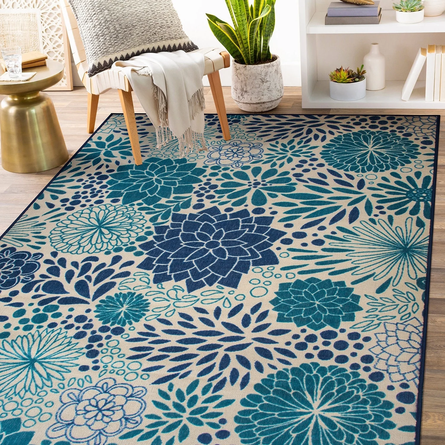 Liven up your indoor or outdoor d茅cor with this tropical flatwoven rug. It features a floral design and vibrant colors.It is easy to maintain by rinsing with a garden hose with soapy water and air drying.For indoor or outdoor use. This collection offers area rugs that are suitable for all indoor/outdoor spaces.