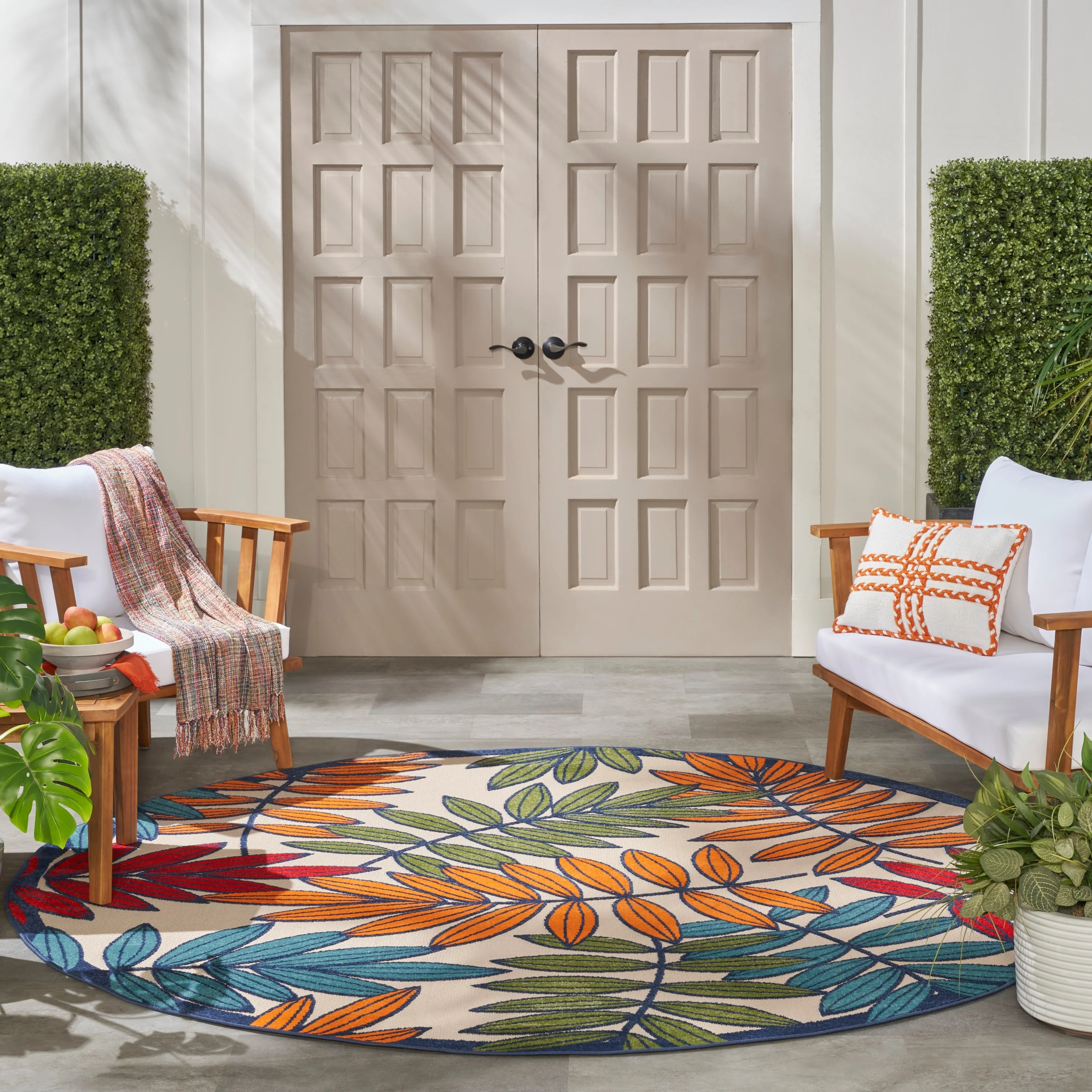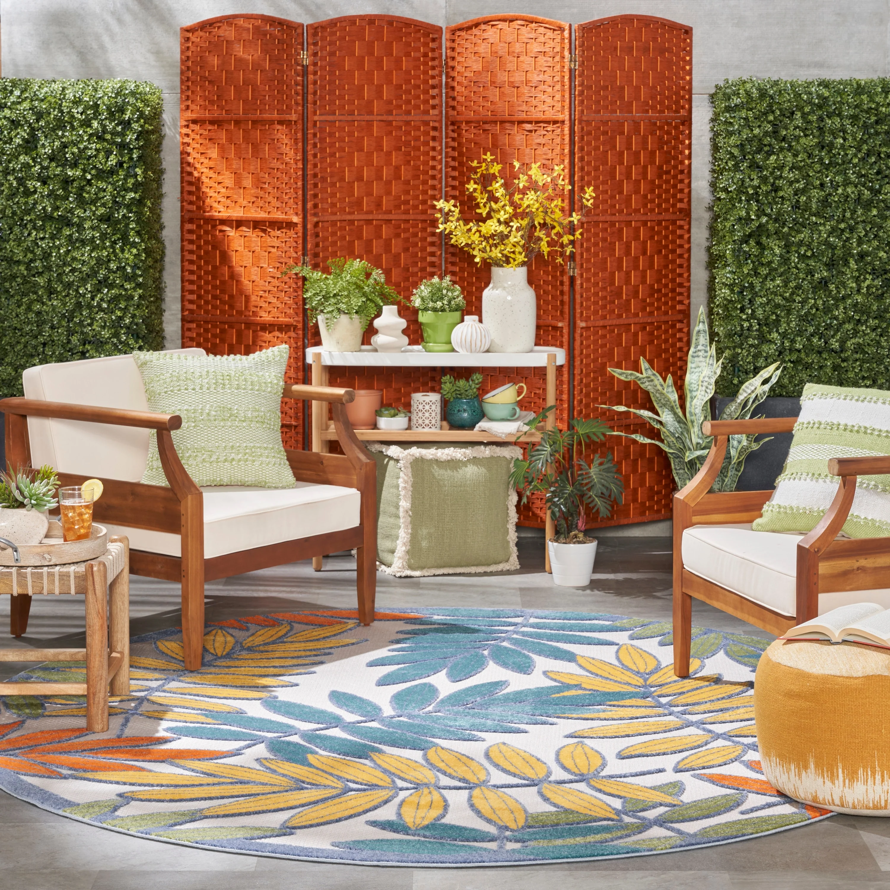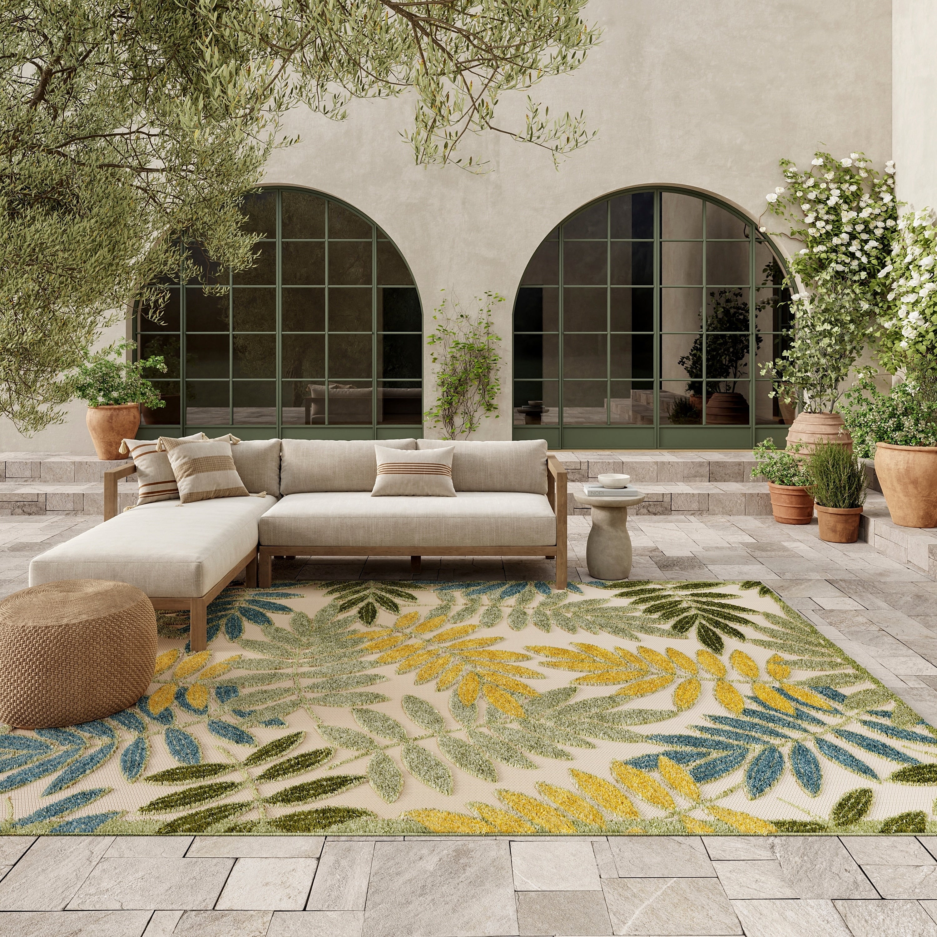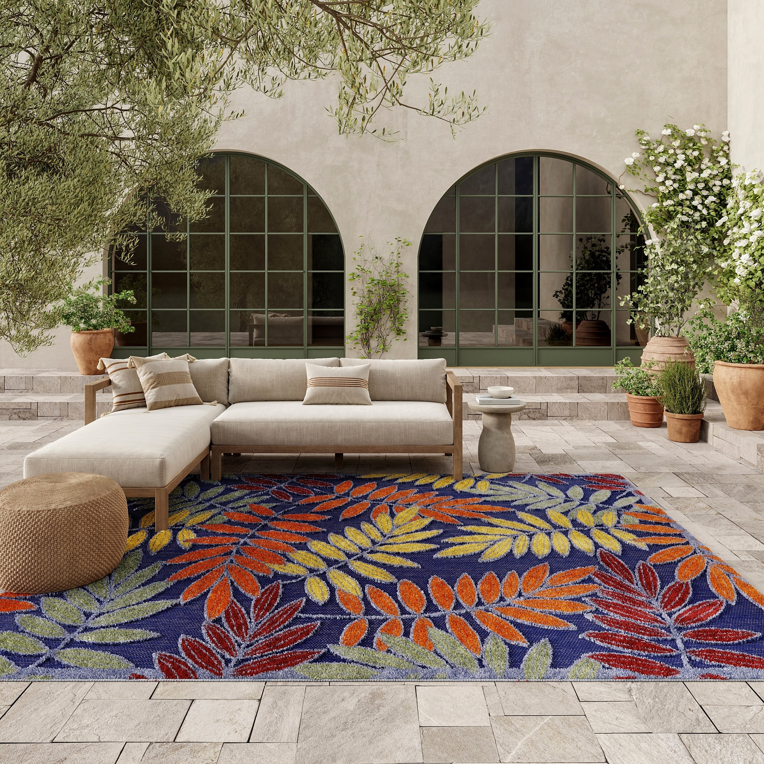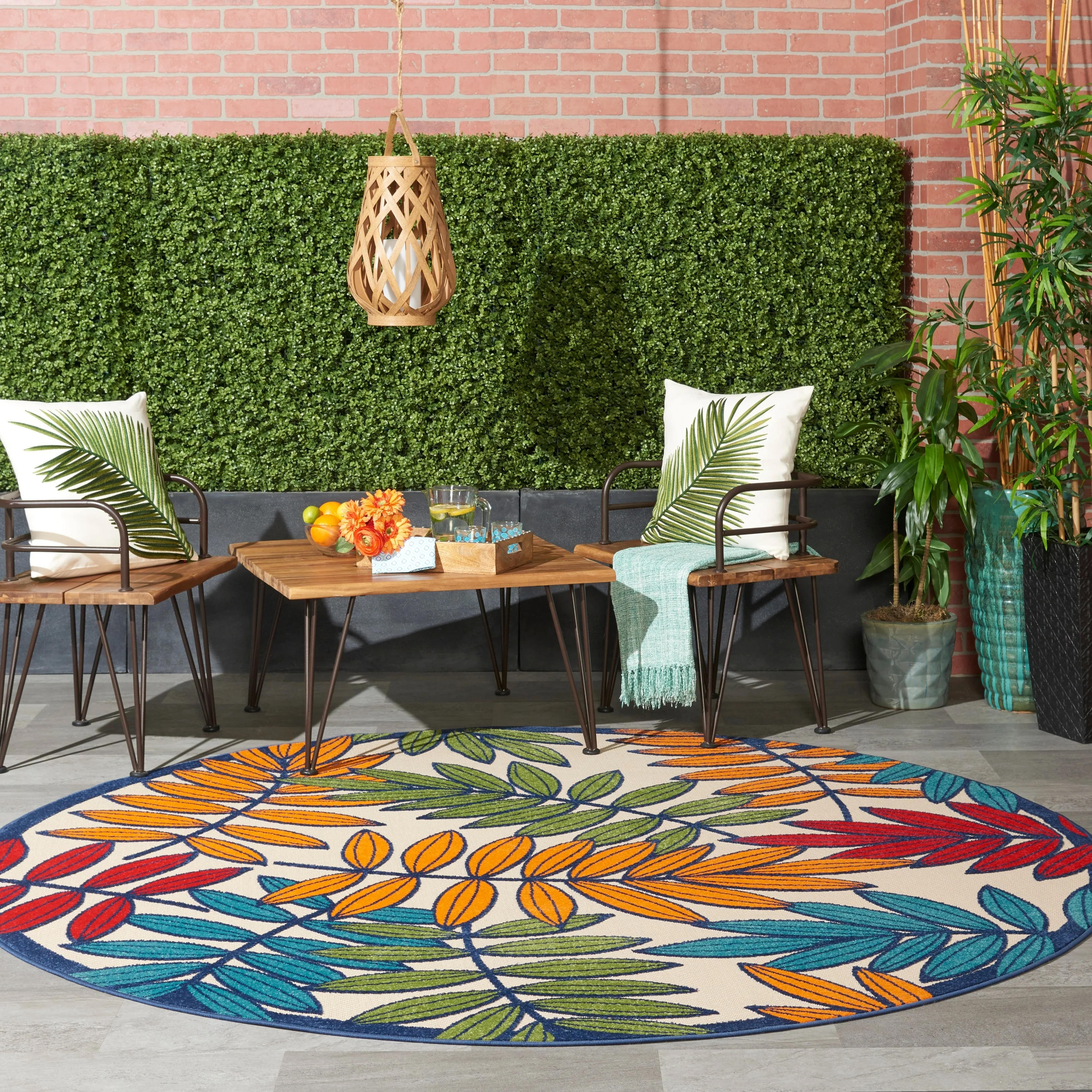 Add a colorful and stylish look to your home decor with this vibrant area rug from the Nourison collection The pet-friendly polypropylene pile is patterned with a large-scale leaf design for coastal style Choose from multiple color schemes and several sizes to fit any space and add a contemporary and coastal look to your home setting.