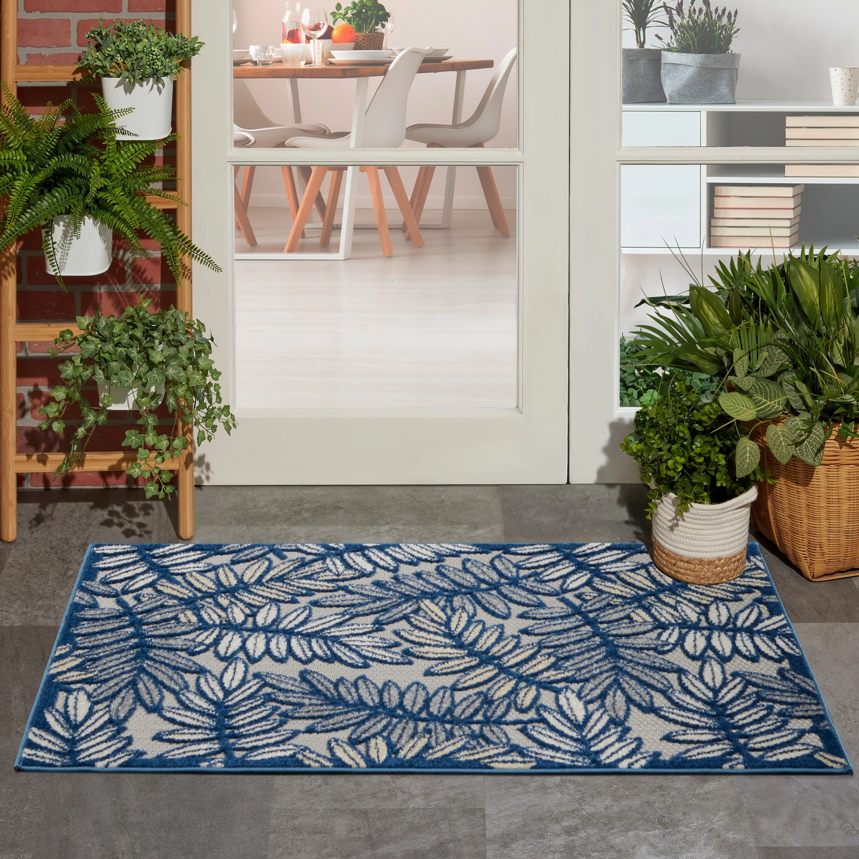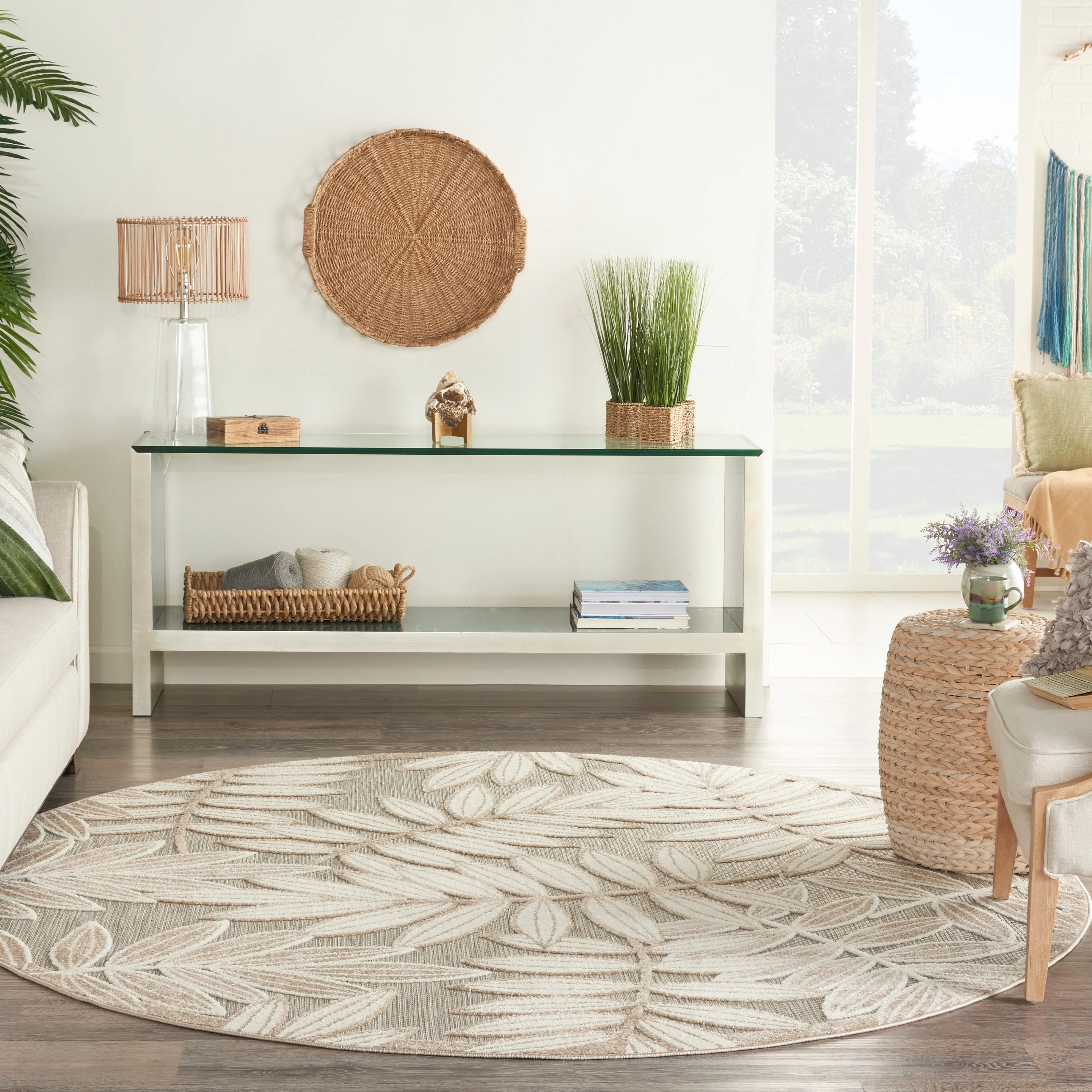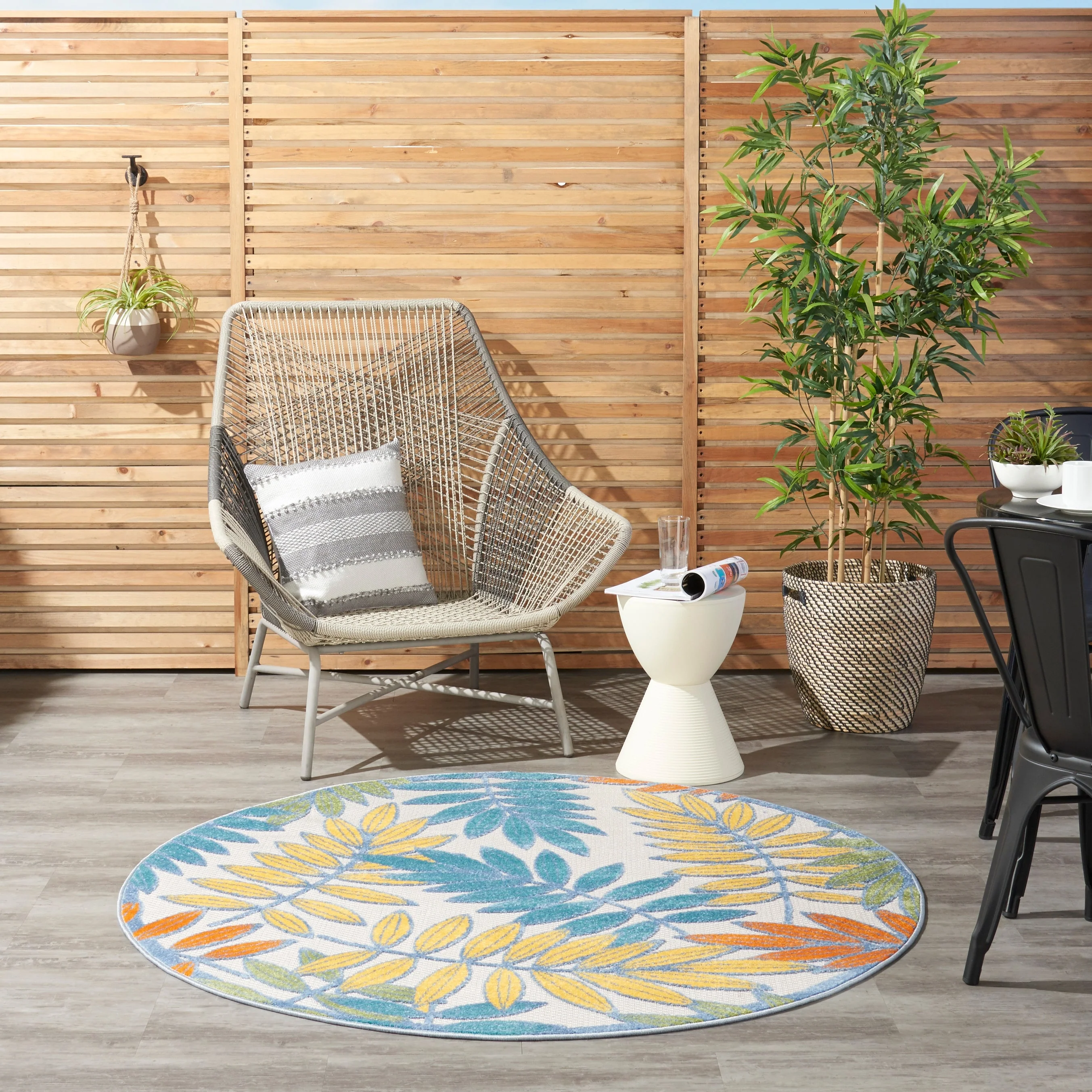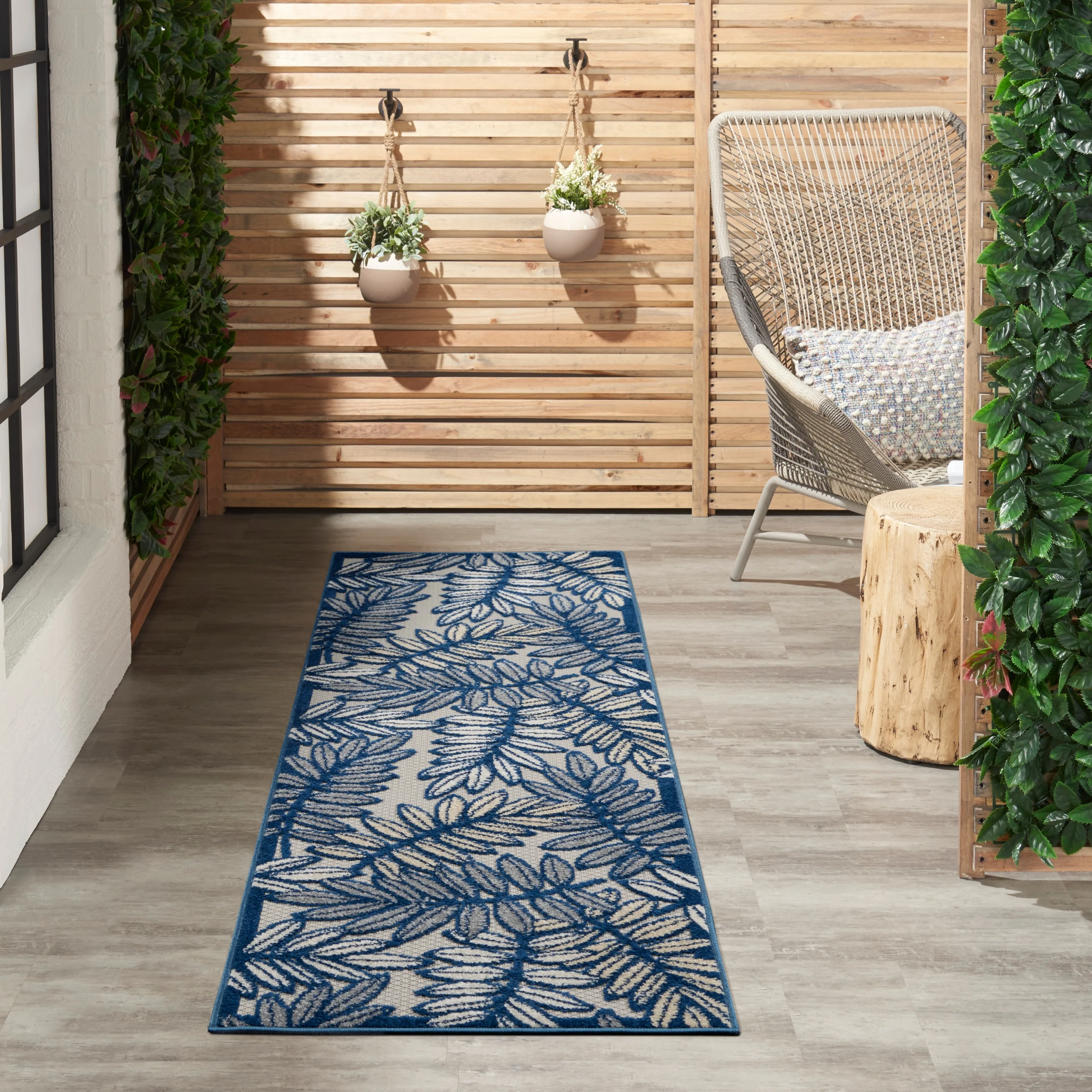 Add a colorful and stylish look to your home decor with this vibrant area rug from the Nourison collection The pet-friendly polypropylene pile is patterned with a large-scale leaf design for coastal style Choose from multiple color schemes and several sizes to fit any space and add a contemporary and coastal look to your home setting.