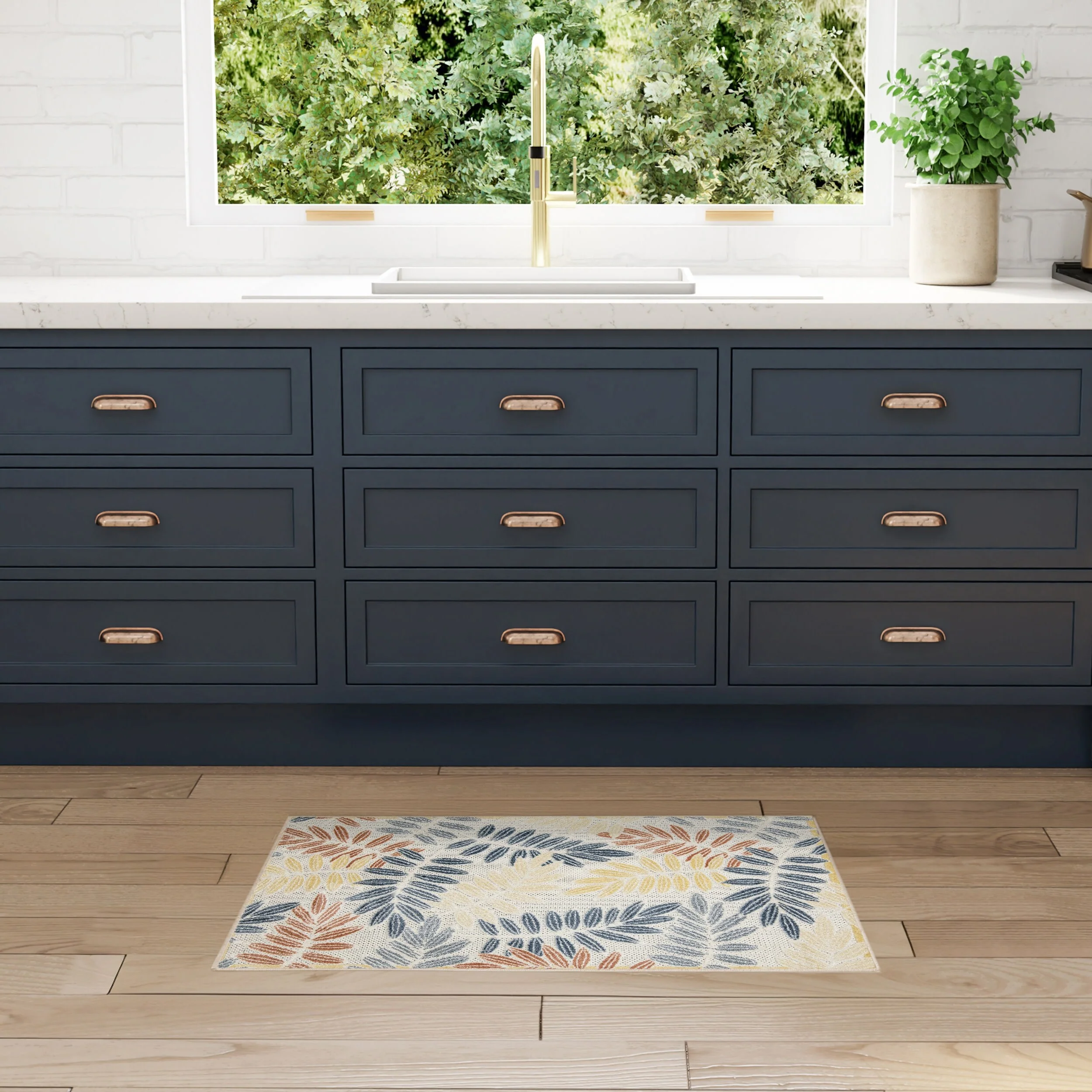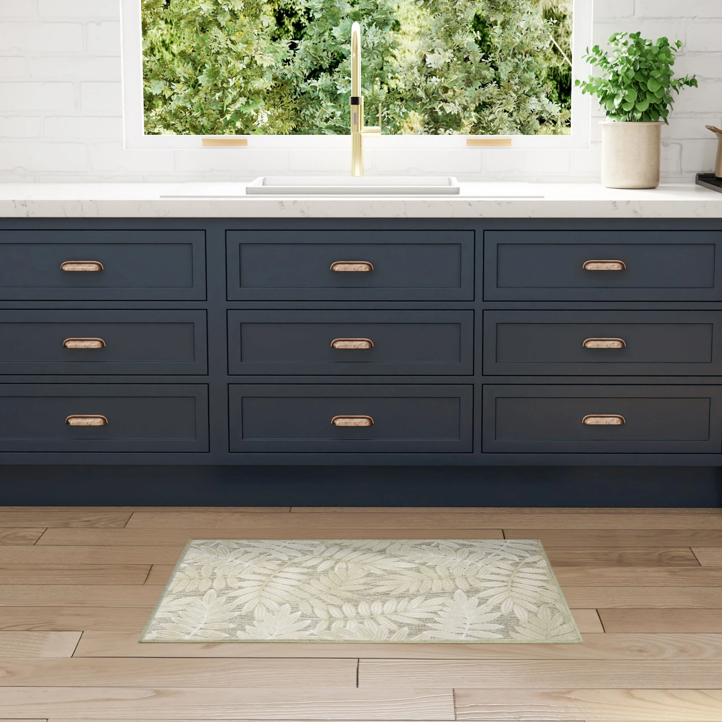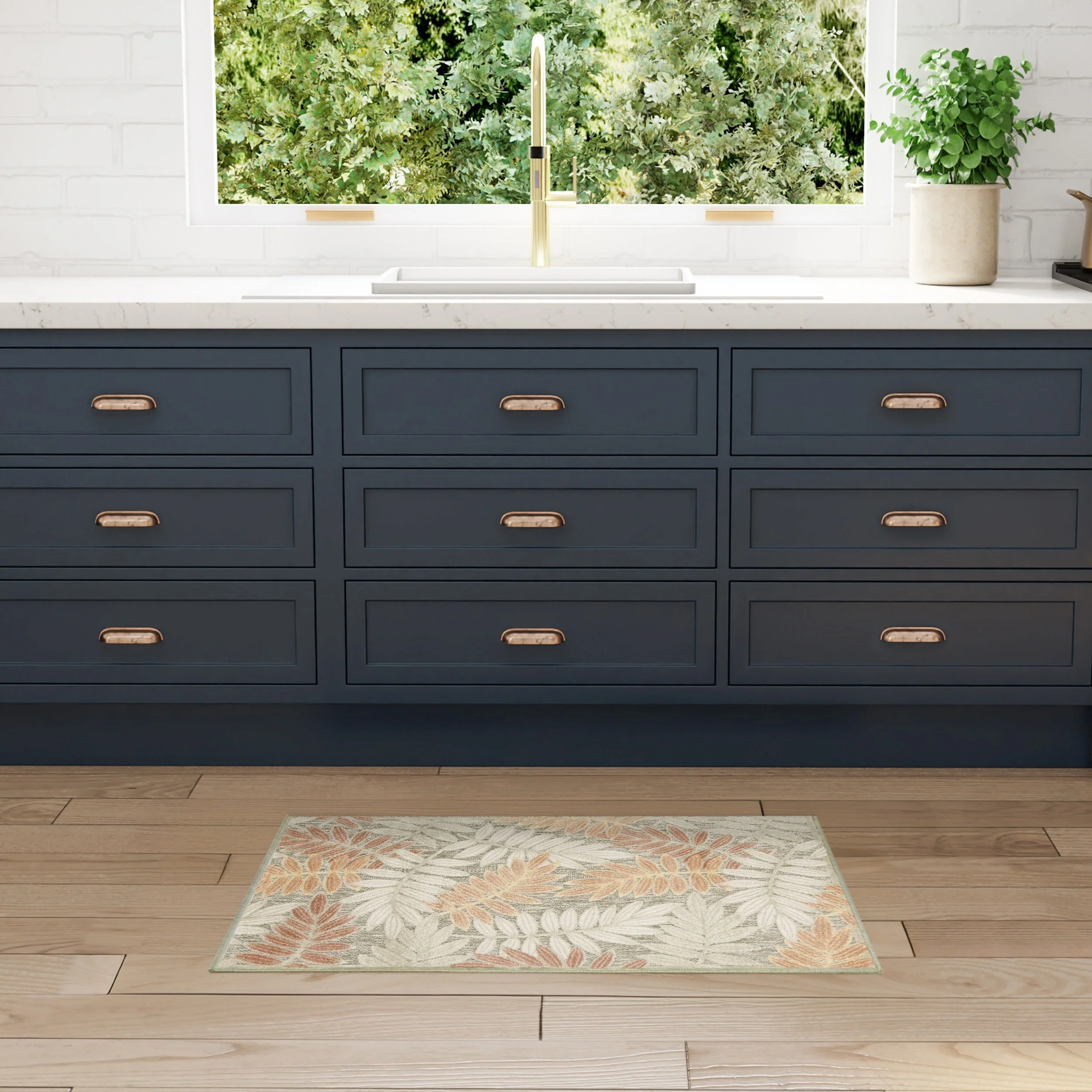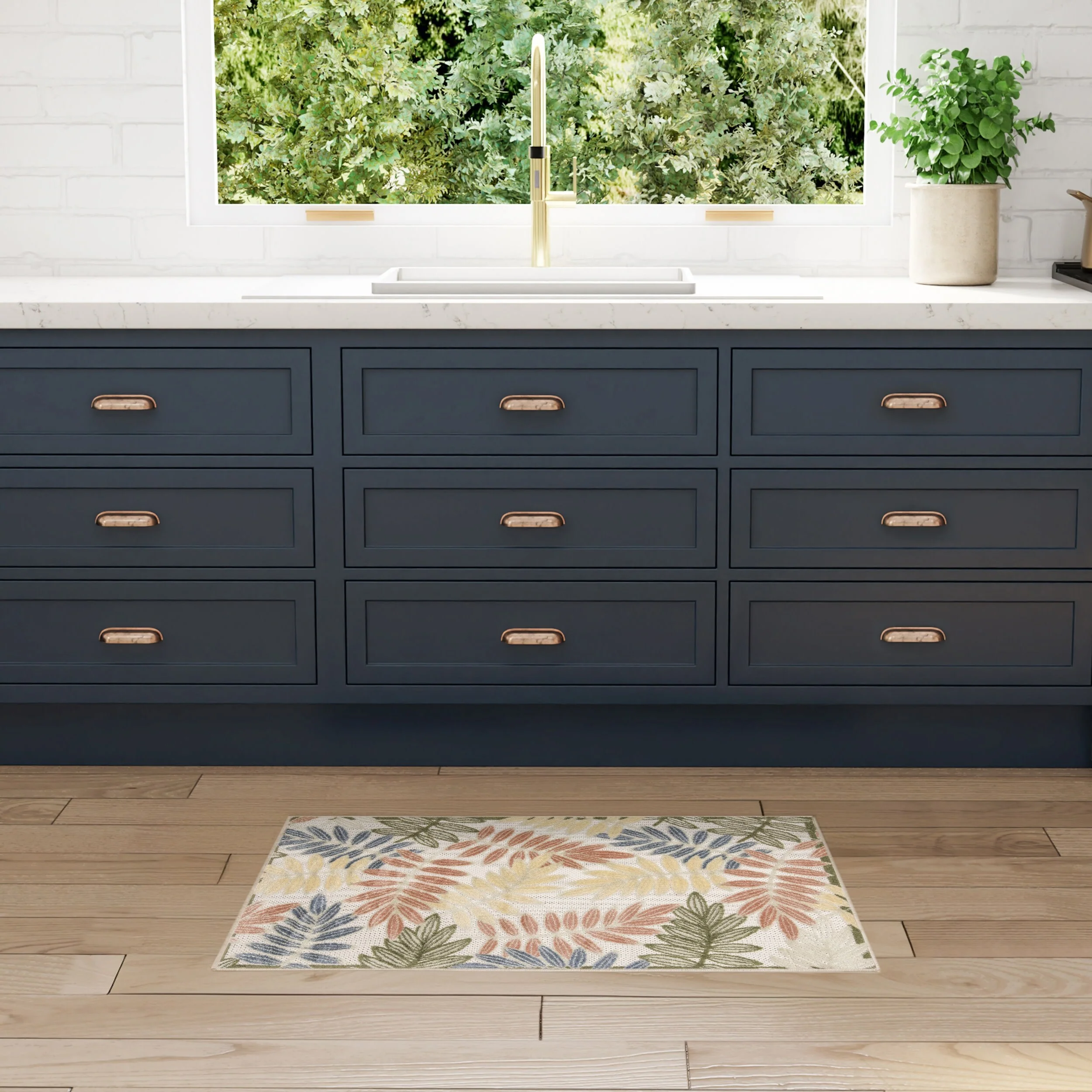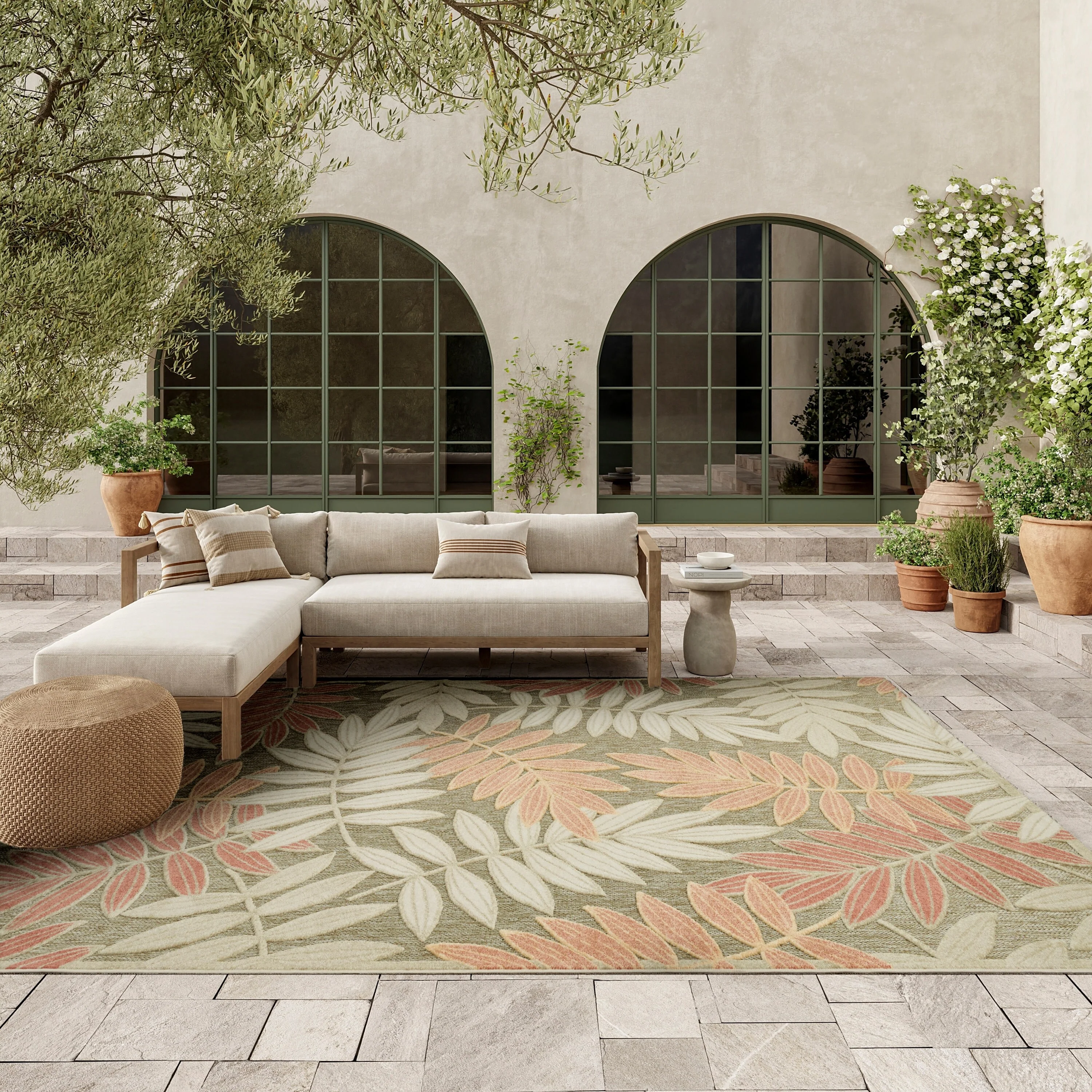 Add a colorful and stylish look to your home decor with this vibrant area rug from the Nourison collection The pet-friendly polypropylene pile is patterned with a large-scale leaf design for coastal style Choose from multiple color schemes and several sizes to fit any space and add a contemporary and coastal look to your home setting.