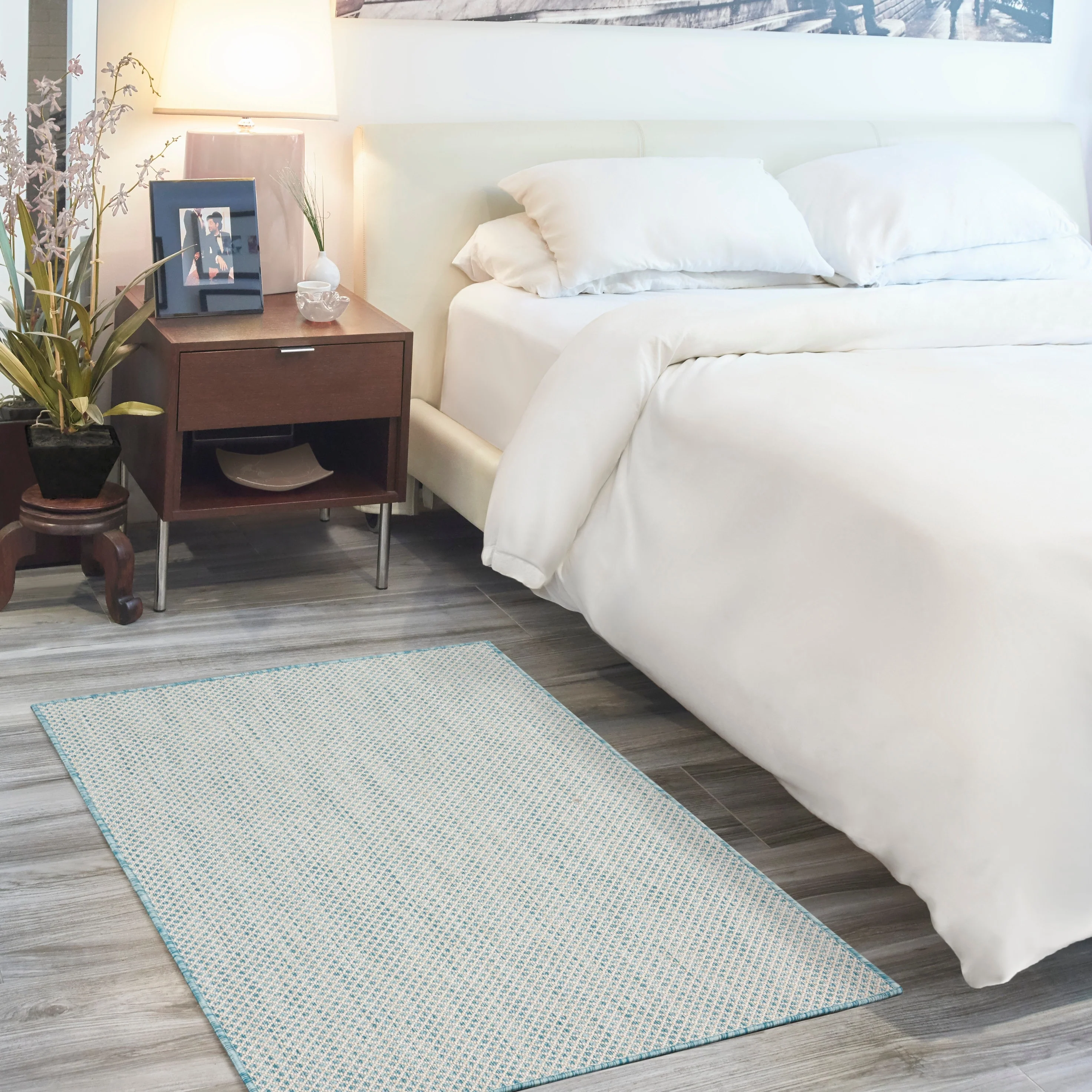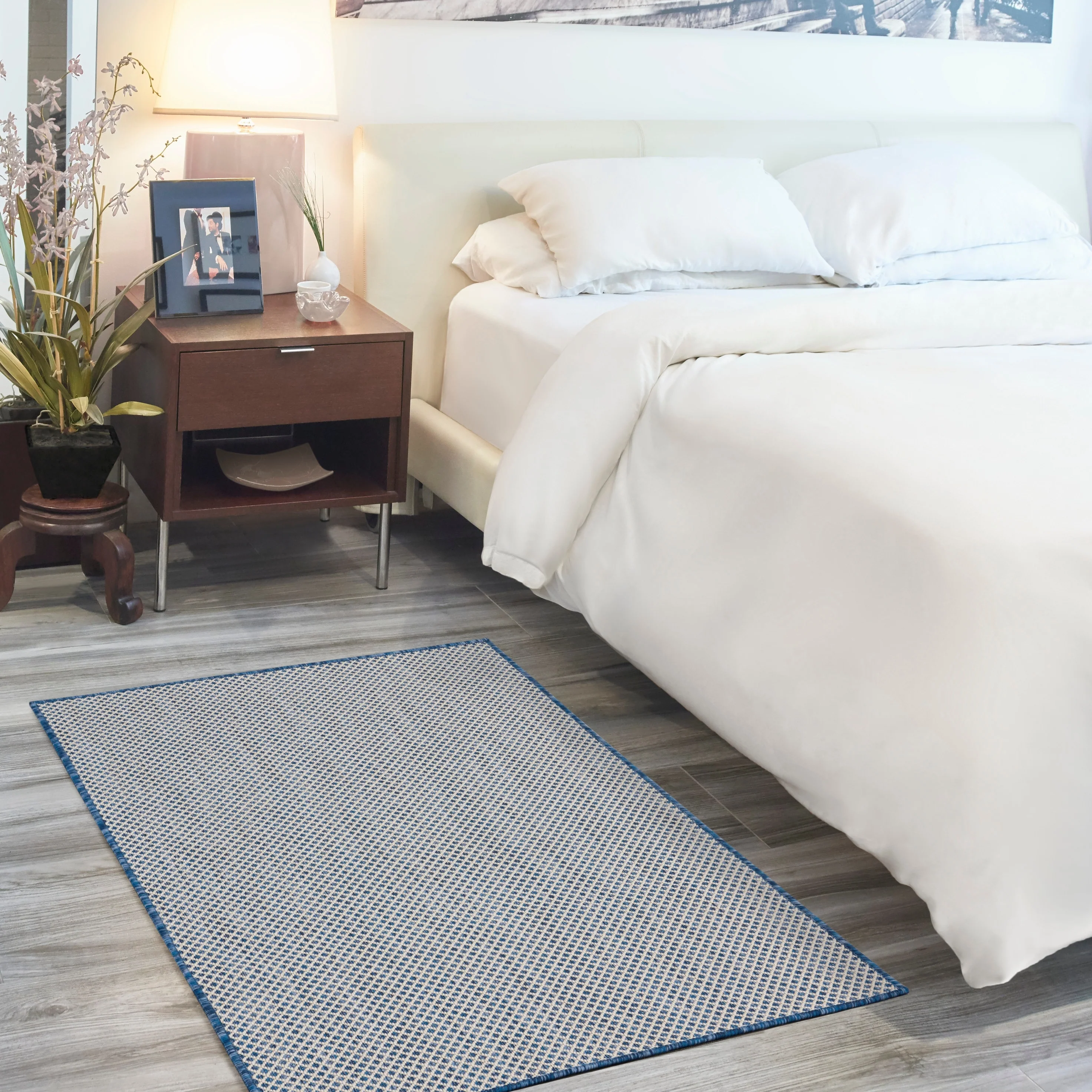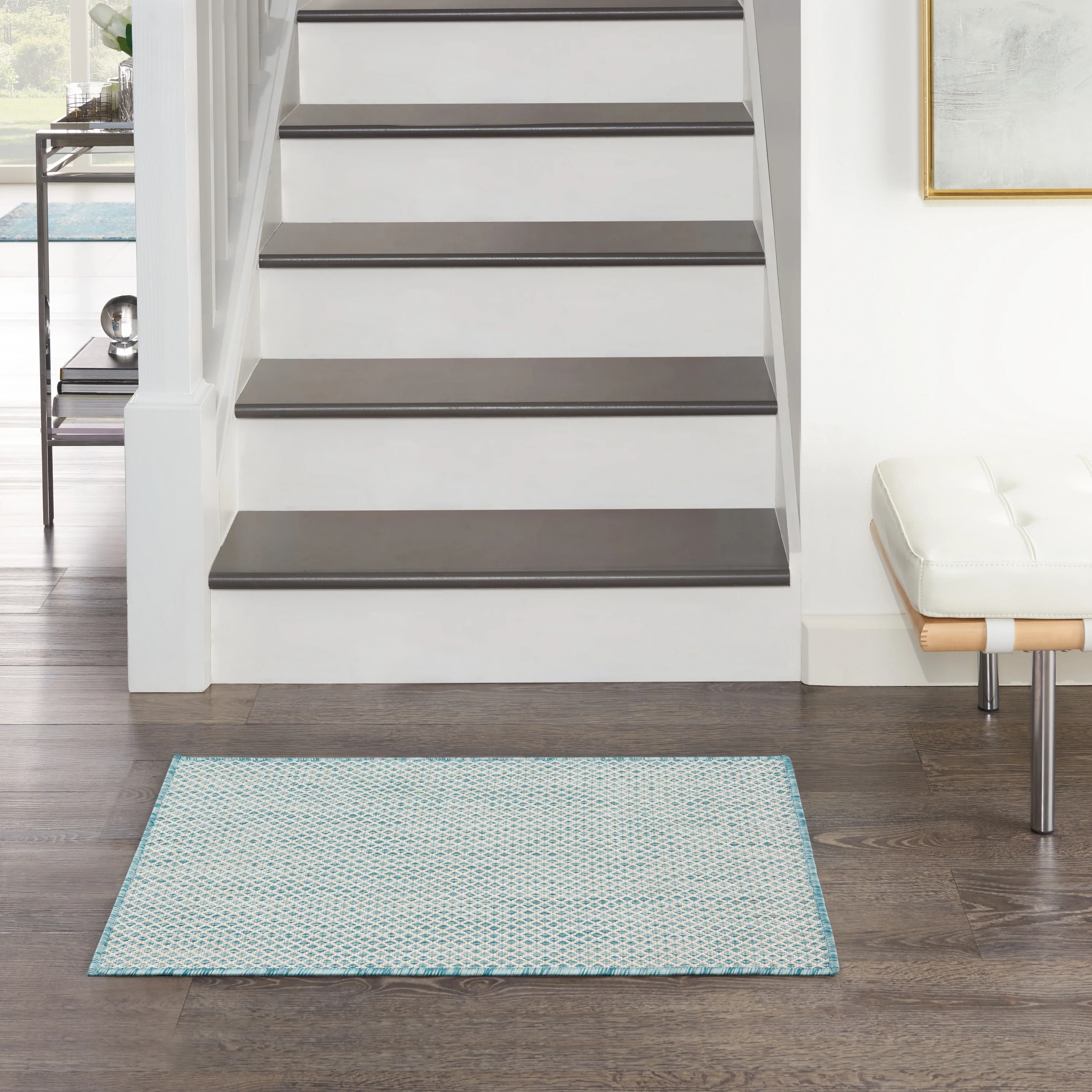 Add a touch of modern elegance to your indoor or outdoor space with the Nourison Courtyard Indoor/Outdoor Modern Geometric Area Rug. Featuring a subtly textured geometric pattern in fashionable hues, this rug is the perfect complement to contemporary decor. Crafted from durable polypropylene fibers, it can withstand heavy foot traffic and can be easily cleaned by hosing it down and air drying. Kid and pet-friendly, this rug is ideal for any heavy traffic area.