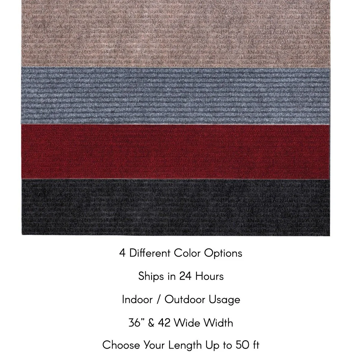 Bring comfort and style to your living space with our Playa Custom Size Outdoor/Indoor Carpet Runner Rug. Made from premium high-quality Polyester, this rug boasts of bright colors that prevent noise and protect your floor. It features a non-slip PVC backing that ensures safety and prevents slipping, making it suitable for children and pets to walk and play on. The rug provides a soft feeling on your feet while repelling water, and no additional rug pad is needed. With 4 different color options and customizable length up to 40 feet, our Playa Rug is perfect for adding a touch of elegance to your home while also being eco-friendly.