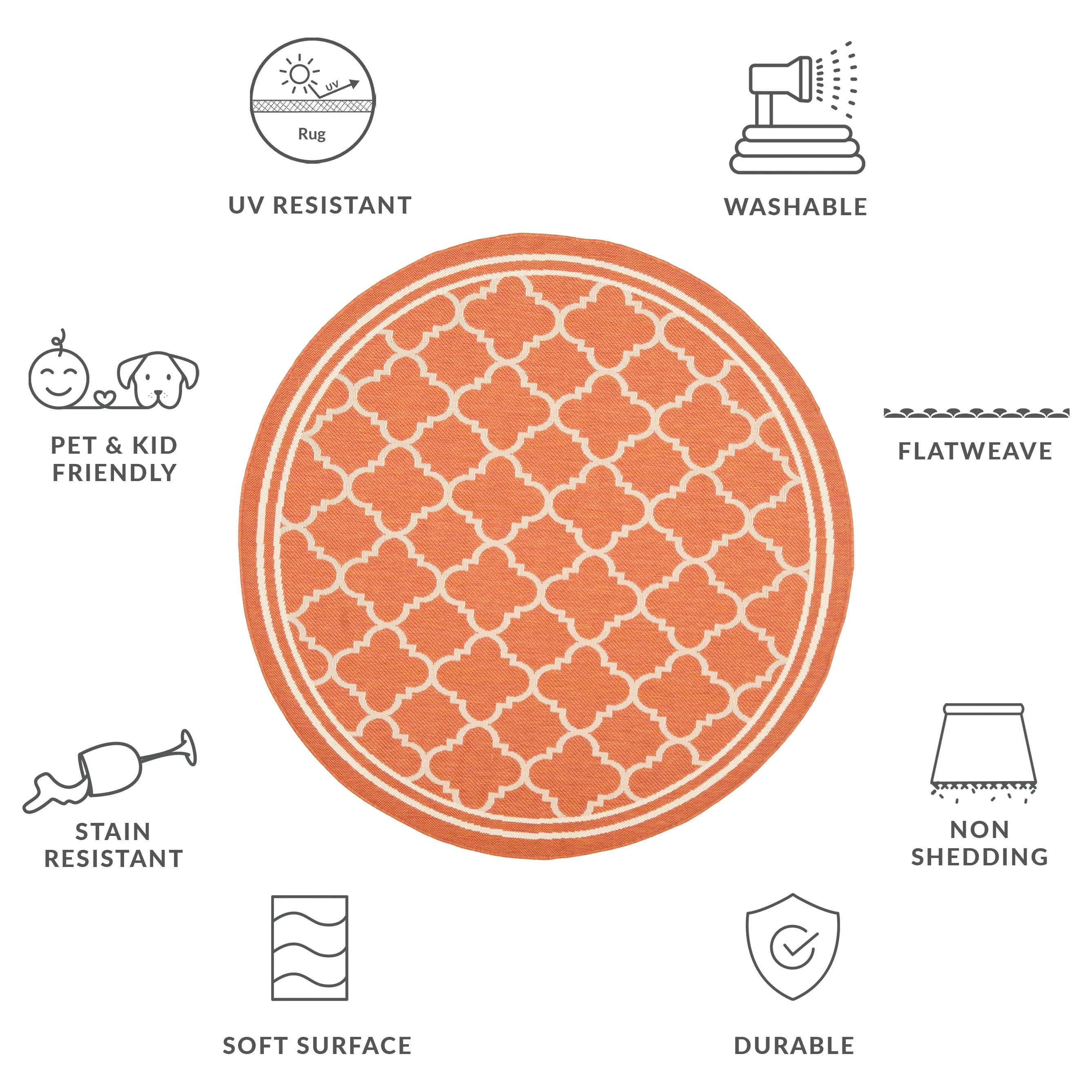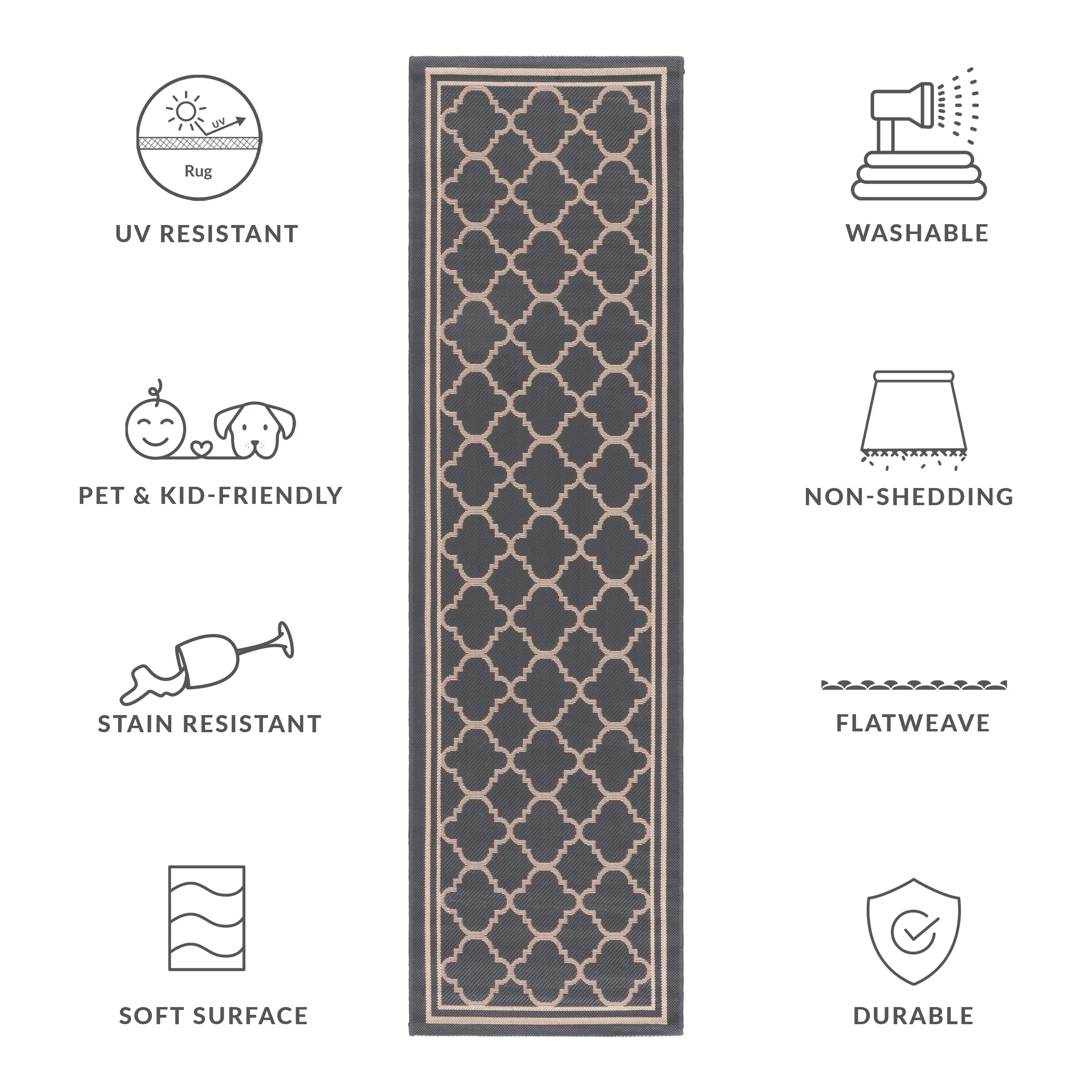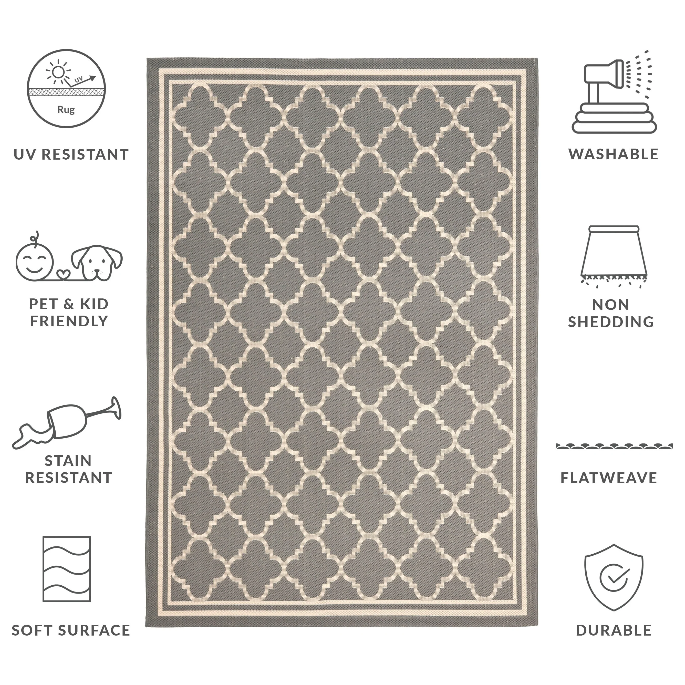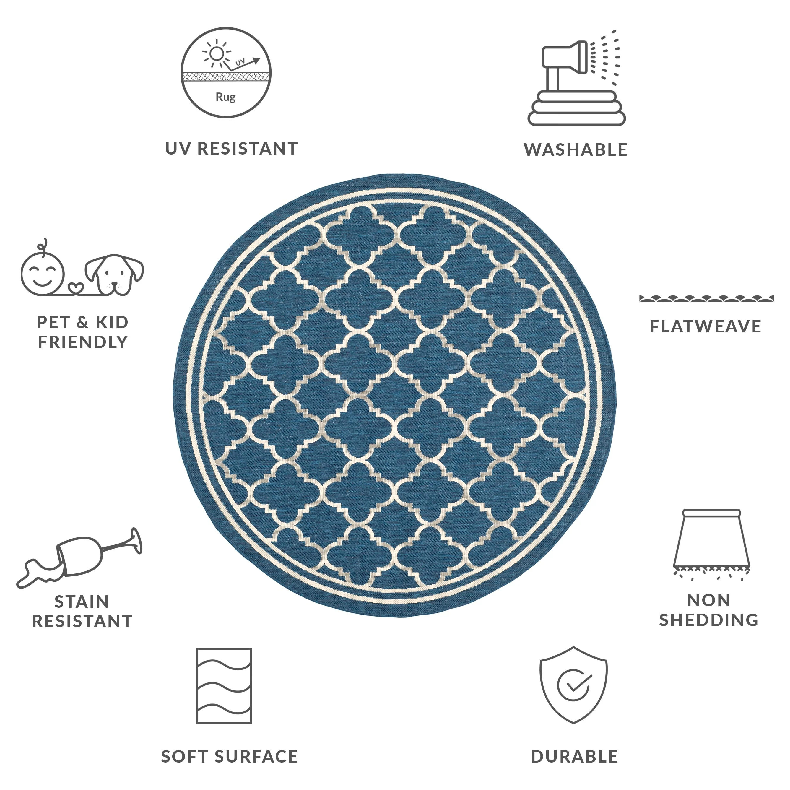 • Stain, Weather, and UV-Resistant: Machine-woven from enhanced synthetic fibers for virtually no shedding and stain resistance