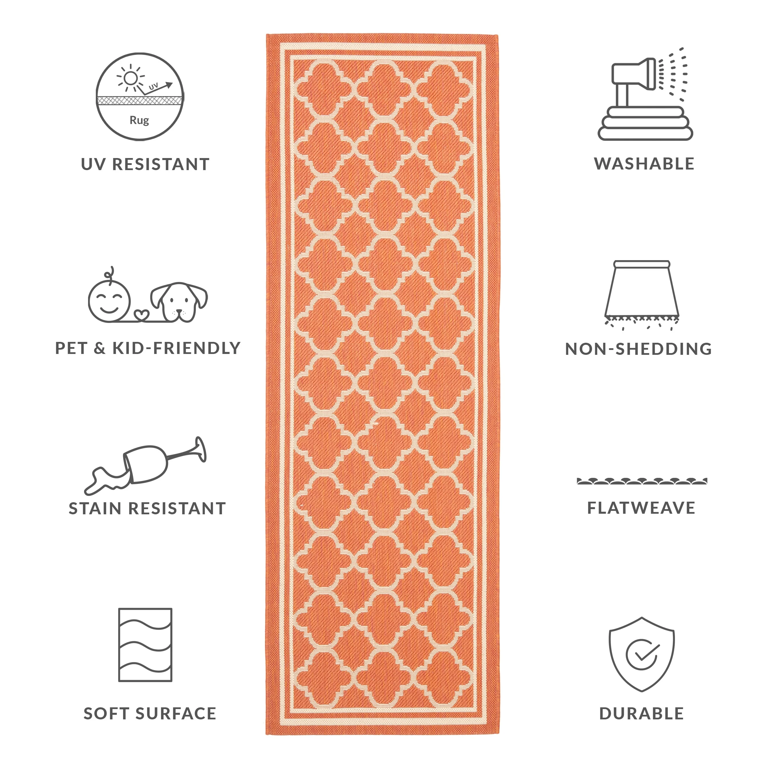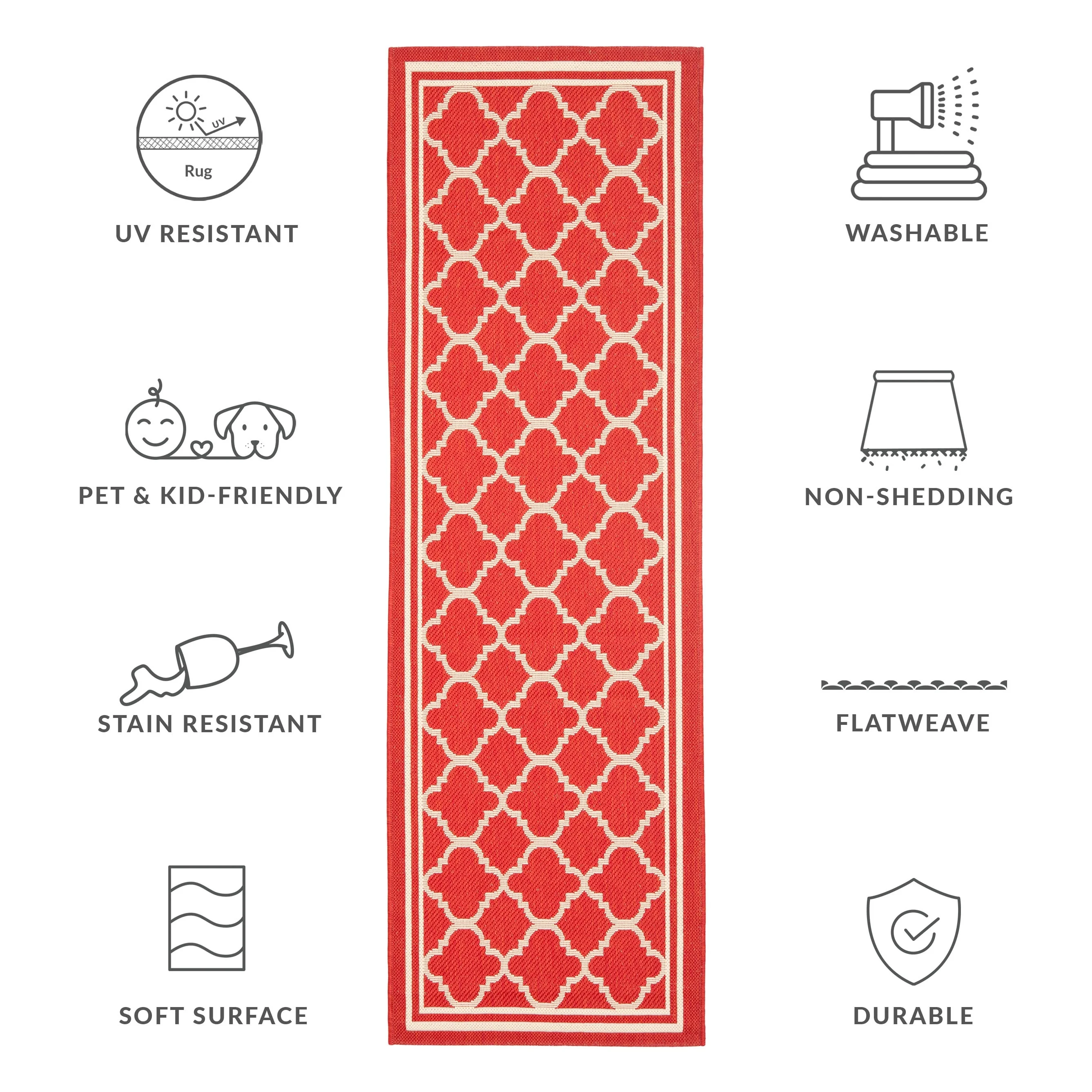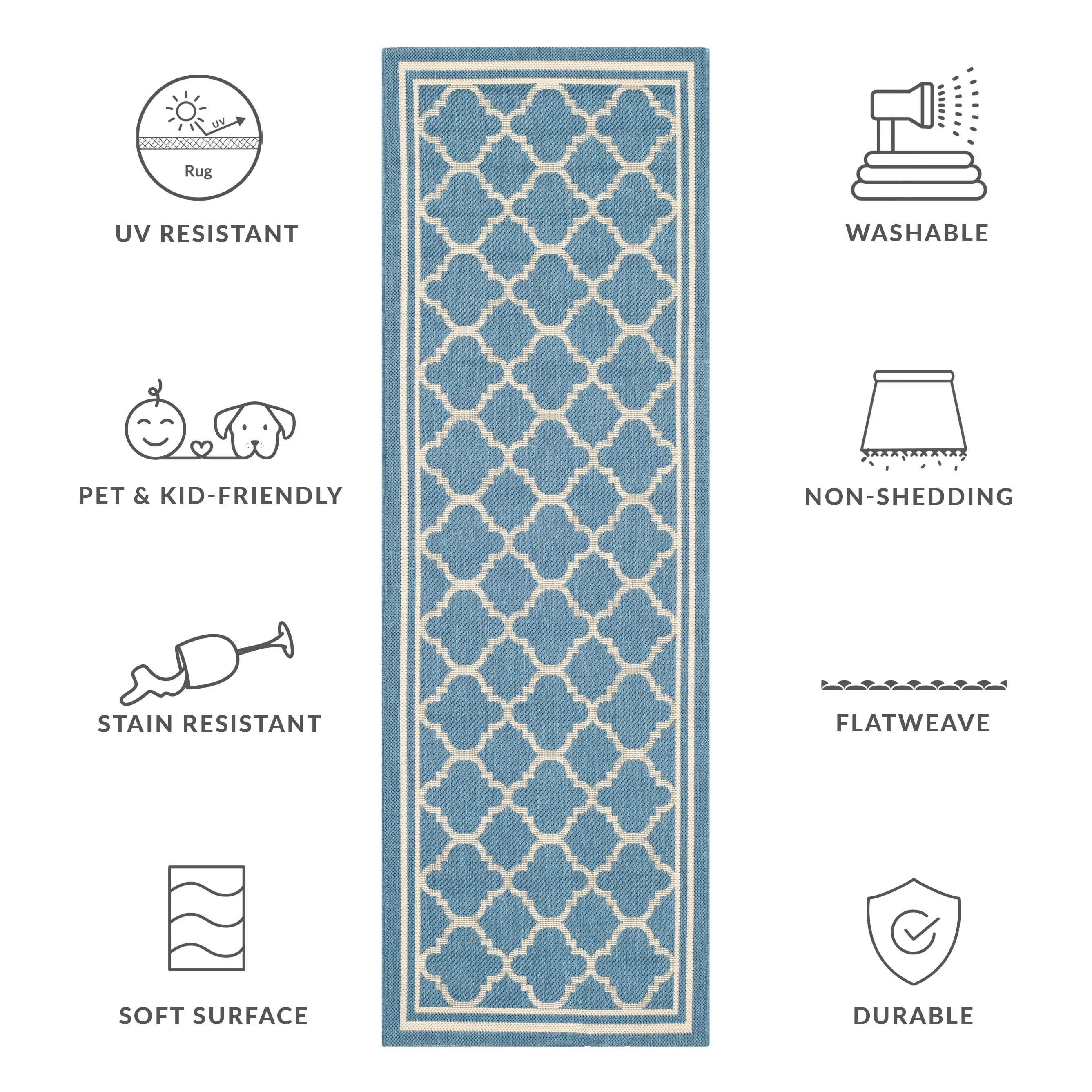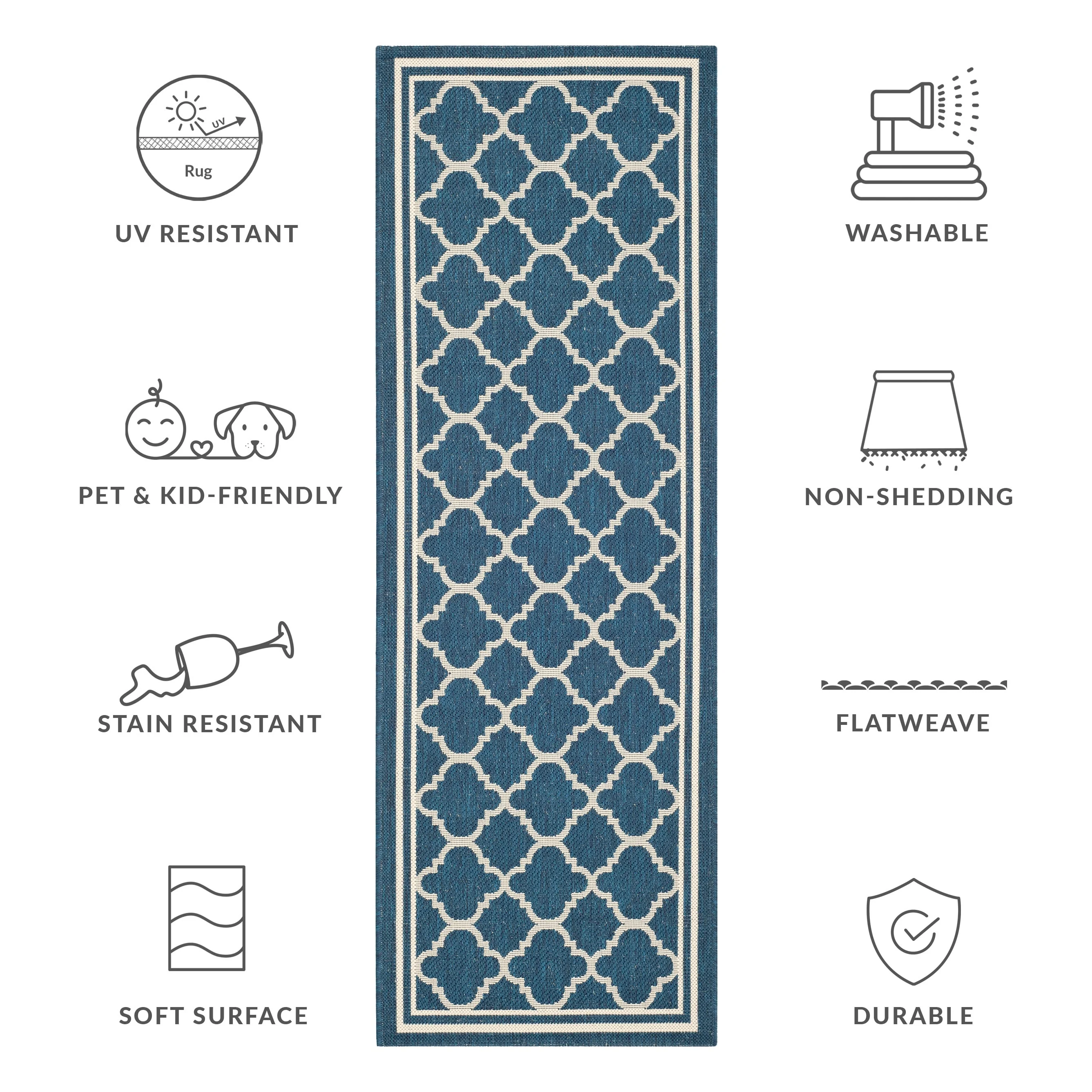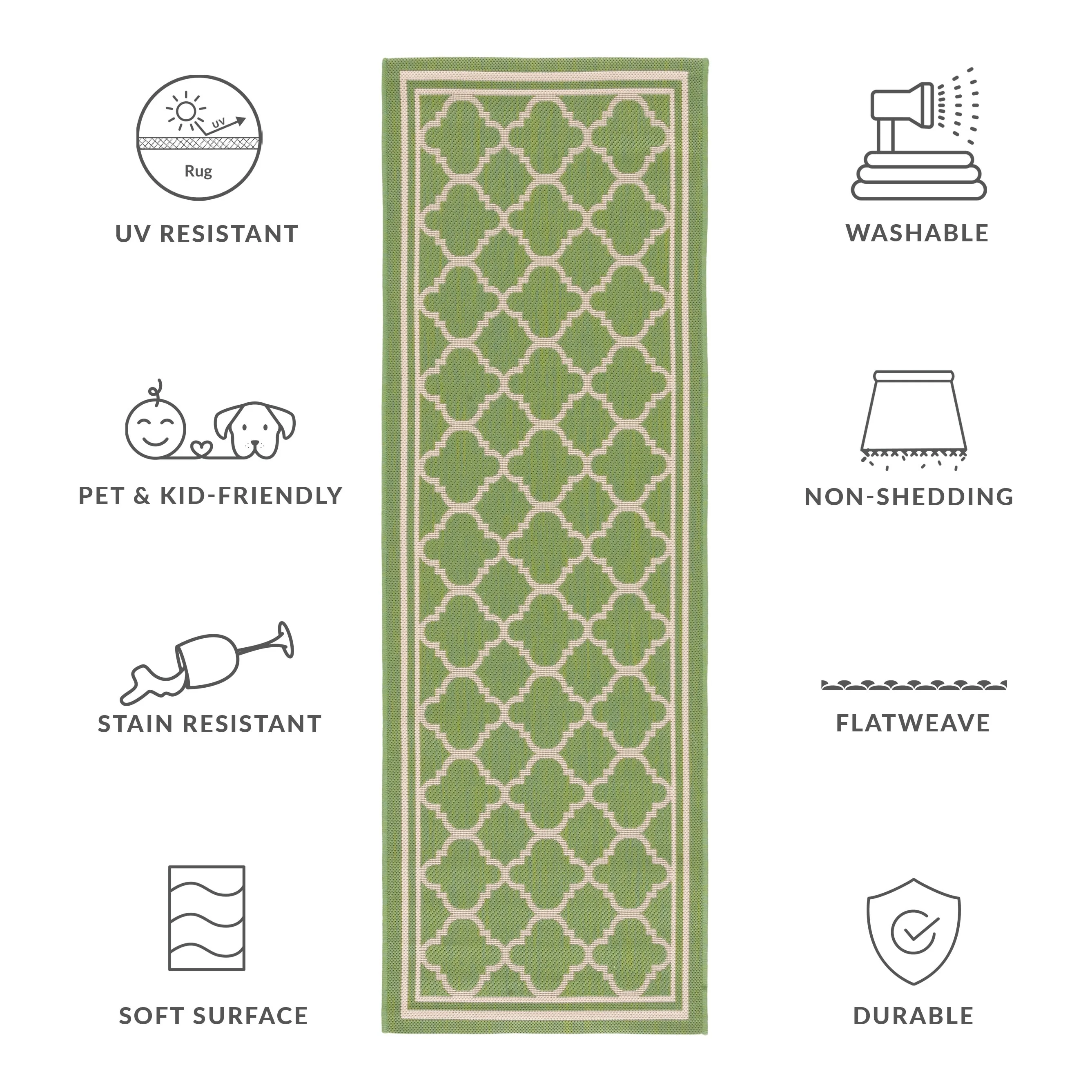 • Stain, Weather, and UV-Resistant: Machine-woven from enhanced synthetic fibers for virtually no shedding and stain resistance