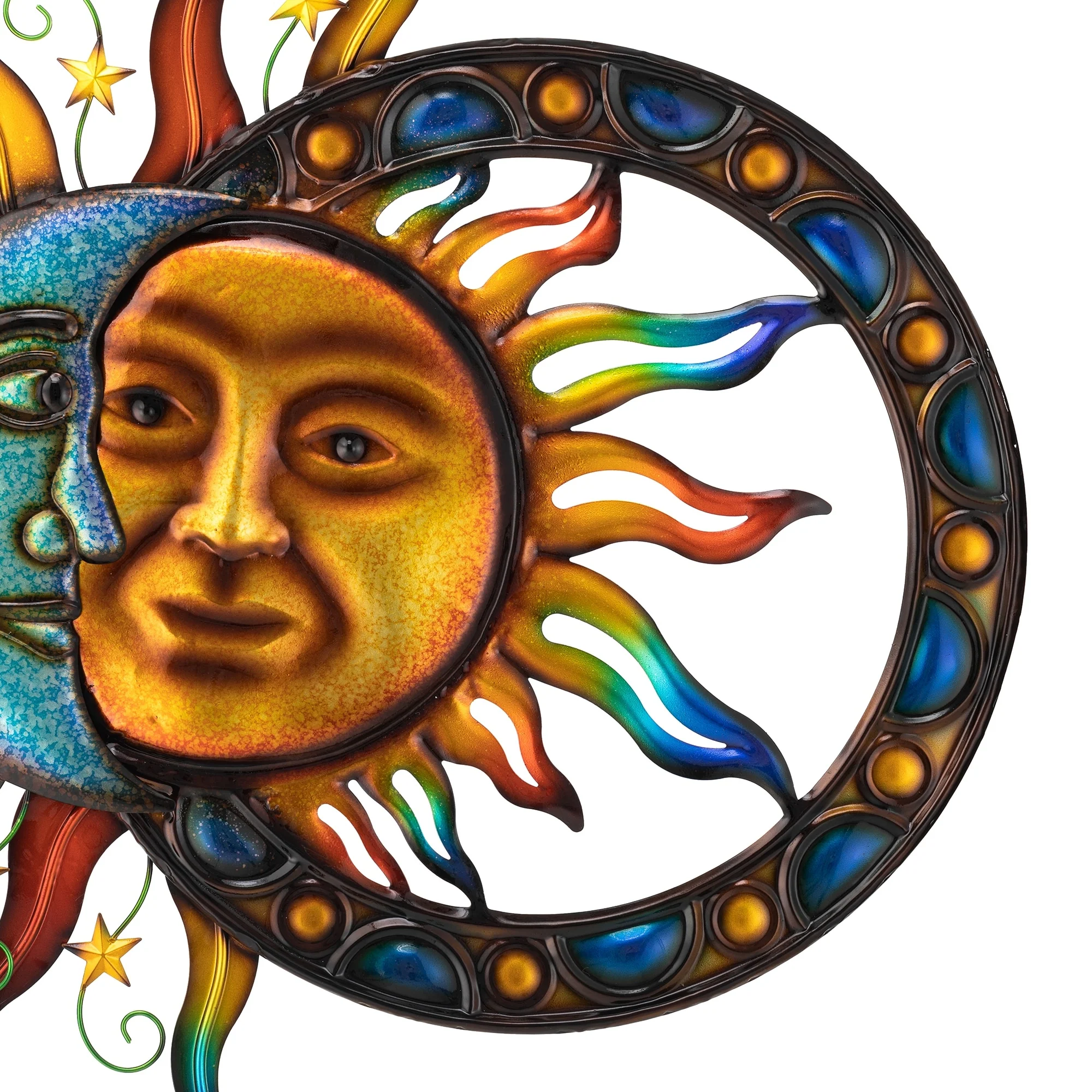 Greeting your guests with this stylish and artistic sun and moon wall sign. It is made of high quality iron with sturdy powder-coated various color. Featured with colorful finish as well as antique details providing a fantastic looking. This whimsy and charming wall decor is sure to brighten up any of your garden, porch, deck, patio or home space.