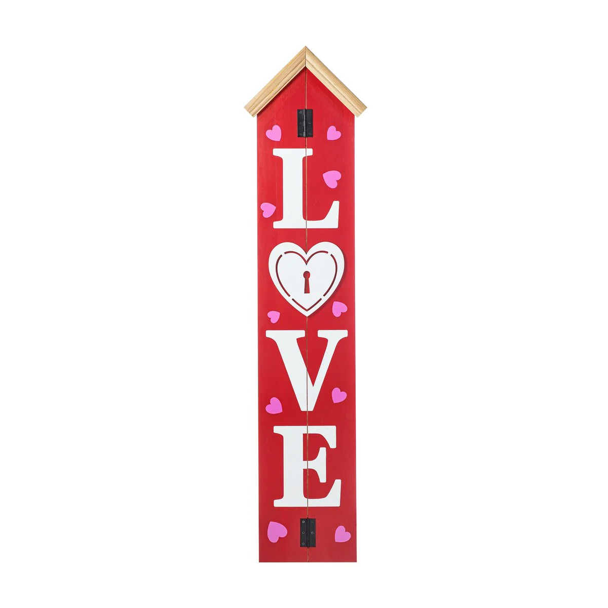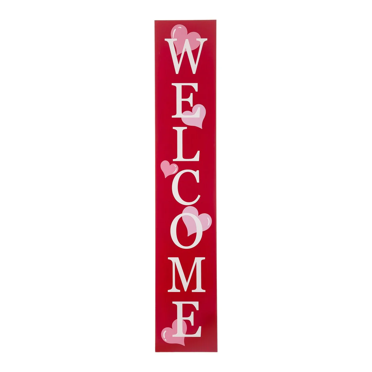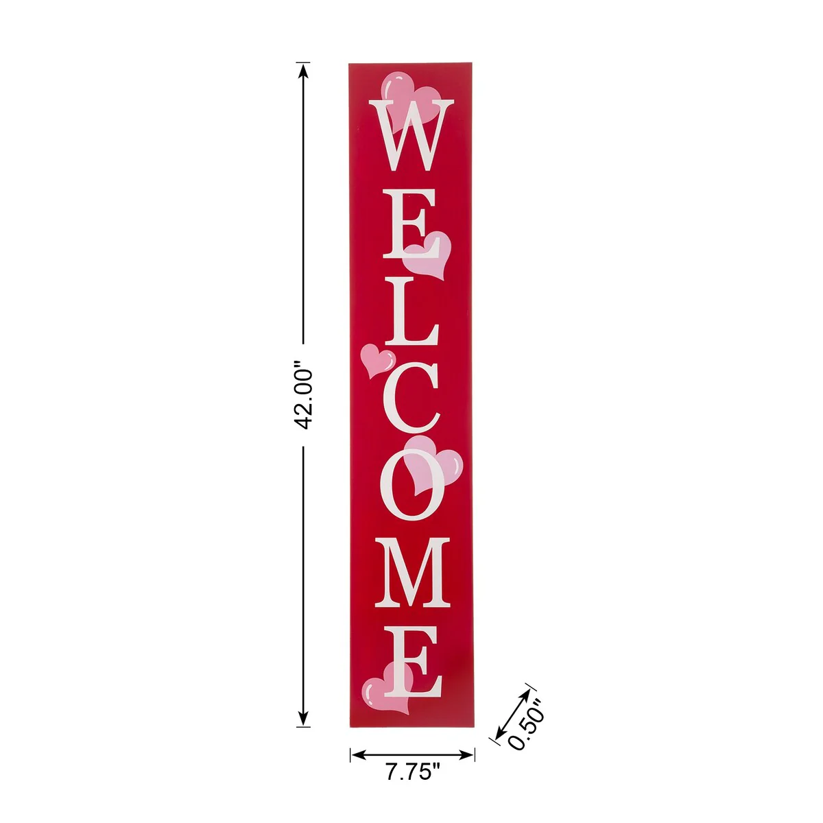 Bring a merry touch to your holiday décor using the vertical porch leaner. 'WELCOME' and 'LOVE' are written down on the red panel front that is accented with pink hearts. It's able to be displayed upright by an easel stand or from a wall, it's a charming addition to your seasonal decorations.
