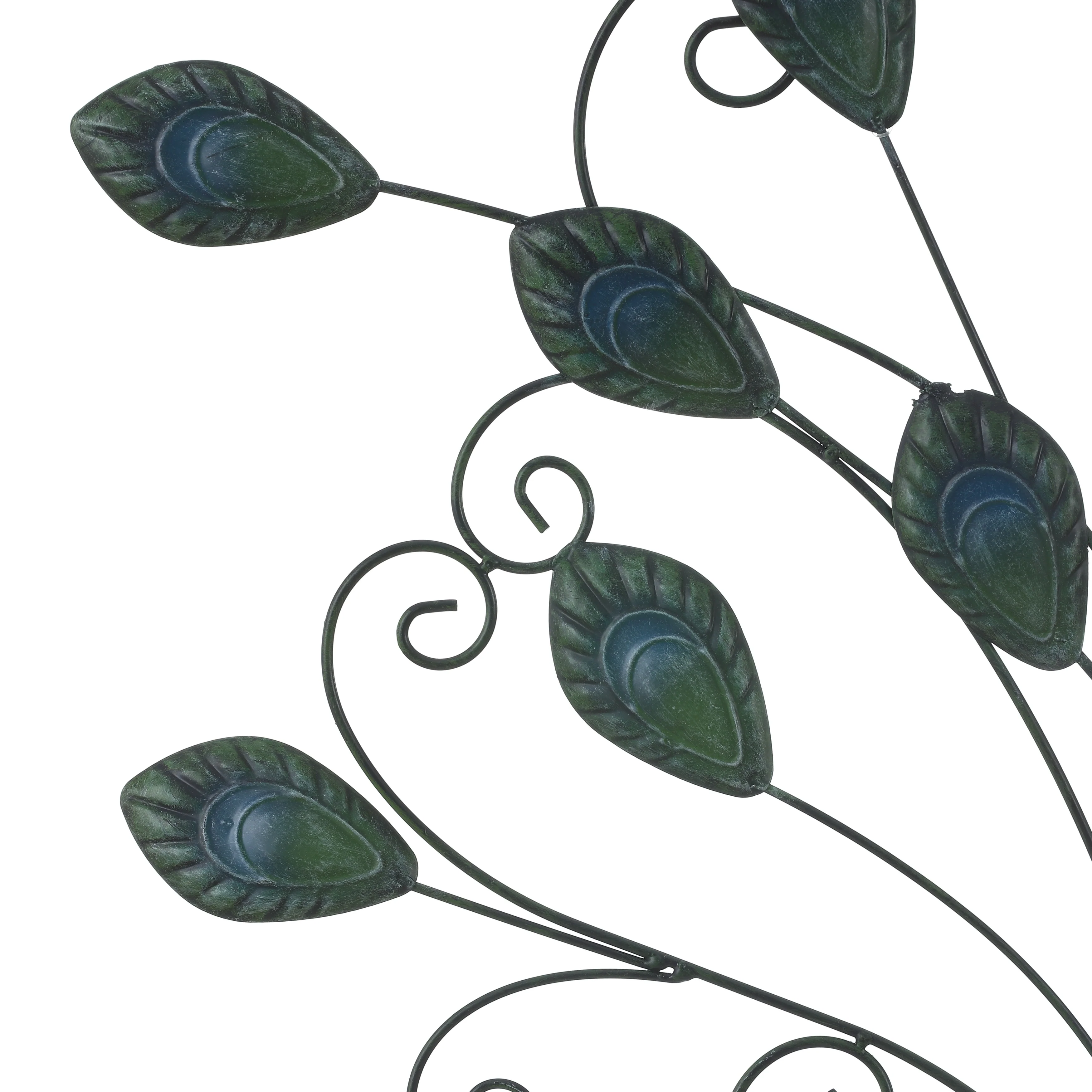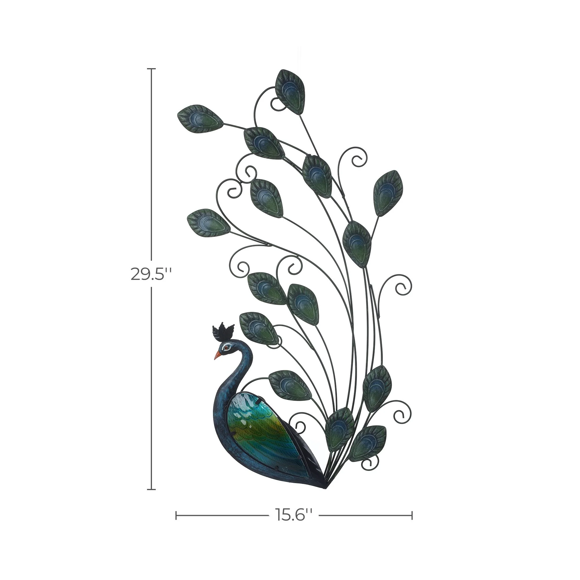 This stunning blue peacock is creatively handcrafted from metal and glass and is a beautiful way to bring color and style to your outdoor porch, patio, or fence. Bring this peacock wall art inside to give your interior space a fresh look and pop of color. The peacock has lovely blue and green, transitioning colors that make a brilliant and eye-catching piece of wall art. Further enhancing the beauty, the peacock's body has the same multi-color glass insert. Bring life to any space with the lively colors portrayed in this beautiful wall decoration. It is easy to hang with the eye hook attached to the back of the wall art. The peacock wall sculpture makes a unique gift for any special occasion!