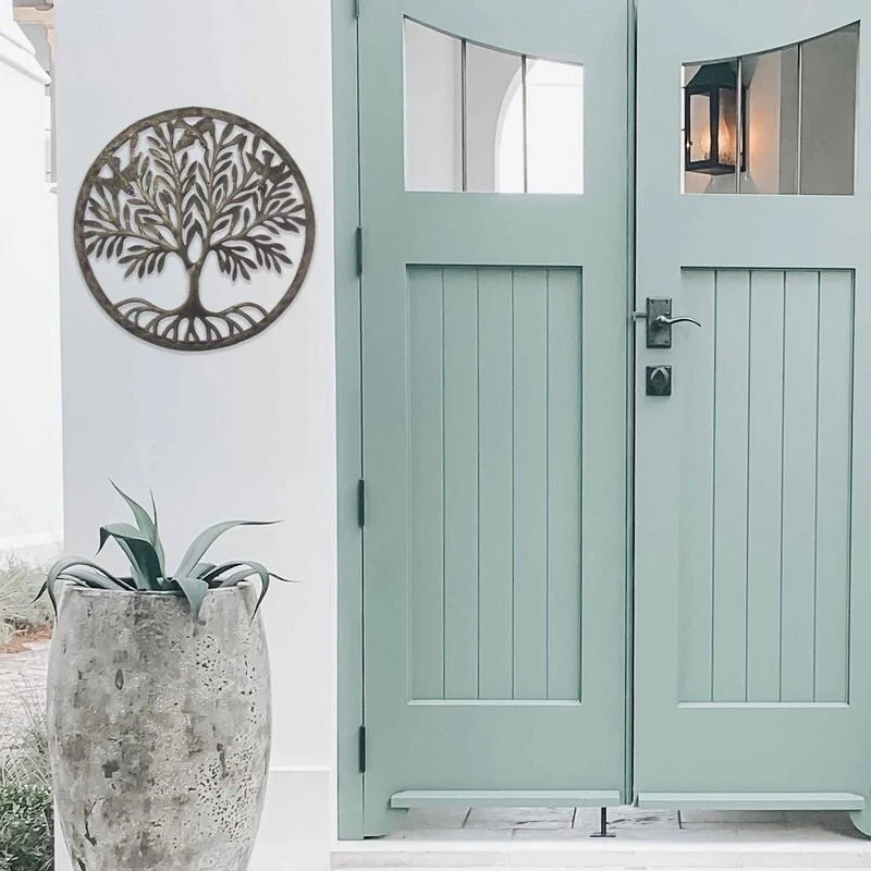 This piece features a tree of life framed in a ring in this traditional Haitian design. Hand cut and embossed, this piece is 23 inches in diameter.