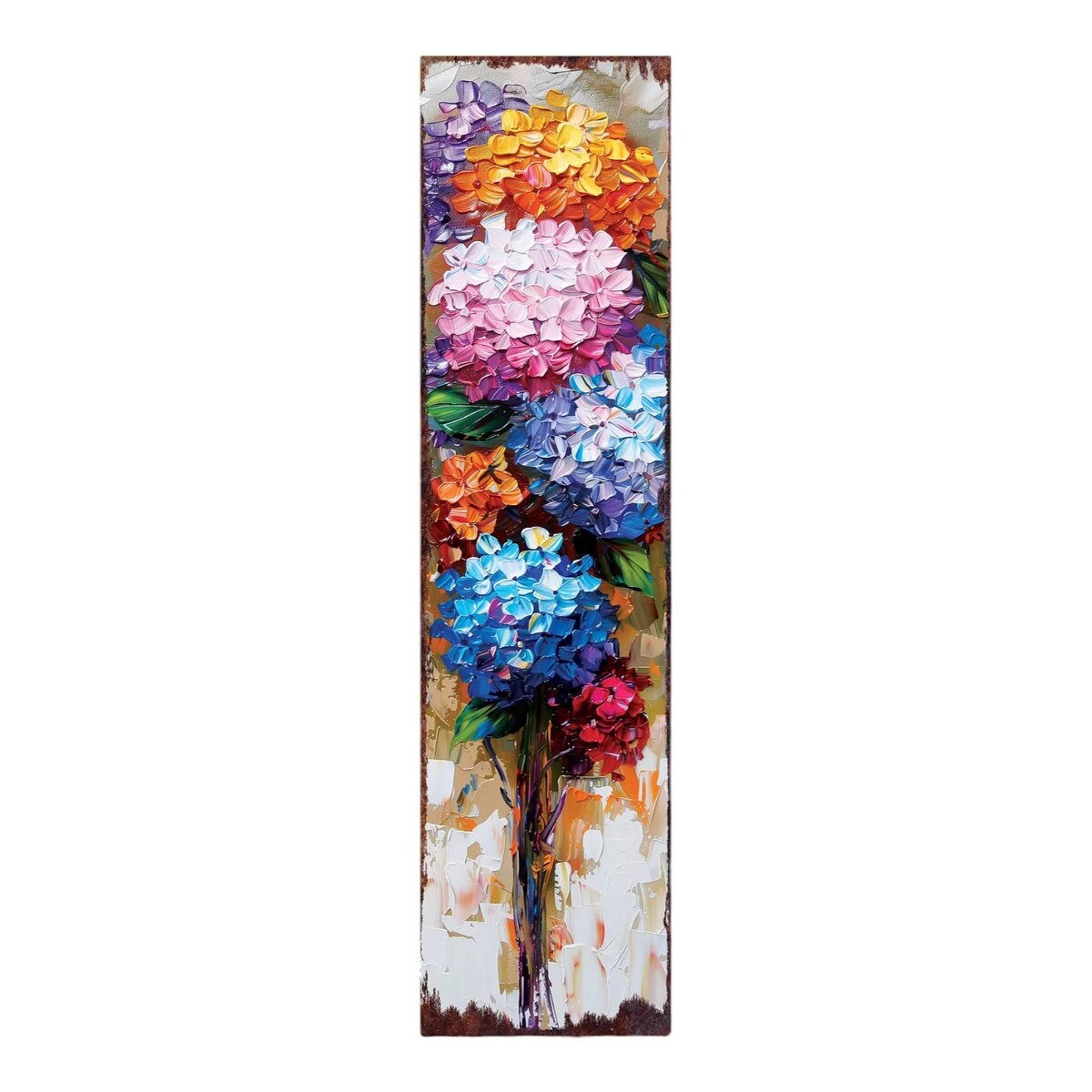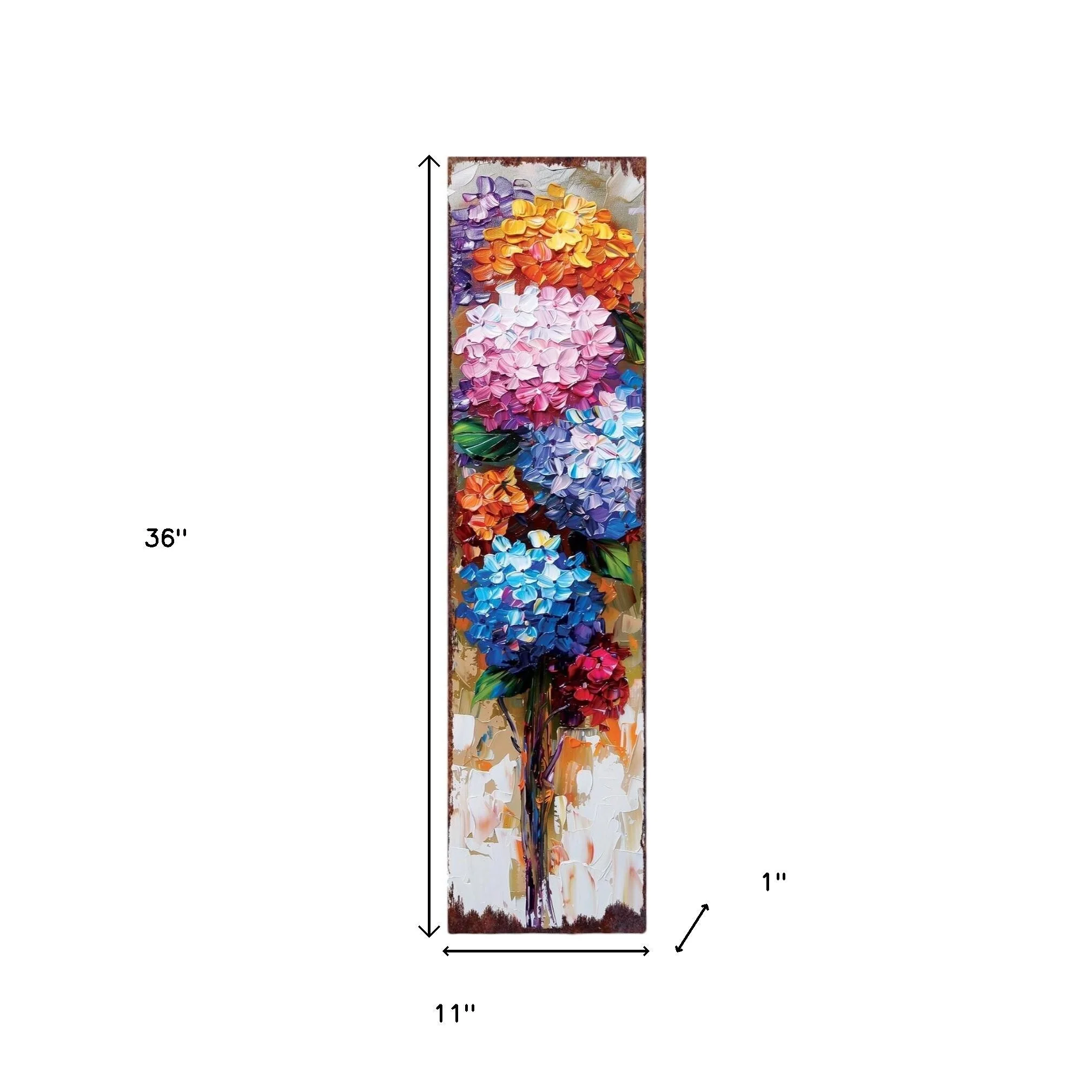 The 36-inch blue pink and white solid wood hydrangeas porch sign is a charming addition to any outdoor space. Crafted from durable solid wood, this porch sign ensures longevity even in changing weather conditions. Its oil paint style brings a timeless elegance that enhances your decor. The beautiful blend of colors creates a cheerful and inviting atmosphere, making it perfect for welcoming guests. This eye-catching accessory not only serves as a decorative piece but also adds a personal touch to your living area. 36-inch h x 11-inch w x 1-inch d.
