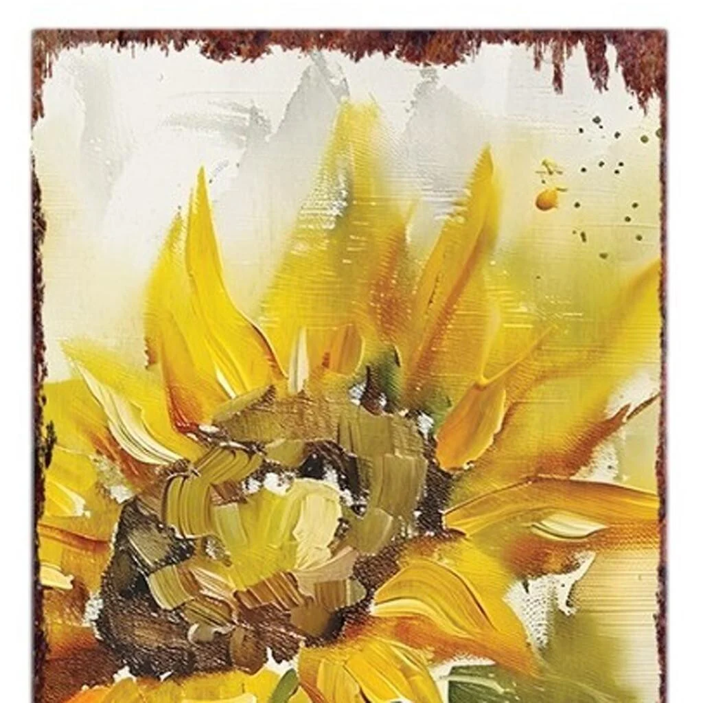 Featuring a pretty, purposefully distressed oil paint style sunflowers design that adds a refreshing pop of color and style.