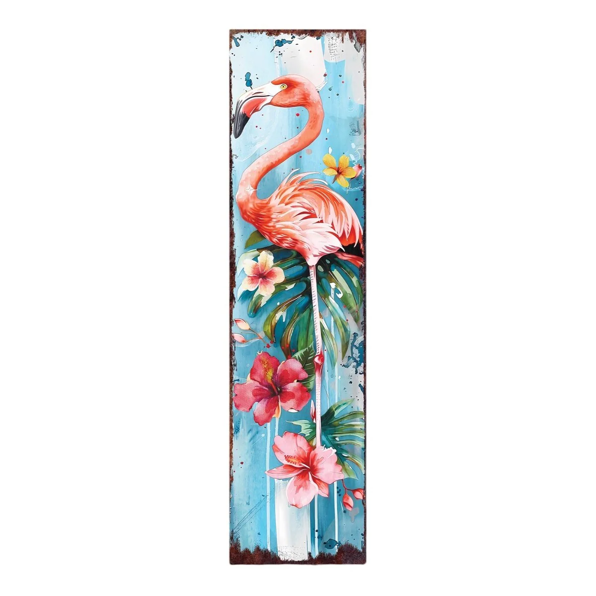 The 36-inch pink and blue tropical floral solid wood flamingo porch sign is a charming addition to any outdoor space. Crafted from solid wood, this porch sign showcases a delightful flamingo design that captures the essence of tropical vibes. With its vibrant pink and blue colors, it adds a playful touch to your garden or porch area. The traditional style complements a variety of outdoor aesthetics, making it a versatile choice for enhancing your decor. Perfect for welcoming guests, this whimsical accessory brings a sense of joy and personality to your entrance. Elevate your outdoor ambiance with this eye-catching piece that embodies both fun and sophistication while celebrating nature's beauty. 36-inch h x 11-inch w x 1-inch d.
