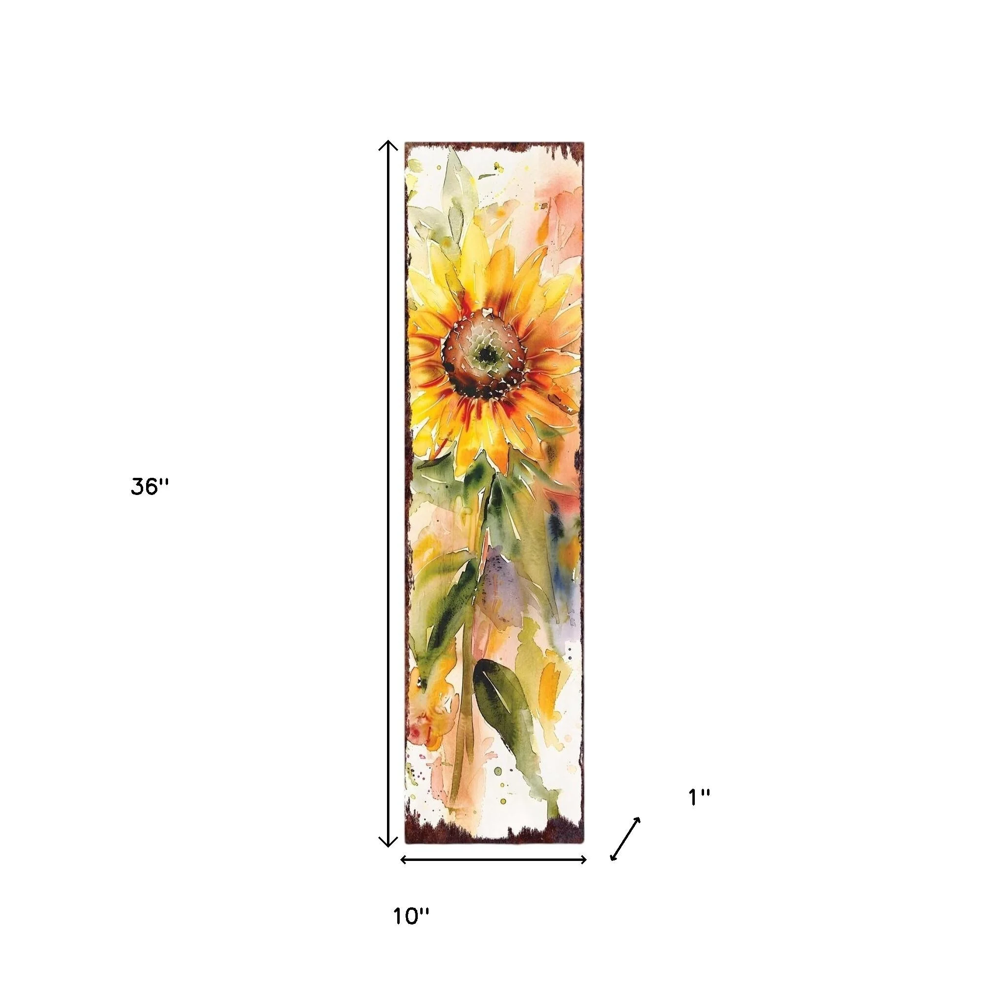The 36-inch yellow brown and green sunflowers solid wood porch sign adds a vibrant touch to your outdoor space. Crafted from durable solid wood, this charming decoration showcases a traditional style that complements various garden themes. The warm hues of yellow, brown, and green create a welcoming atmosphere for family and friends alike. Perfect for enhancing your porch or garden area, this sign not only serves as a striking visual piece but also makes a delightful statement about your love for welcoming decor. Its sturdy construction ensures that it withstands the elements while maintaining its beauty. Elevate your outdoor aesthetics with this lovely addition that promises to brighten your home’s entrance. 36-inch h x 10-inch w x 1-inch d.