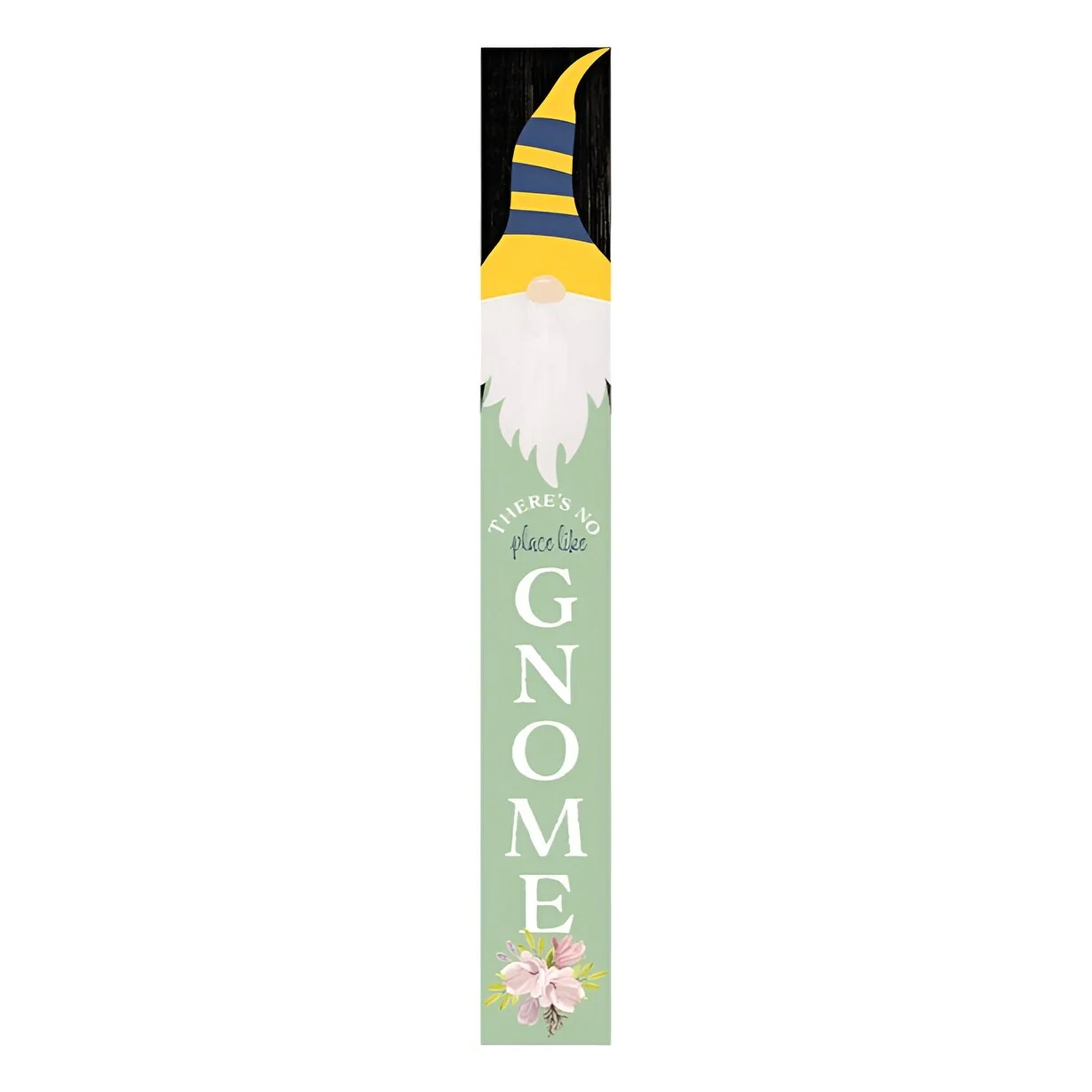 The 72-inch light green solid wood no place like gnome porch sign adds a charming touch to your outdoor space. Crafted from durable solid wood, this sign is designed to withstand the elements while showcasing its unique traditional style. The light green color provides a refreshing pop that complements various garden themes. Perfect for welcoming guests, it serves as both a decorative piece and a delightful conversation starter. Elevate your porch decor with this enchanting accessory that celebrates the whimsical spirit of gnomes and garden life. With its impressive height, it ensures visibility and charm, making it an ideal addition to any outdoor area. Create a warm and inviting atmosphere with this adorable porch sign. 72-inch h x 9.25-inch w x 2-inch d.