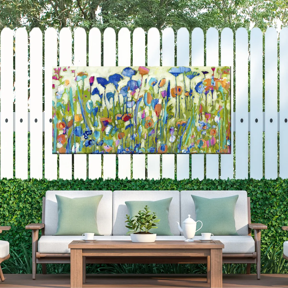 ALL Weather All Season Outdoor Canvas Art. UV Protected, Waterproof Art. The perfect accessory for your outdoor living area, porch, patio or balcony Place in any outdoor location with direct exposure to the elements. These sharp, vibrant photographs and artwork have been digitally reproduced, printed on artist canvas and then coated with UV and Waterproof lacquer that prevents fading for years to come. Stretched and gallery wrapped on 1- ½' all weather stretcher bars.