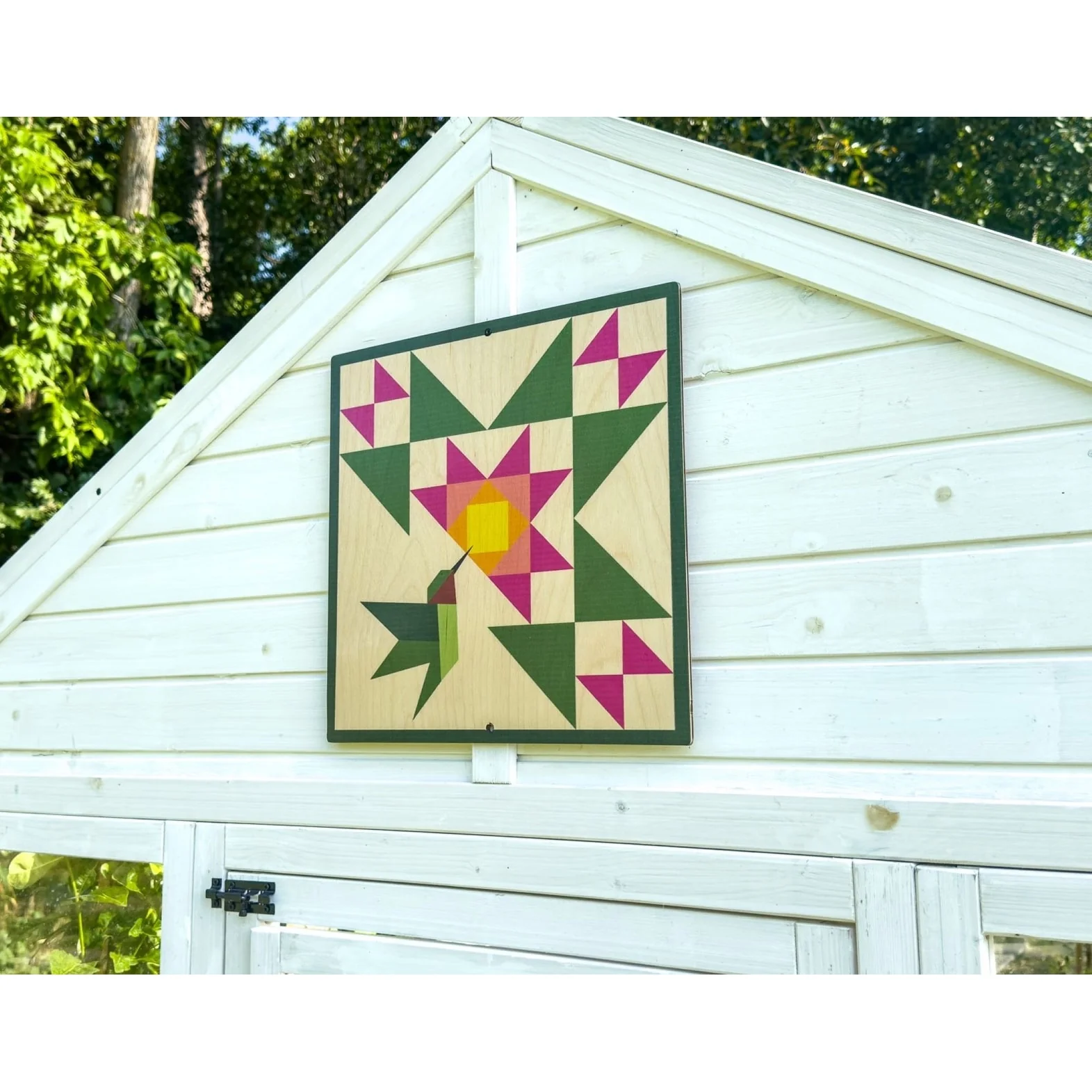 Zylina Greenhouse & Garden Art Quilts are made to add style and fun your Greenhouse, Garden or Chicken Coop. With 9 different designs, you are sure to find a quilt that looks great in your garden or backyard! Garden Art designs measure 14 inches by 14 inches and fit perfectly on the Zylina Hobby Greenhouses (DDP-1866 & DDP-1866L). The quilts come with pre-drilled holes and can attach to your structures with screws, tacks or zip ties (for coop chicken wire or hardware cloth).The quilts look great on Zylina Greenhouses and Chicken Coops.