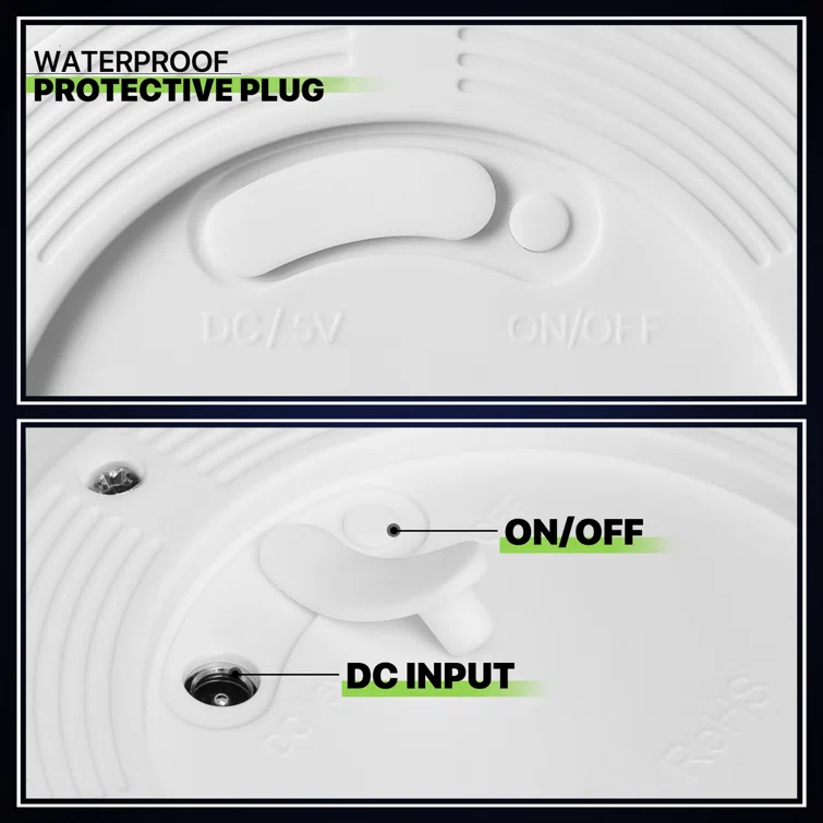 - Power Supply - One-button start switch and DC jack with waterproof and dust-proof rubber plug. The bottom of DC charging jack is made of injection molding material, which is durable and fall proof, safe and secure use.