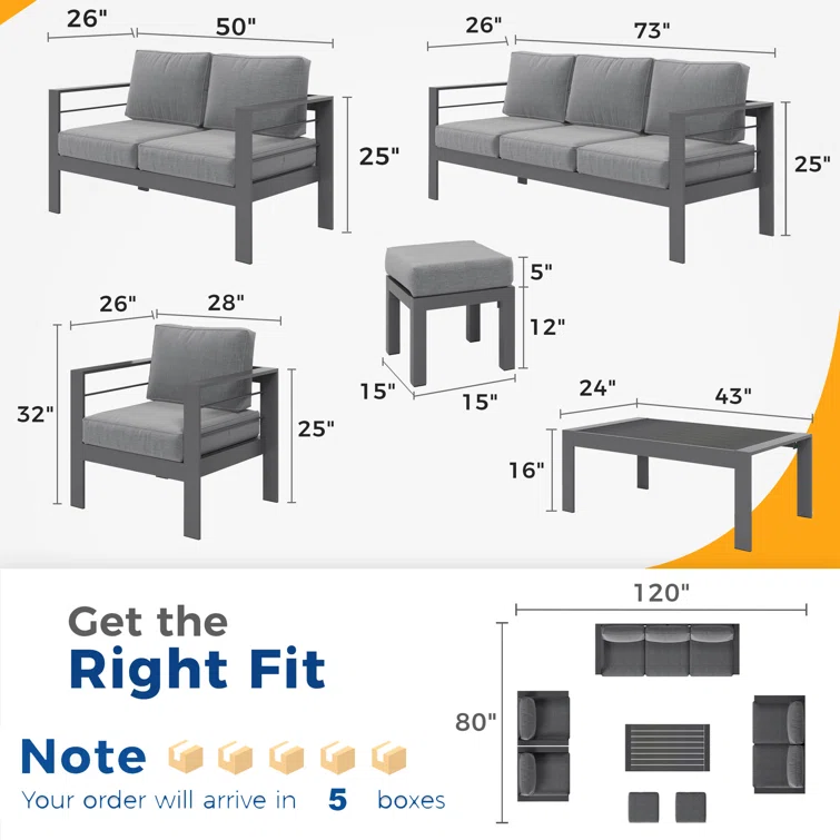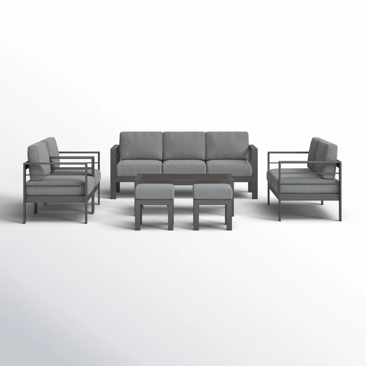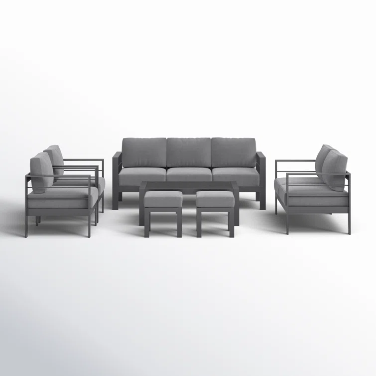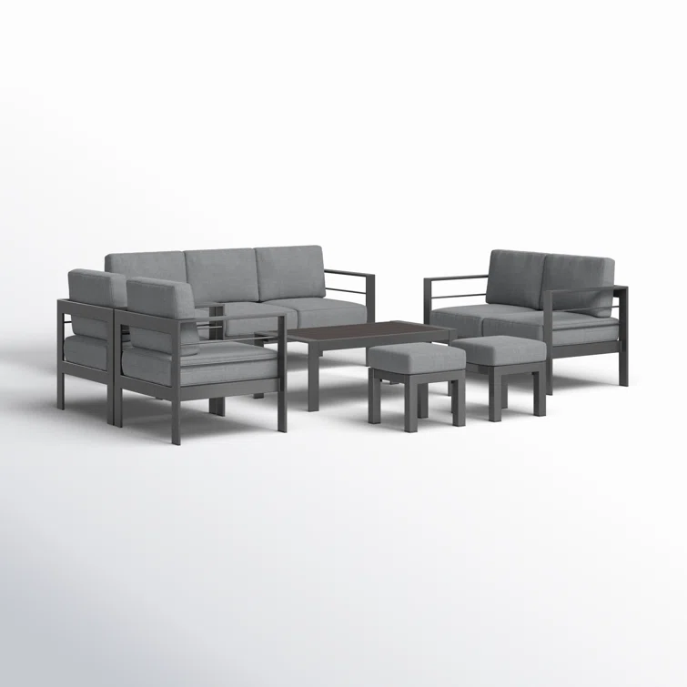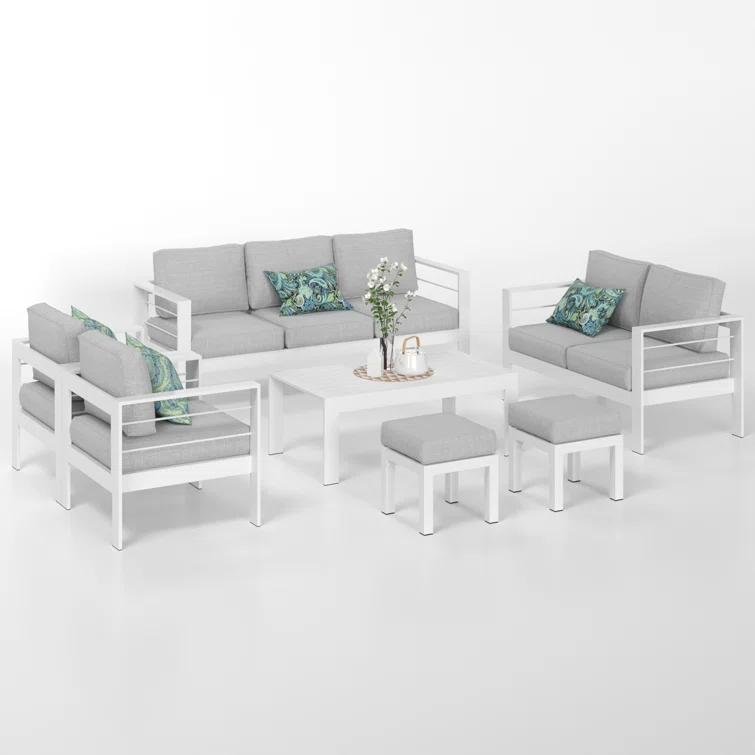 Host a backyard bash for friends and family with this 7-piece outdoor seating group. This set includes a sofa, loveseat, two club chairs, two ottomans, and a table, seating up to nine people comfortably. Made with powder-coated aluminum frames and water-, mildew-, and fade-resistant polypropylene cushions, it's designed to handle the elements with grace. We love that the removable cushion covers are machine-washable, making cleanup a breeze. So, kick back, relax, and enjoy those long summer evenings in style.