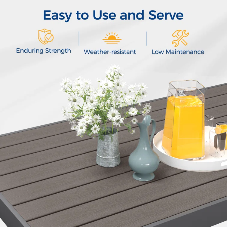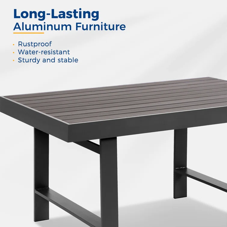 - The coffee table is made of upgraded all-aluminum frame and imitation wood, which not only gives you natural visual enjoyment but also easy to maintance.