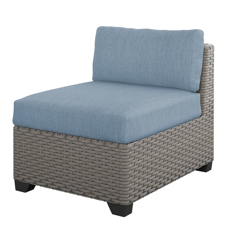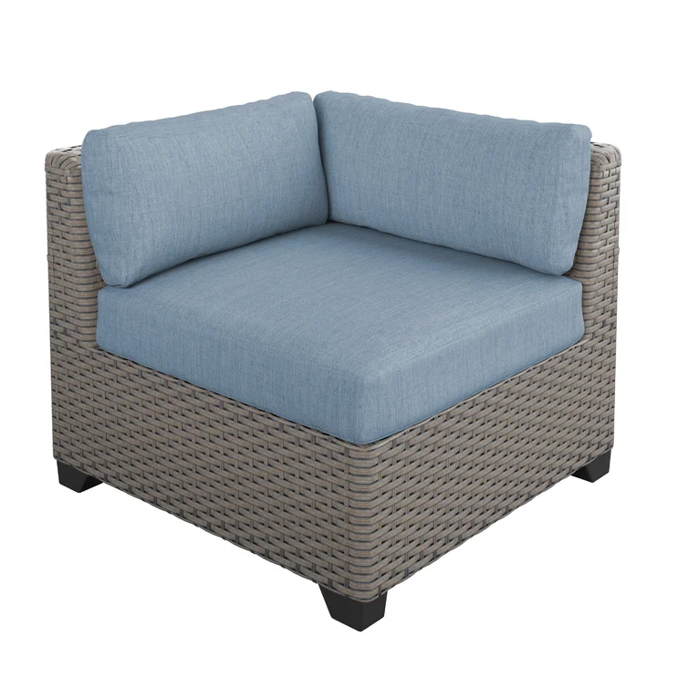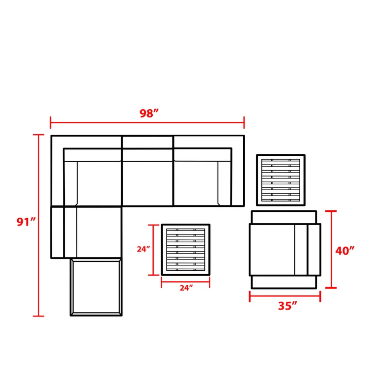 This 6-person seating group creates an instant gathering spot for your backyard, patio, or garden. This set includes one chair, two tables, and a 5-piece sectional All pieces are made of gray powder-coated aluminum and resin rattan and are resistant to weather, water, and fading. The chairs and sectional have square backs and flared arms; their removable seat and back cushions feature polyester filling and polyester covers. The 24” square tables are topped with powder-coated aluminum in a slatted design. This set can be used together or separately in any configuration you need; it completes the look in any contemporary outdoor space.