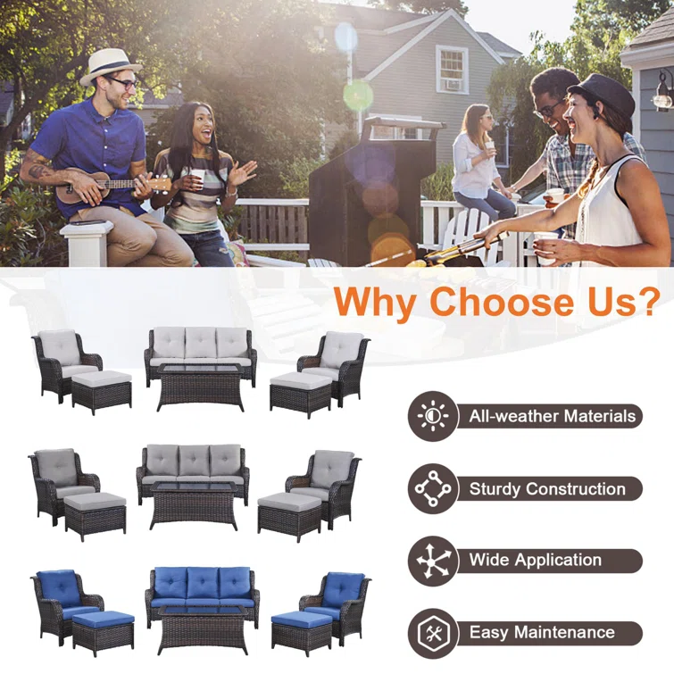 - 1- FREE COMBINATION: Modular pieces in same collection allows flexibility for different configuration. We offers mixture-gray and mixture brown wicker color option, with blue, beige or gray Olefin cushion options, easy to create your own special patio furniture set as needed; create a relex space, showing your good taste;