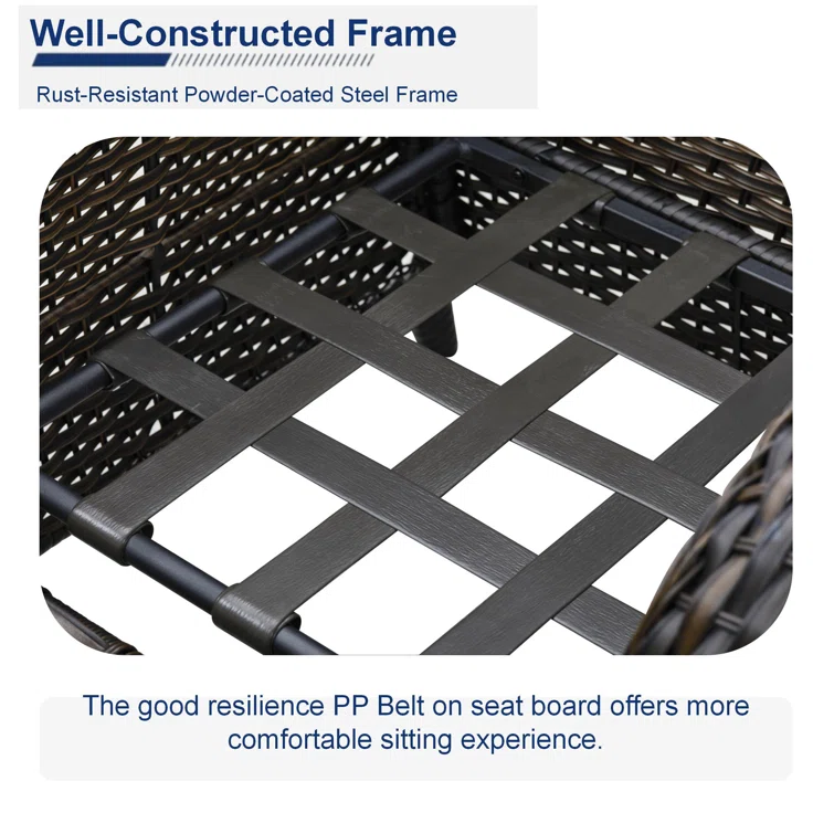- 3- HIGH QUALITY MATERIAL: All-weather PE wicker, anti-rust powder-coated steel frame and high quality Olefin cushion fabric, make this wicker patio furniture set durable and sturdy, good for year round use;