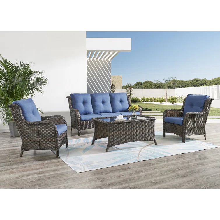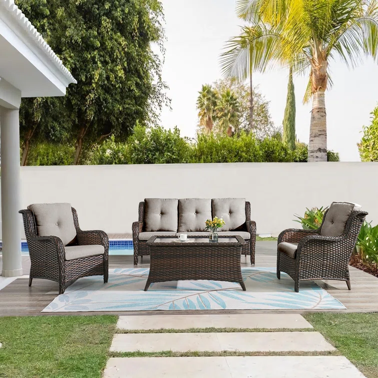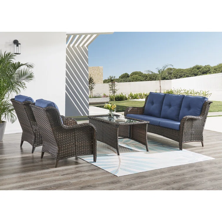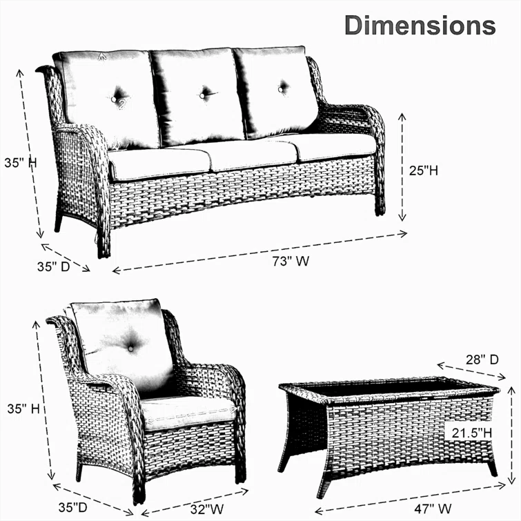 Create a comfort relax indoor and outdoor seating area for your family or friends gatherings with this deep seating high back patio furniture sofa set. Crafted with a durable powder-coated steel frame and wrapped in weather-resistant PE rattan, each sofa and chair is durable enough to provide long time service. Thick padded cushions with detachable covers can bring great convenience to replace and clean. This multifunctional patio furniture set is suitable for your garden, balcony, deck, backyard, porch, and poolside year and year round.