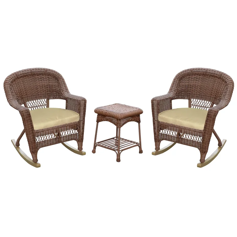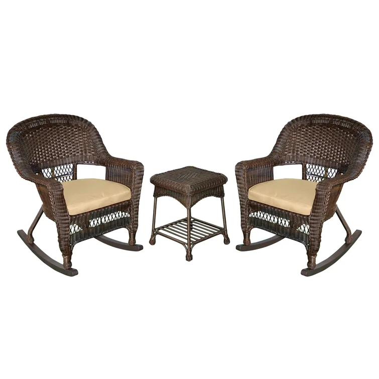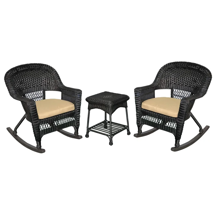 Designed to live in outdoor areas, this three-piece conversation set is perfect for a porch or patio. Constructed with a weather-resistant steel frame, UV light shining down or a rainstorm rolling through is never a problem. Kick back with your better half on the pair of rocking chairs, while the included end table keeps thirst-quenching drinks right at your side. To refresh this set, simply spray it down with your garden hose!