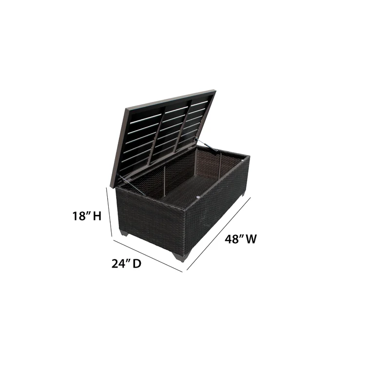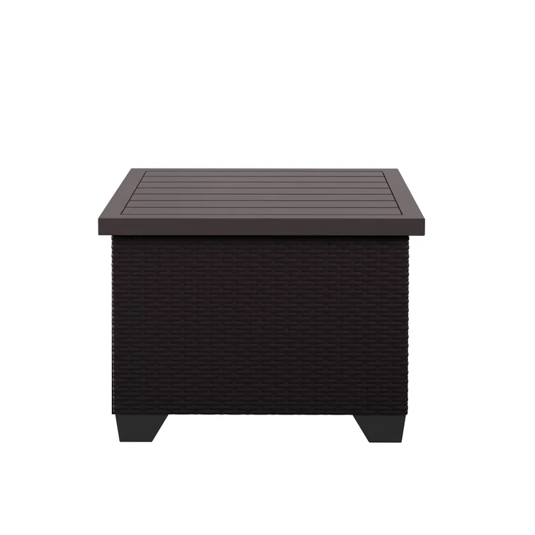 Move good times outdoors with the the Barbados 12 Piece Outdoor Sectional Seating Group with Cushions. With the striking look of a dark wicker weave and pillowy comfort that feels like a spa, this set includes a 3-pc. sectional sofa, one 2-pc. sectional loveseat, two club chairs, two ottomans, two end tables, and one storage coffee table. The end tables and the storage coffee table offer space for snacks and drinks, plus the storage coffee table is a great place to stash throw pillows or other outdoor accessories. The handwoven resin wicker is strong enough to stand up to wet weather and UV fading. This set also features durable, powder coated aluminum frames that are rust-resistant for enjoying your patio furniture in all climates. Thick acrylic back and seat cushions are covered with fade-resistant, water-resistant covers to last beautifully. The standard color Wheat cushion covers come already equipped on the cushions. If you select “Standard” as your cushion color you will receive your set with Wheat cushion covers already on. If you select one of the other colors, you will still receive your set with Wheat cushion covers on, but your color choice will come in a separate package for patio style in the color you love and a total of two sets of cushion covers. Seats up to 7 people.