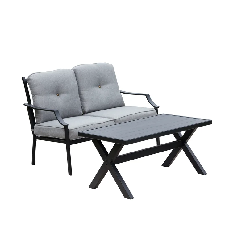 This set is designed to be weather-resistant and low maintenance, so you can enjoy it for many seasons to come. The sturdy steel frame is powder-coated to protect it from rust and the elements. Whether you're hosting a summer barbecue, or simply relaxing outside with a book, this conversation set is sure to provide you with a comfortable and stylish outdoor experience. With ample seating for four, it's perfect for small gatherings or intimate outdoor conversations.