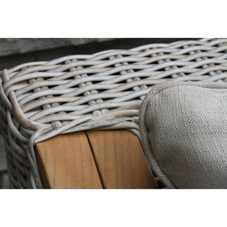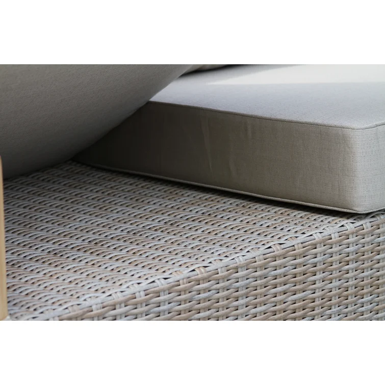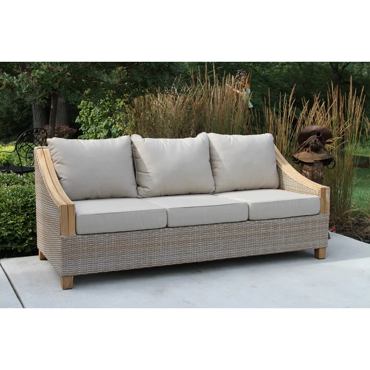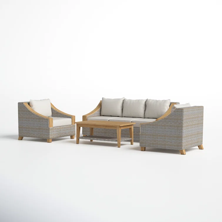 This 4-piece outdoor seating group has the quality materials and coastal farmhouse look we love. Each outdoor furniture piece (it comes with one patio sofa, two chairs with cushions, and a coffee table) has a solid teak wood frame that's weather-resistant and wrapped in wicker. They're all hand-woven around durable powder-coated aluminum frames, so you can count on them lasting for years to come. Plus, Sunbrella fabric and stainless steel hardware only add to this patio set's sturdiness.