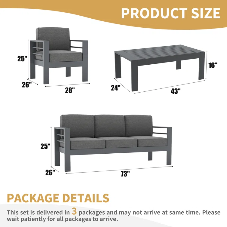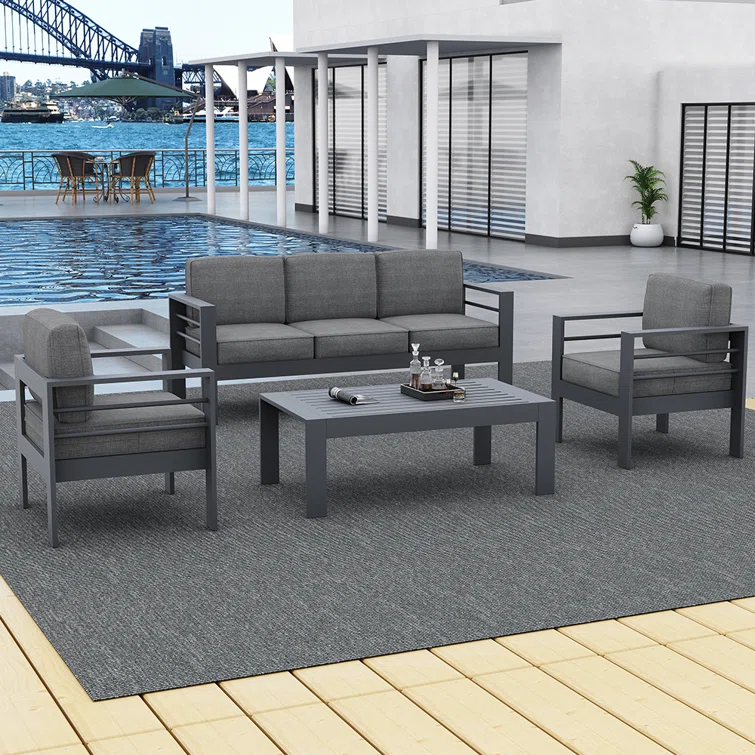 Inspired by the clean-lined silhouettes of contemporary indoor sectionals, our outdoor aluminum furniture set features deep seats for hours of comfortable lounging. Made from high quality solid aluminium tubing, this collection is complemented by thick, padded soft cushions for luxurious comfort. It's a beautiful addition whether in your garden, patio, porch, poolside, or other outdoor space!
