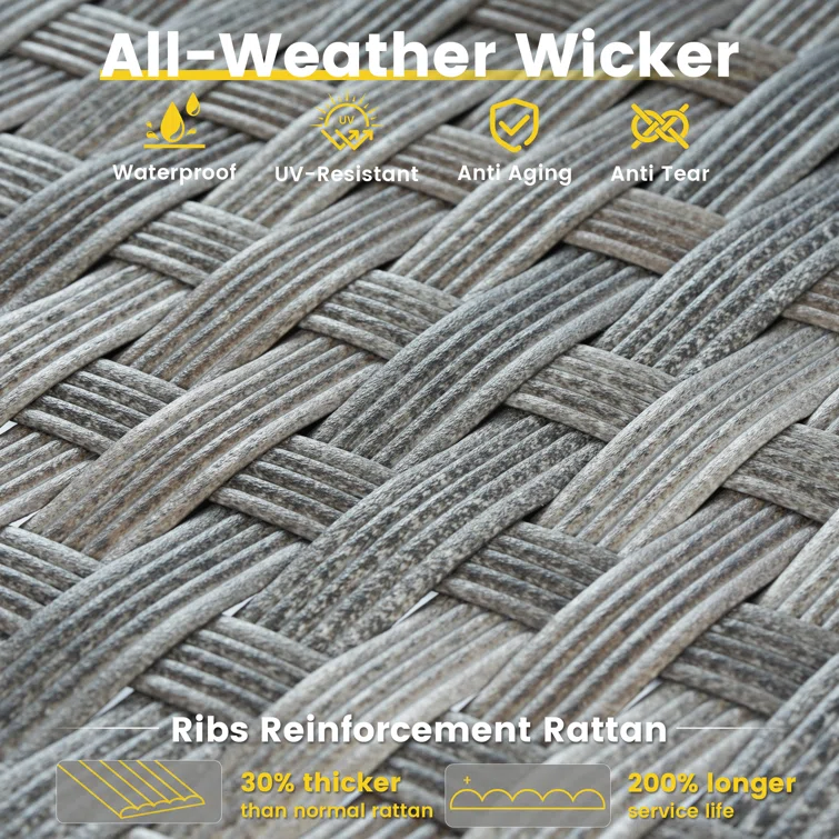 - Sturdy glass tabletop: The wicker sectional set also features a gorgeous tempered glass top that perfectly highlights your patio or poolside décor.