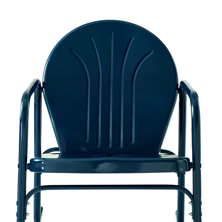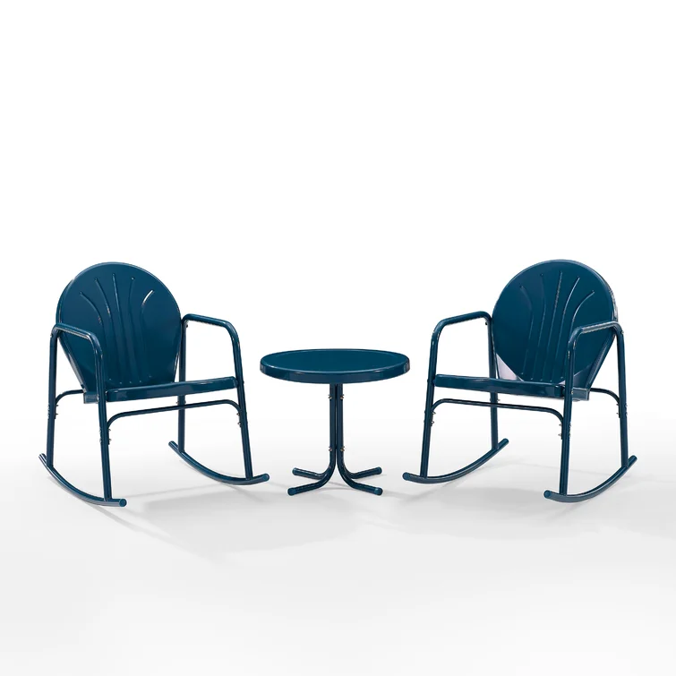 This 3-piece seating group is perfect for relaxing and rocking away under the summer sun. It comes with two rocking chairs and one table, all made with a powder-coated steel frame in a variety of colors to choose from that's resistant to harsh UV rays. The chairs feature a rounded back with decorative grooves, and its seat and curved arms give you support while you sit. Plus, the smooth metal rockers allow you to rock back and forth with a good book or while you hang out with friends. We also love that the bistro table in this set comes with a pedestal base and a rounded surface, so you can set down a cold drink or a tray of happy hour apps.