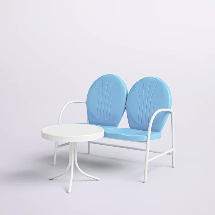 This 2-piece sofa seating group lets you kick back and enjoy the sunshine with your besties. This set comes with a loveseat and a side table. Each piece is made with a water and UV-resistant steel frame in a crisp white finish that goes well with everything! The loveseat have a colorful seat and a rounded back with indented grooves for a retro look. And the cantilever base on the armchair gives you just the right amount of flex while you sit. Plus, we love that the side table in this seating group provides the perfect spot to set down a glass of wine (or two) and a bowl of your favorite snacks.