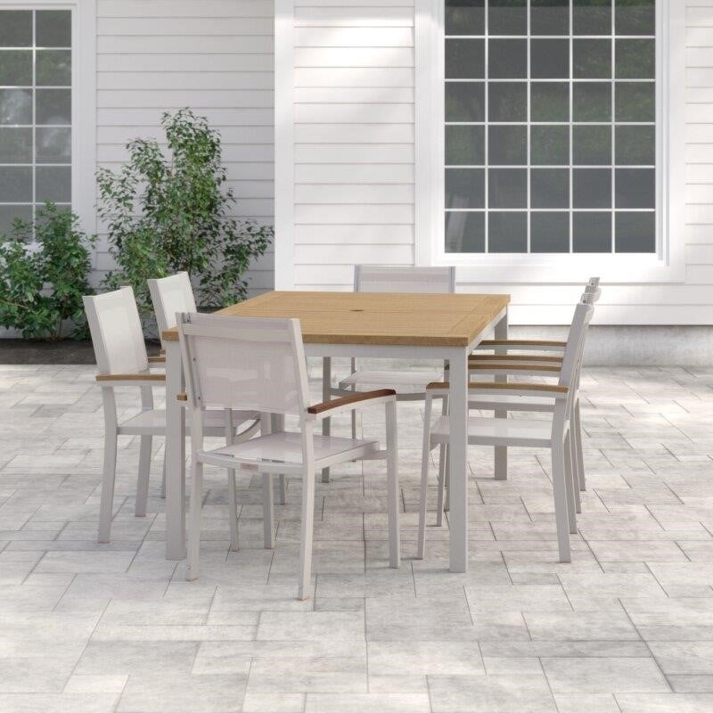 - Pieces Included: 1 table, 6 sling seat armchairs