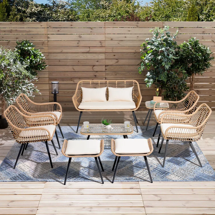 Haoyang 7 Piece Rattan Sectional Seating Group with Cushions