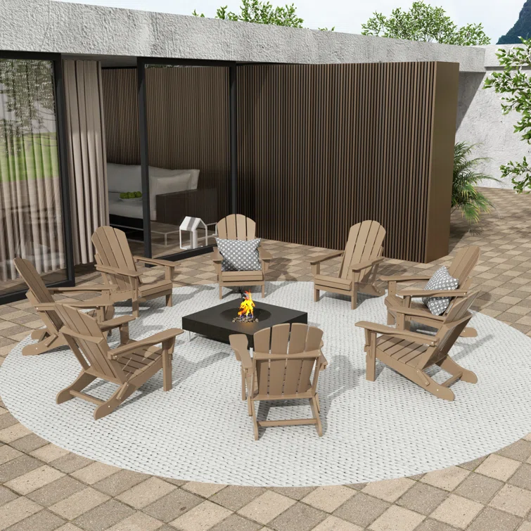 Hartington 16 Piece Plastic/Resin Adirondack Chair with Ottoman and Table