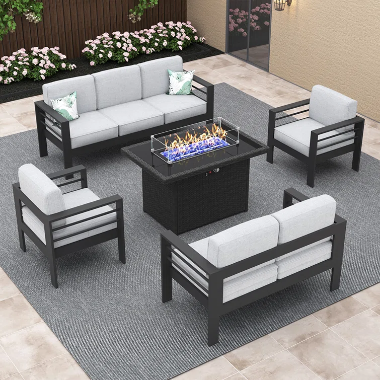 6-Piece Aluminum Patio Conversation Set With Cushions
