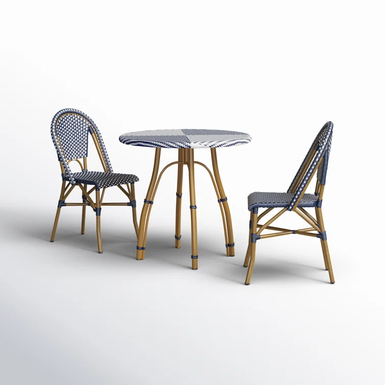 Bring Paris bistro style to your sunroom or patio with this set of 2 side chairs and table. We love using this set on its own as accent furniture or in multiples around a table.
